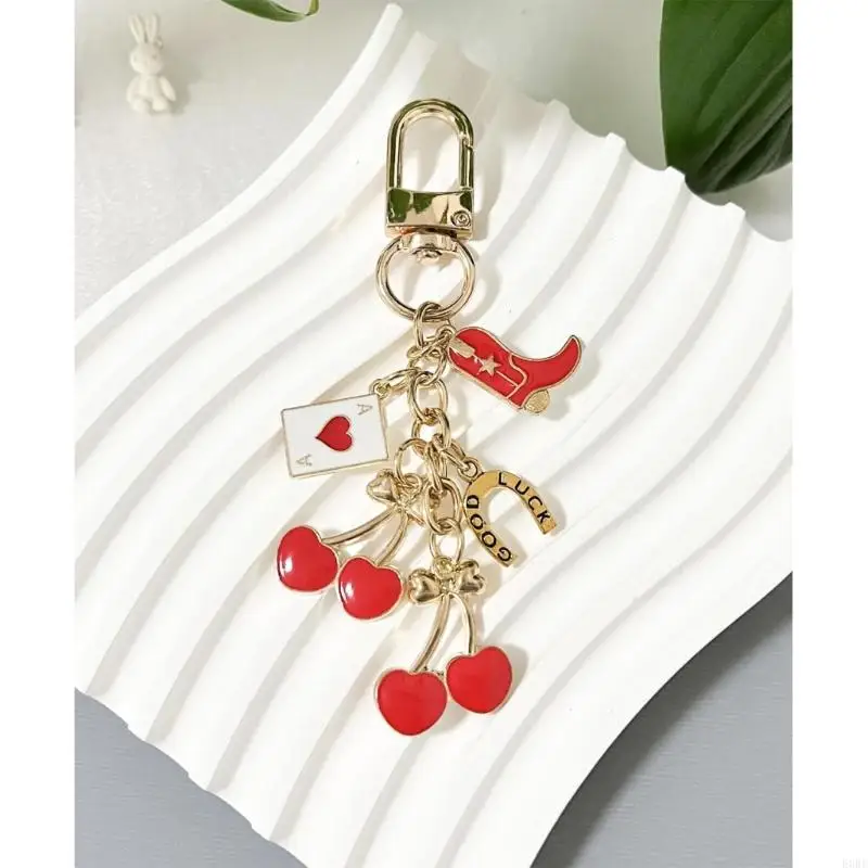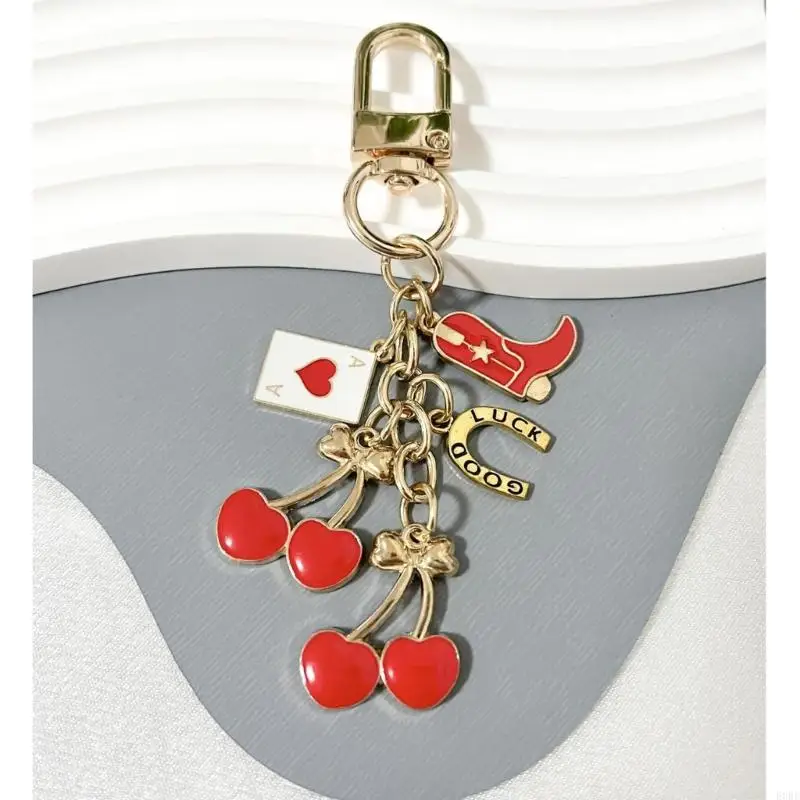 Elevate your with the Cherry Bag Charm Keychain, featuring a bowknot and cherry design that adds a touch of elegance and uniqueness to any accessory collection.