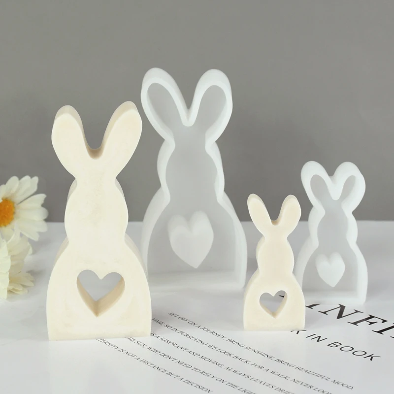 Easter Ornament Hollow Bunny Candle Mold Cute Rabbit Shape Plaster Decoration Molds Easter Rabbit Candle Holder Plaster Mold