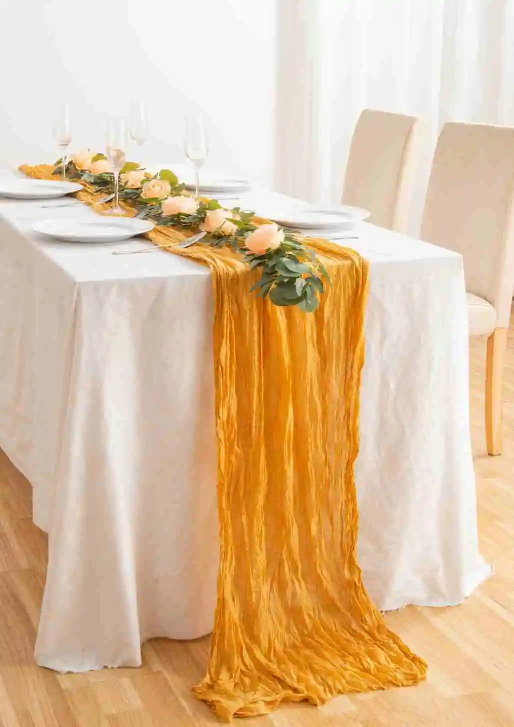 STYLE - This wide-loom hand-dyed gauze table runner offers a rustic, elegant look. It is unique and elegant for your wedding table, shower, party, festival, Easter basket or any occasion.