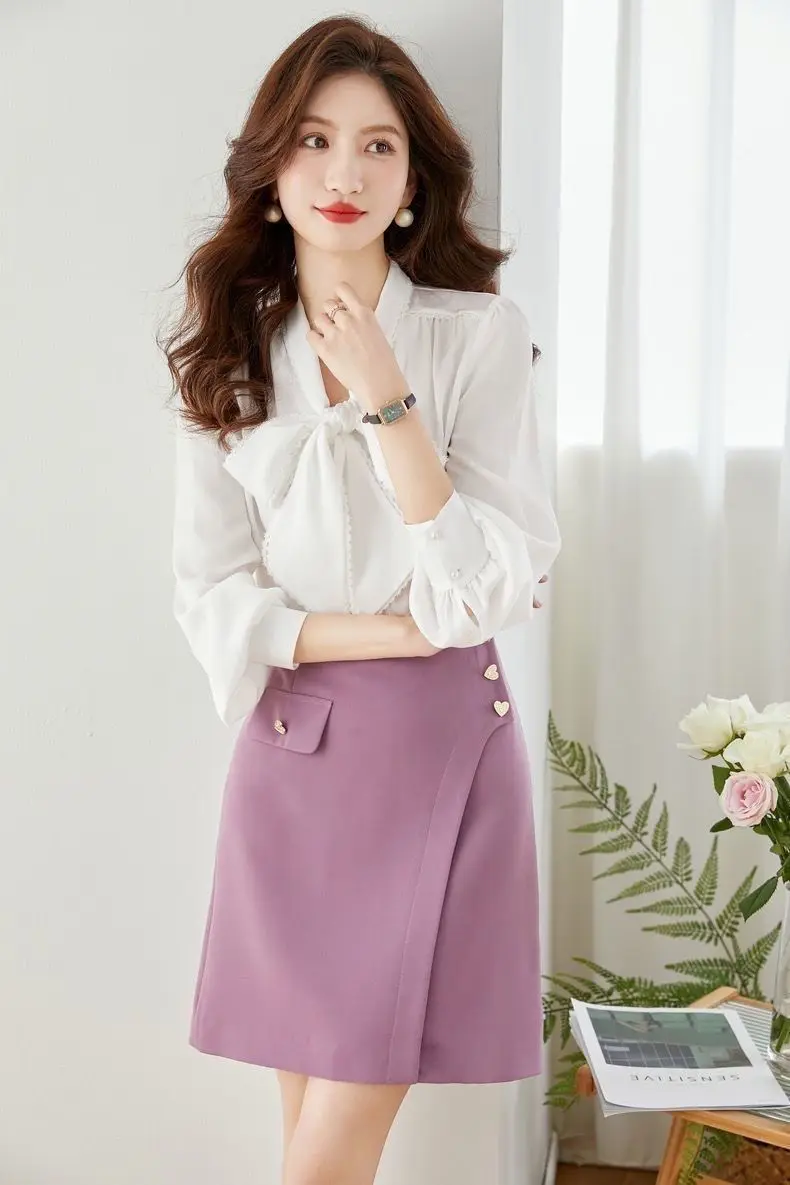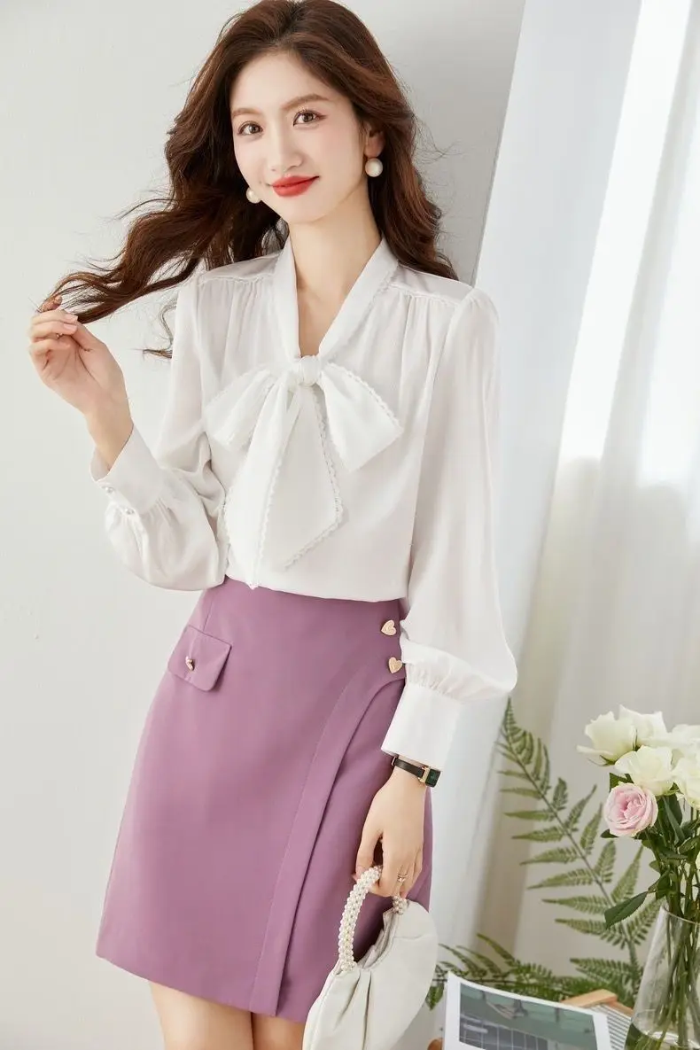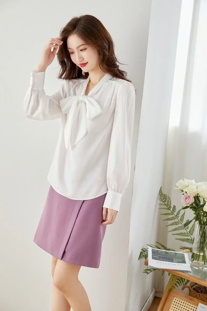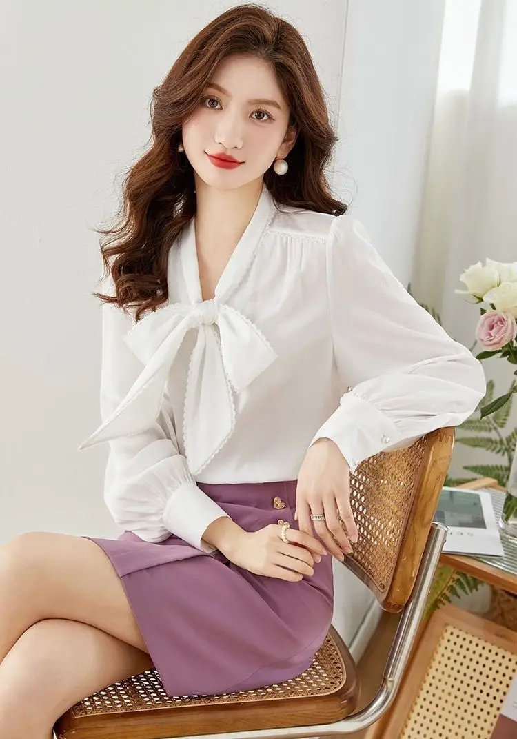 Elegant Bow Chiffon Blouses Office Women Fashion Autumn Winter Blusas Korean Clothing White Black Ladies Puff Sleeve Tops Shirts