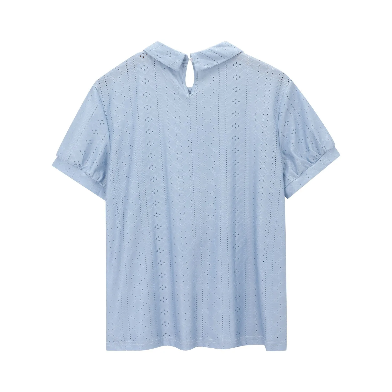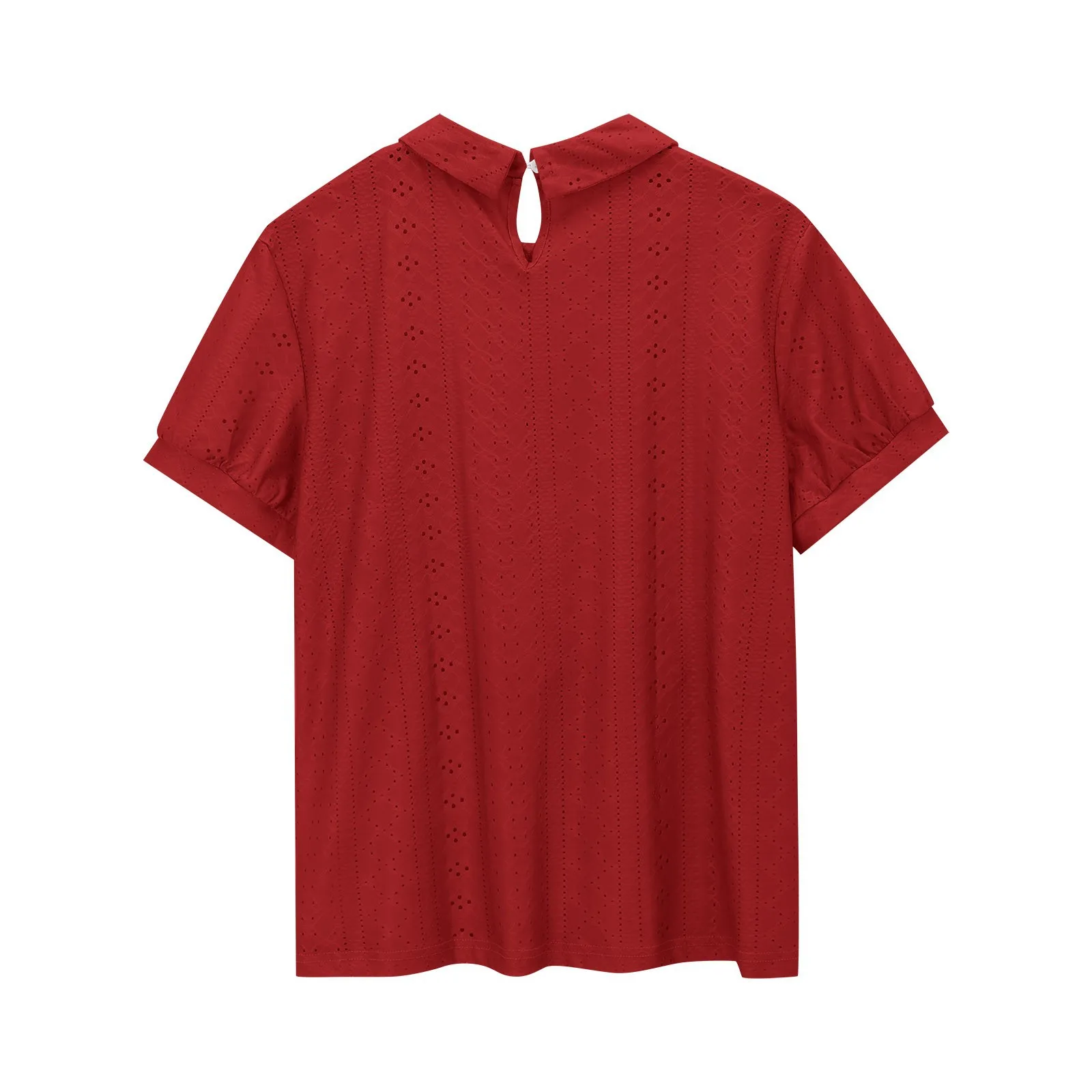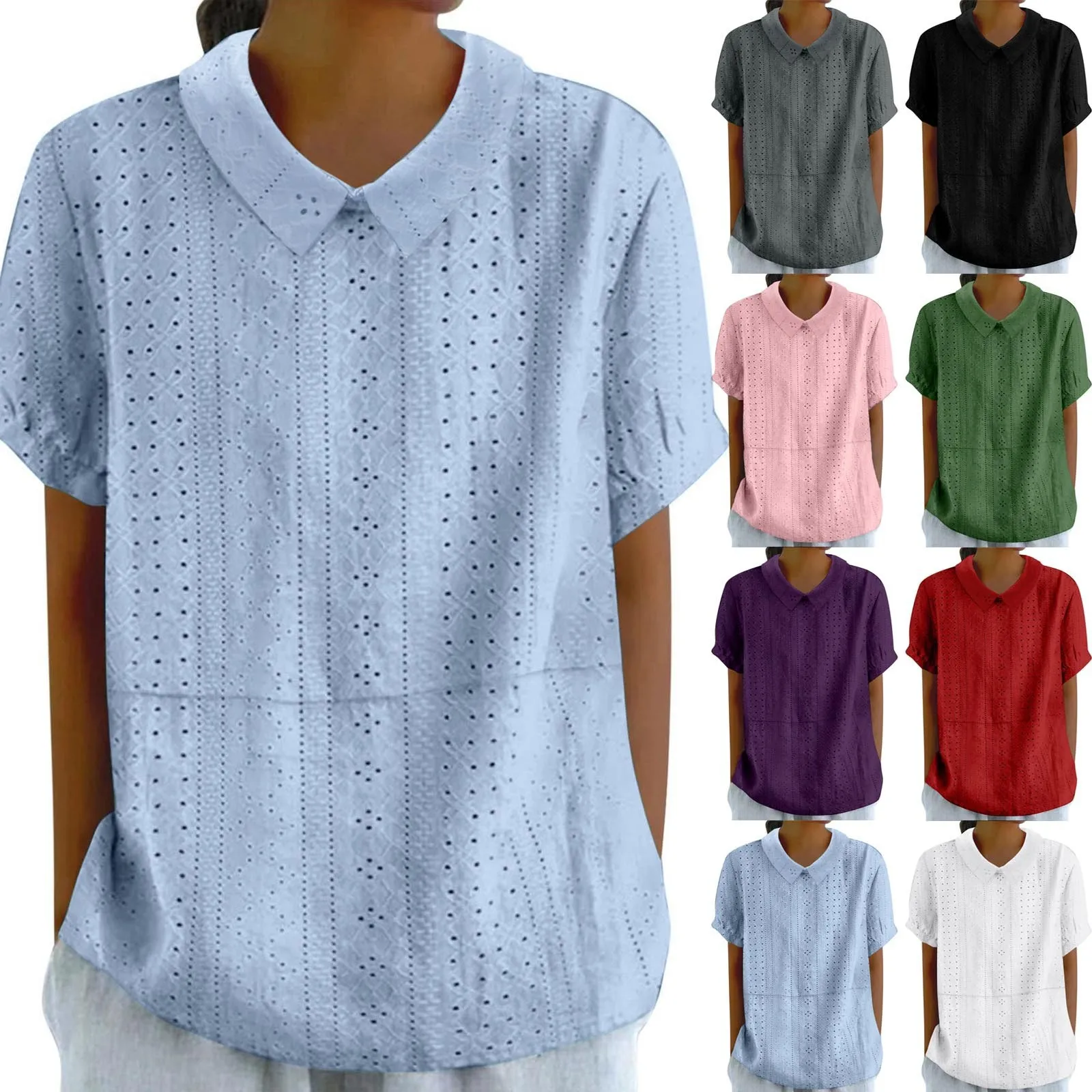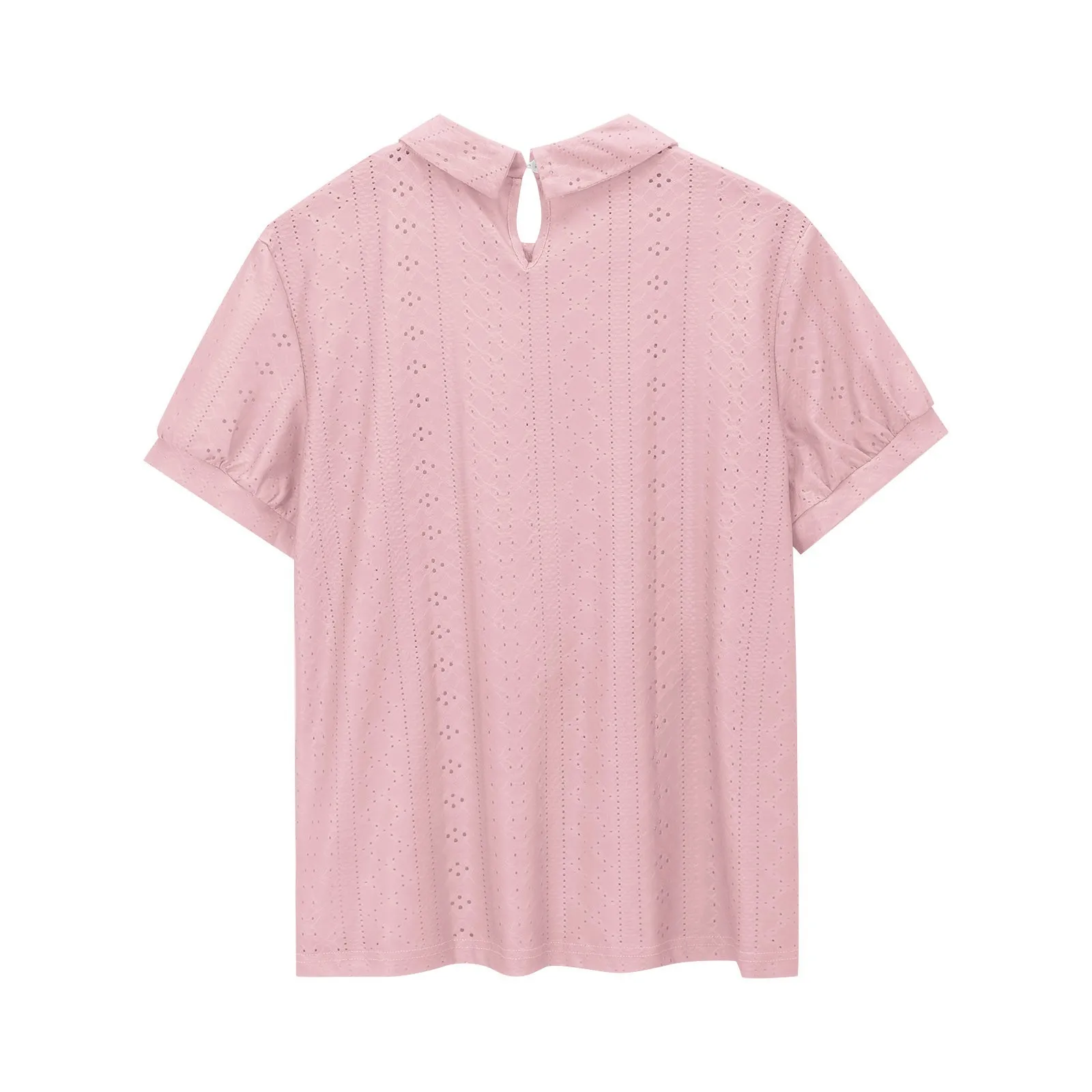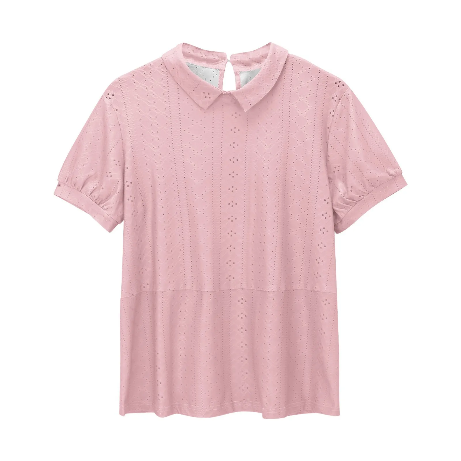 Elegant Hollow Turn-Down Collar Blouse Shirt Top Button Short Sleeve Women Blouse Casual Summer Fashion Female Tops