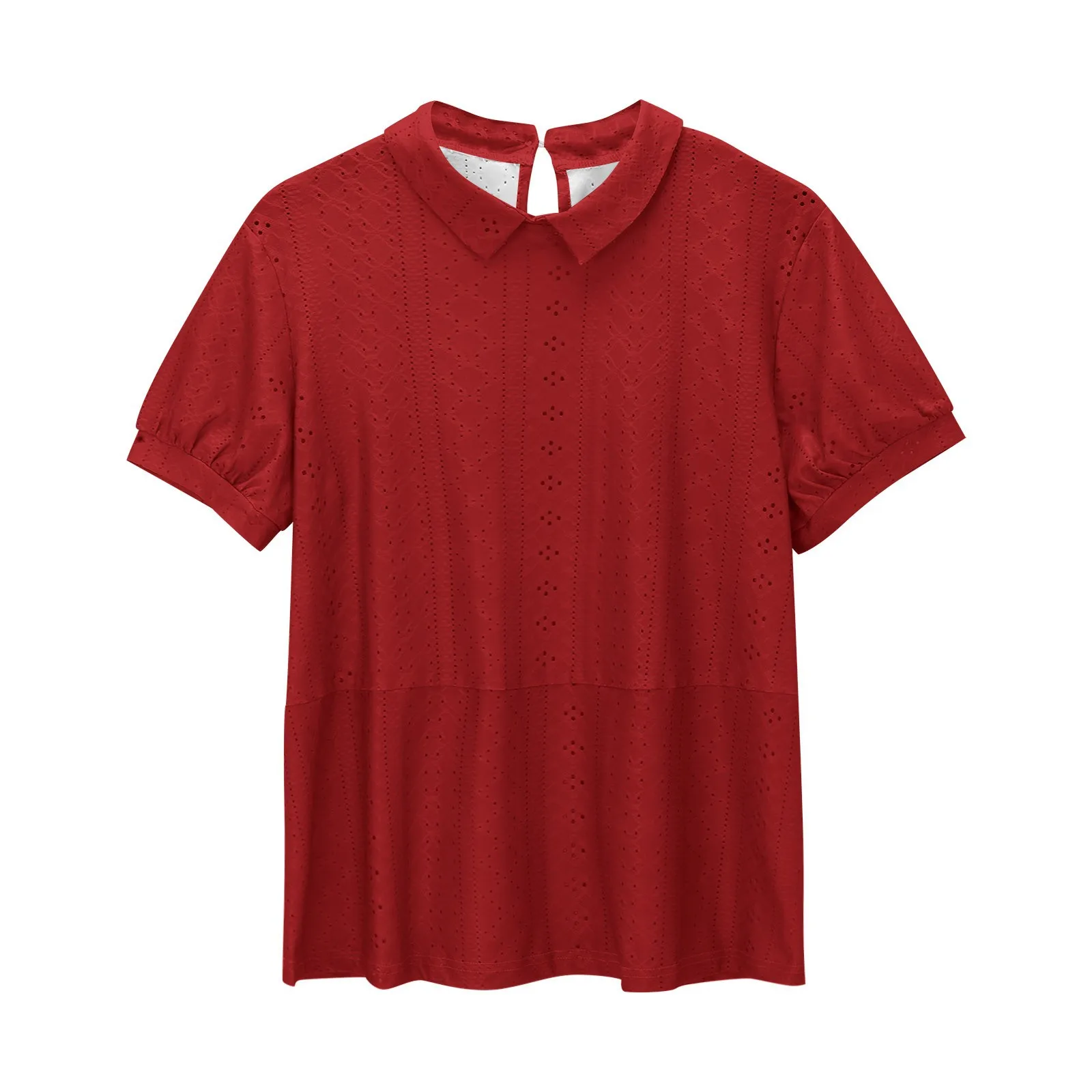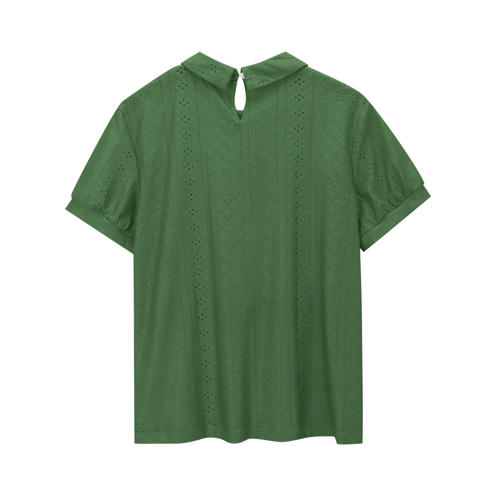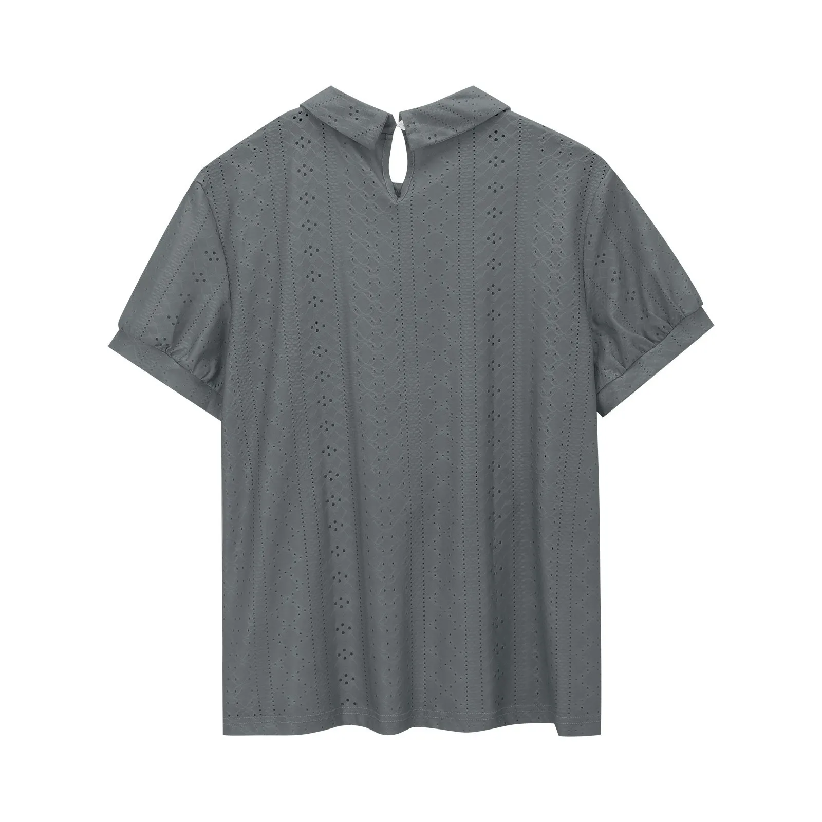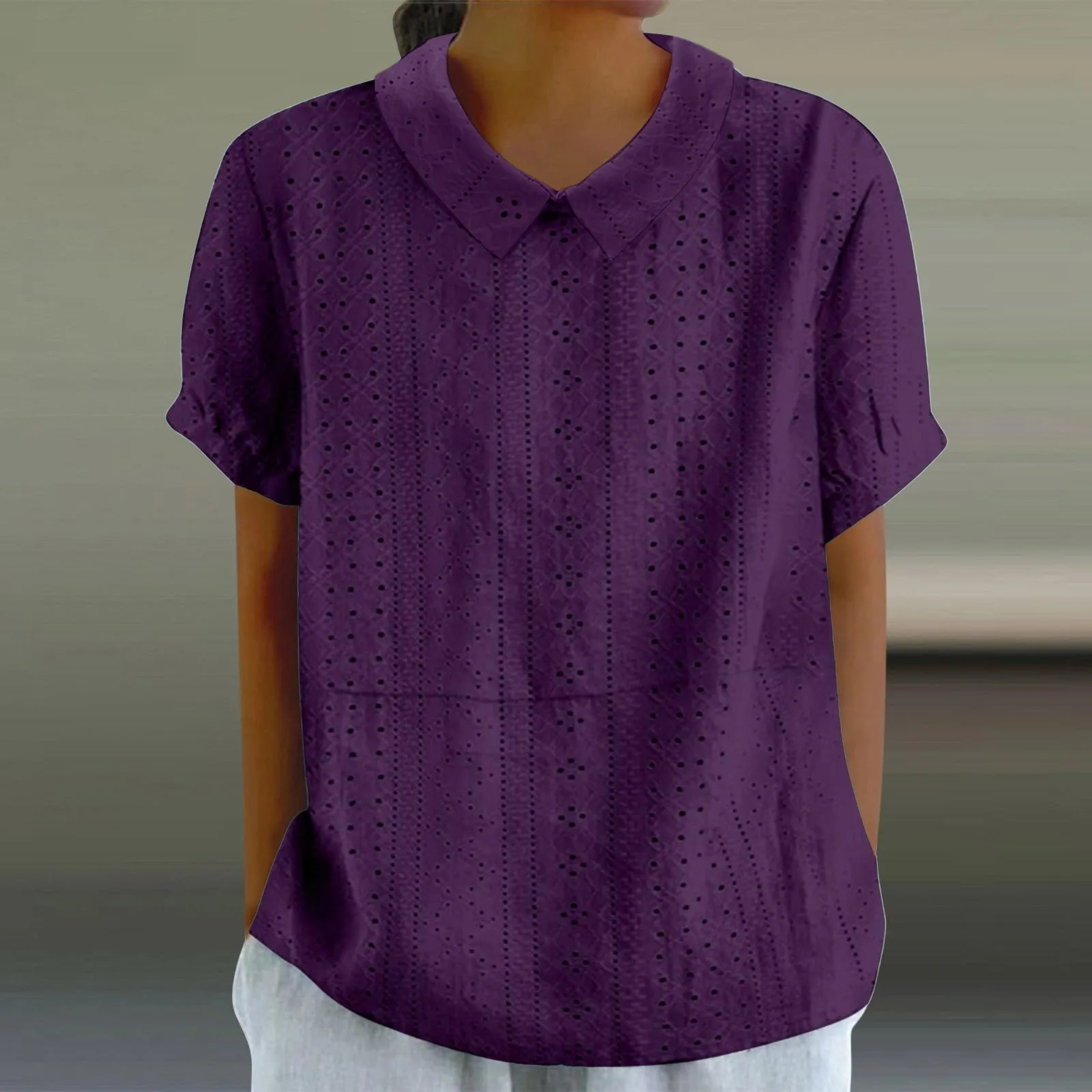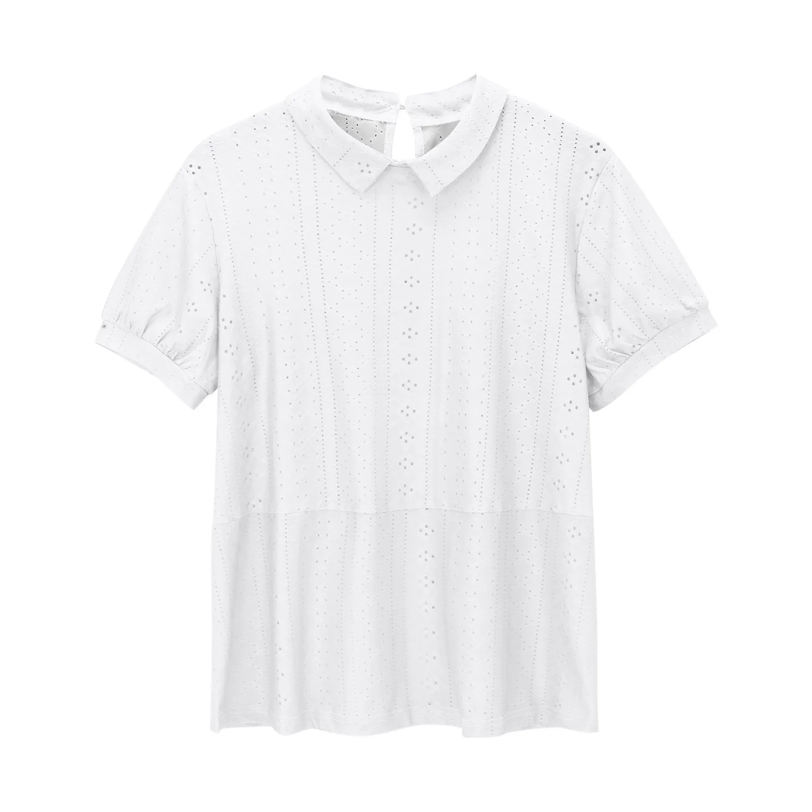 Elegant Hollow Turn-Down Collar Blouse Shirt Top Button Short Sleeve Women Blouse Casual Summer Fashion Female Tops
