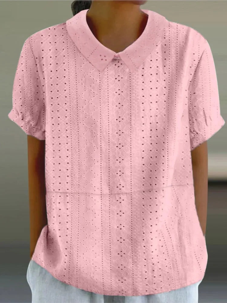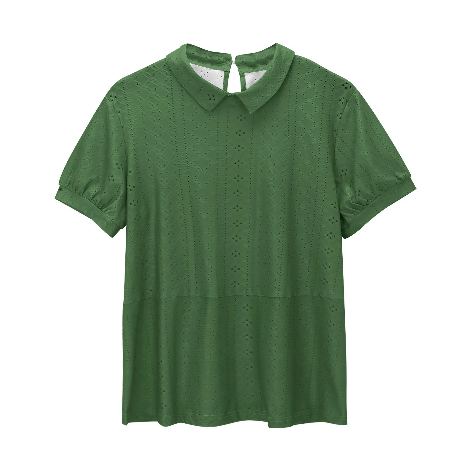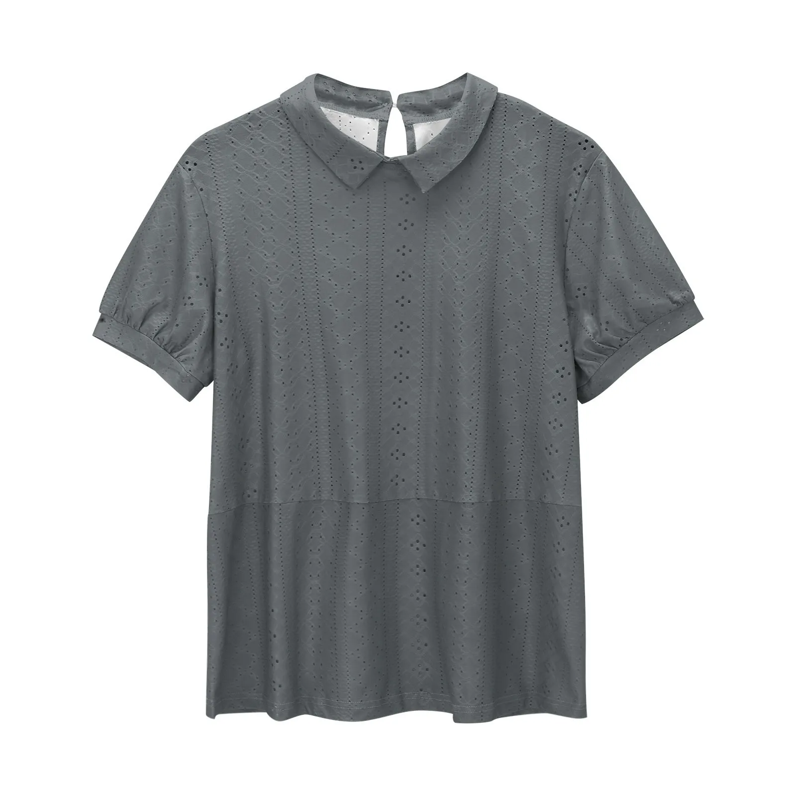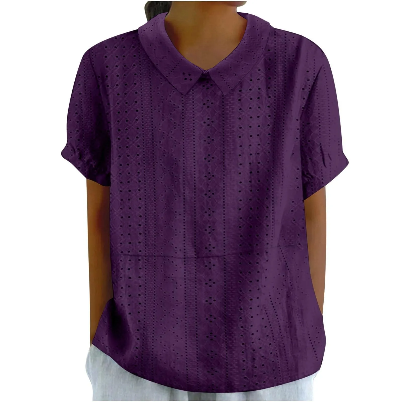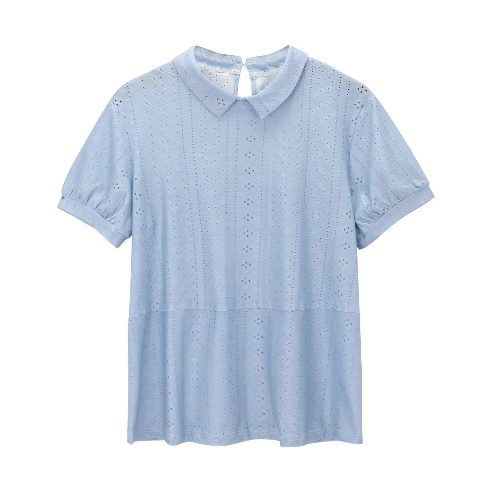 Elegant Hollow Turn-Down Collar Blouse Shirt Top Button Short Sleeve Women Blouse Casual Summer Fashion Female Tops