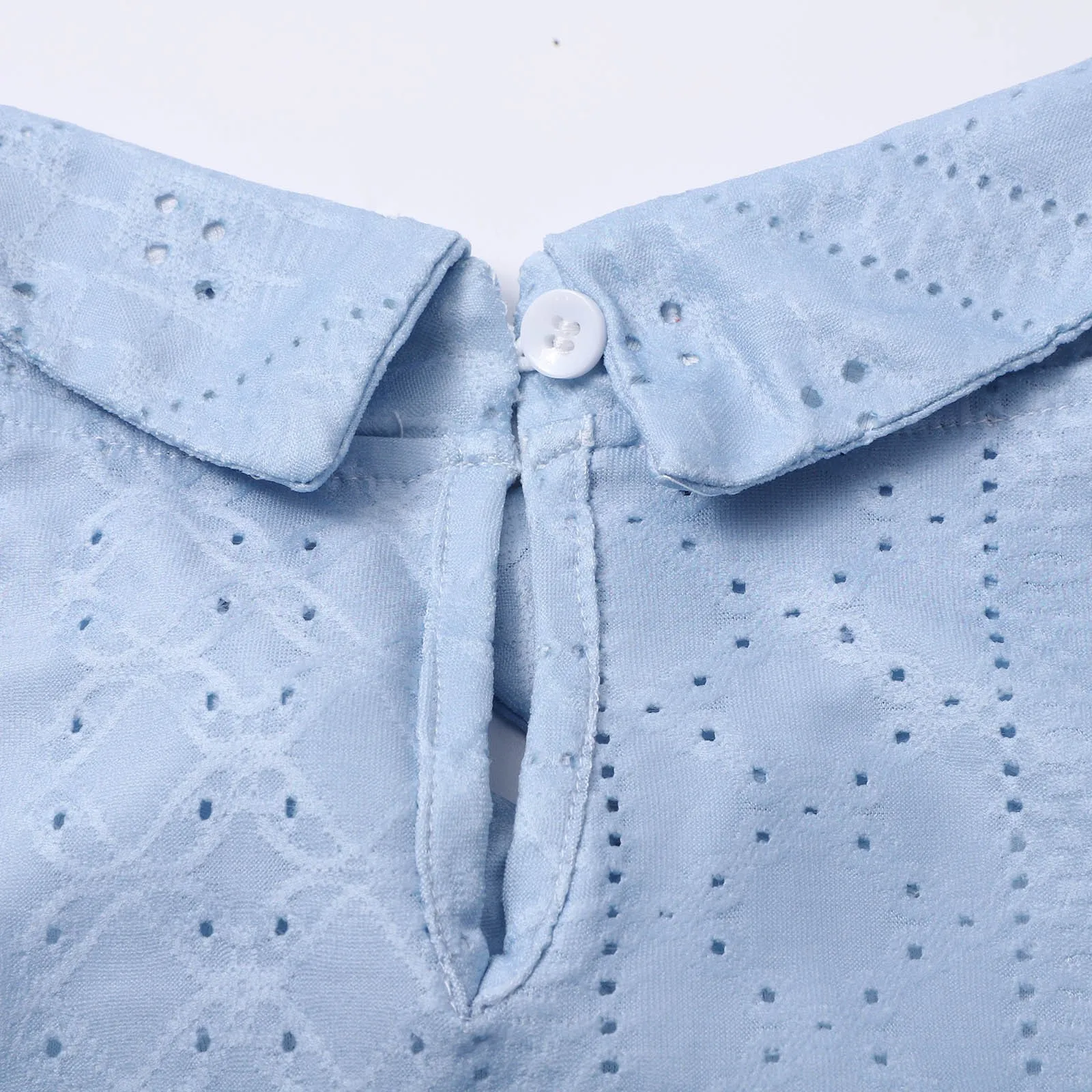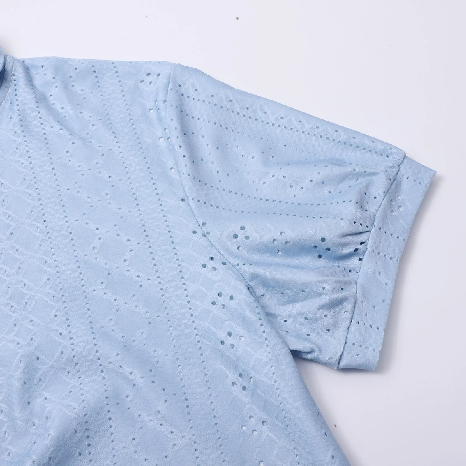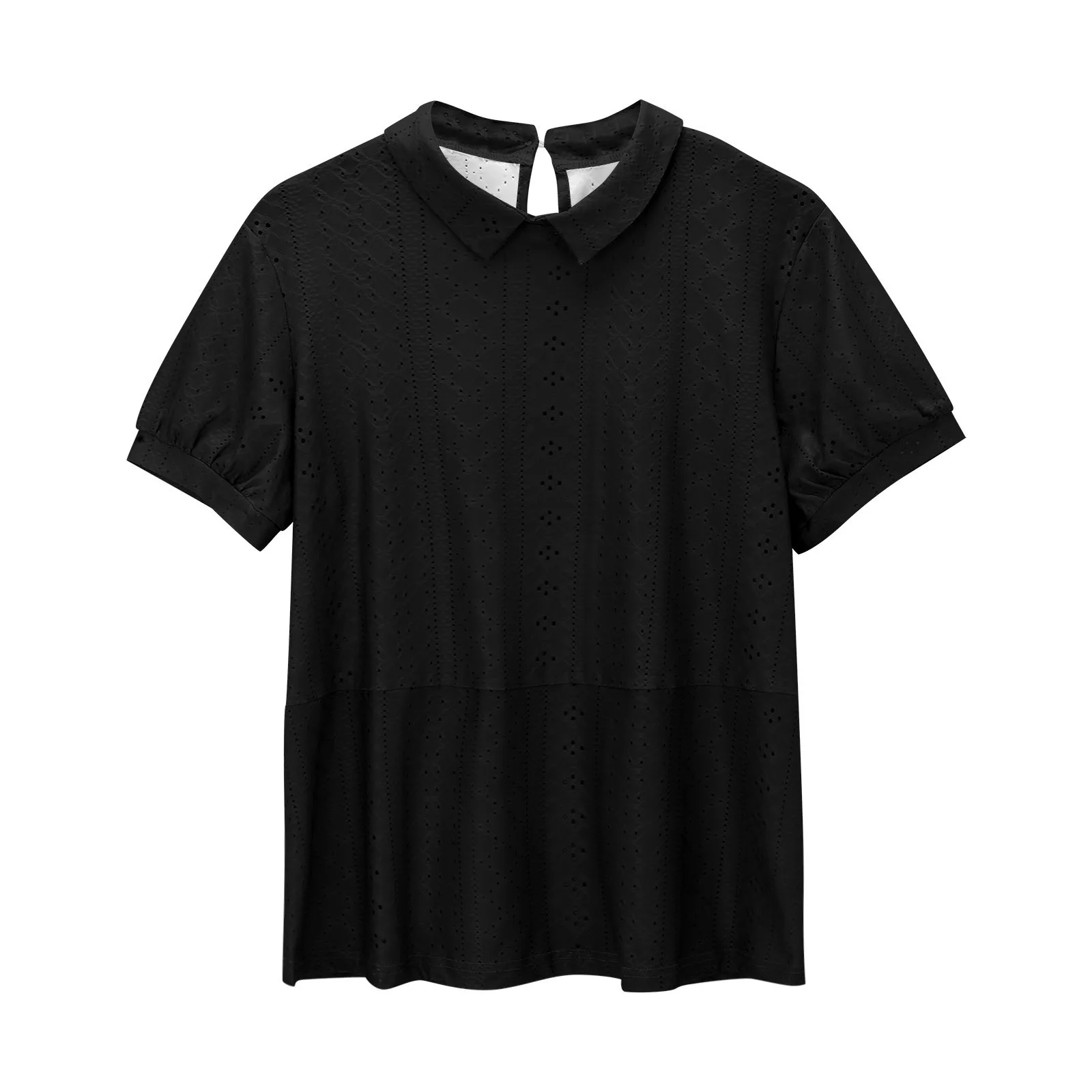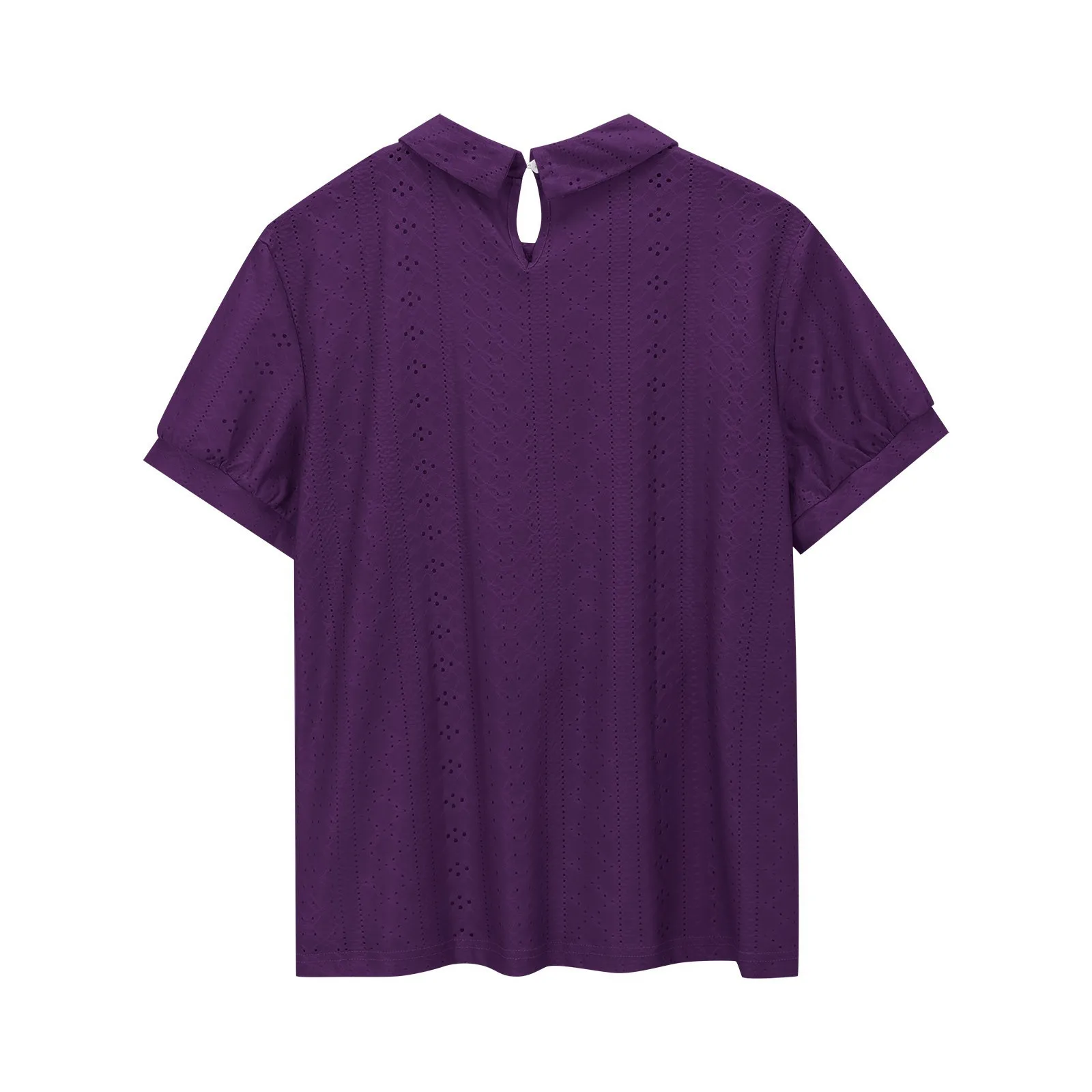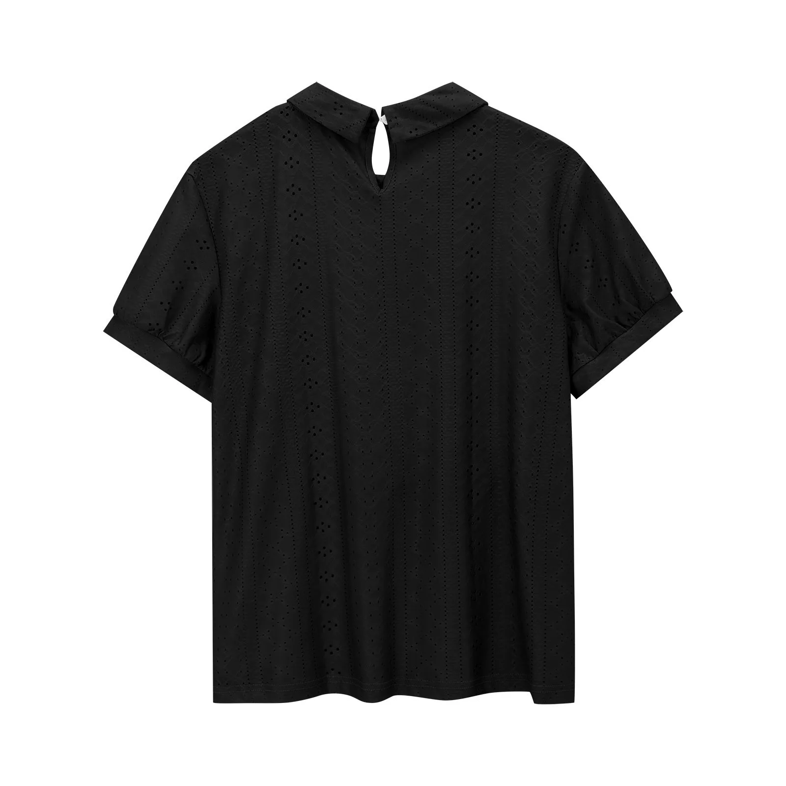 Elegant Hollow Turn-Down Collar Blouse Shirt Top Button Short Sleeve Women Blouse Casual Summer Fashion Female Tops