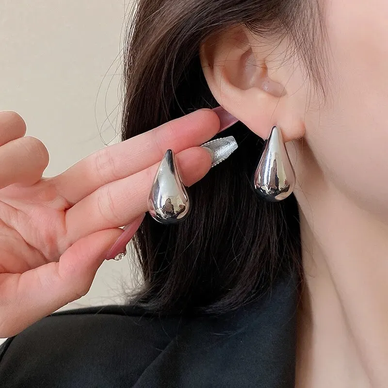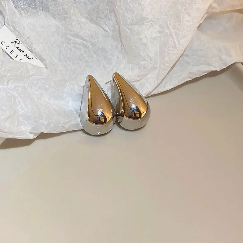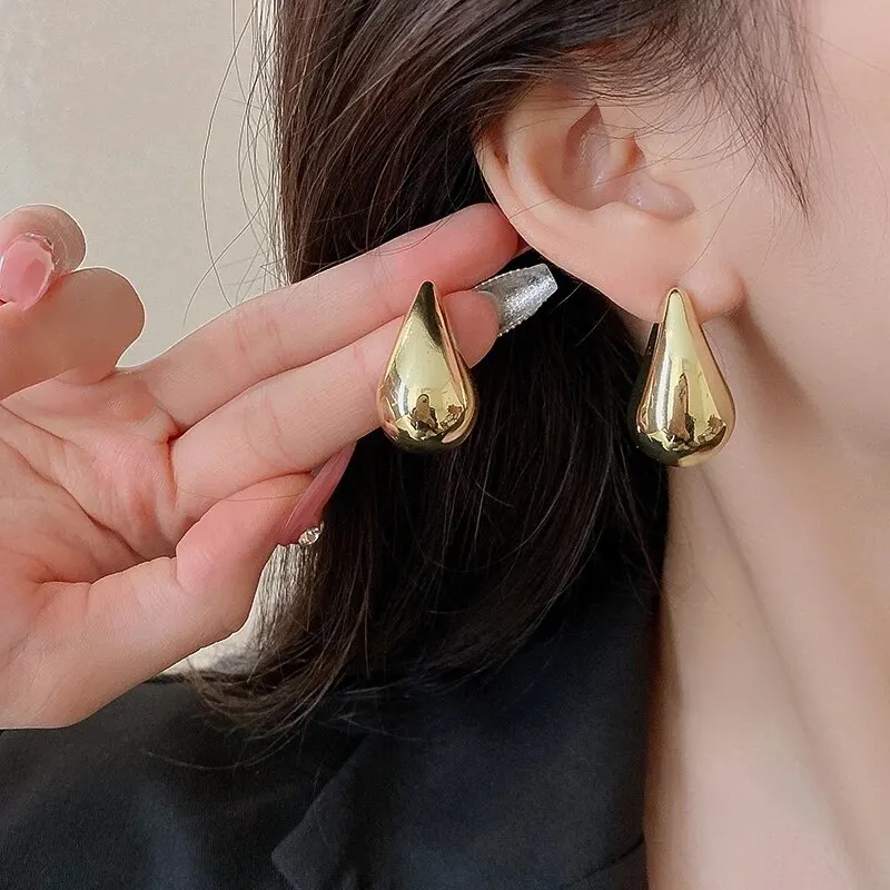 Exaggerate Big Water Drop Earrings For Women Gold Plated Metal Thick Teardrop Stud Earring French Style Top Quality Jewelry