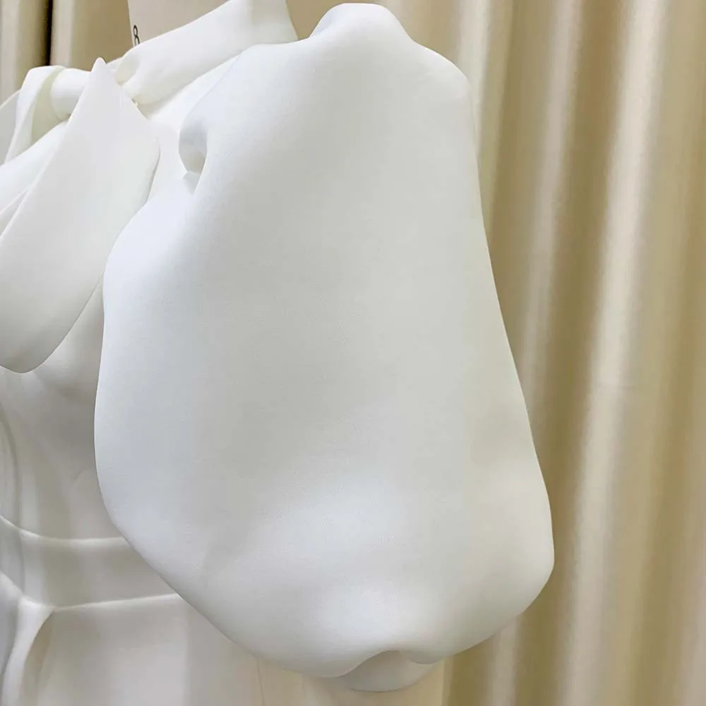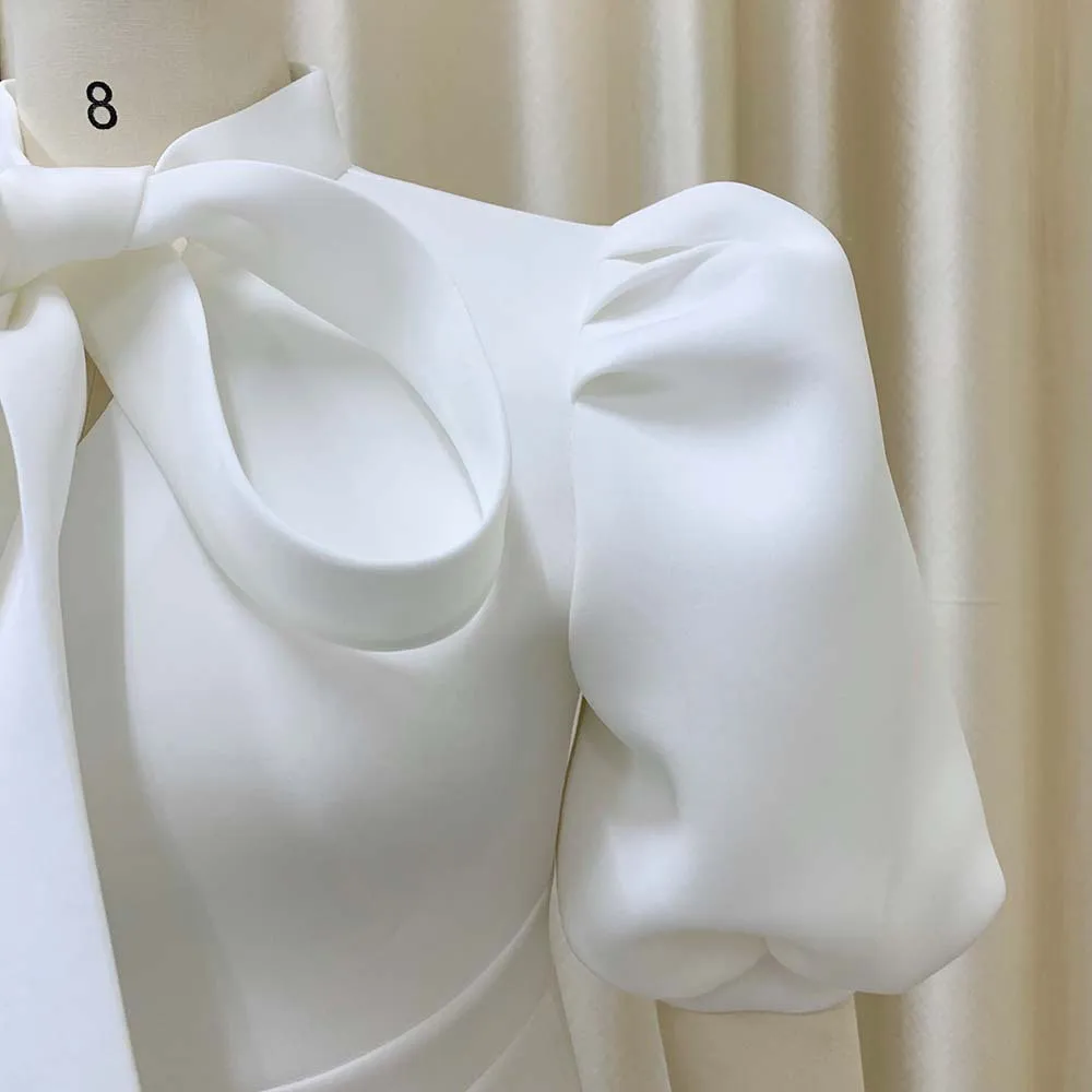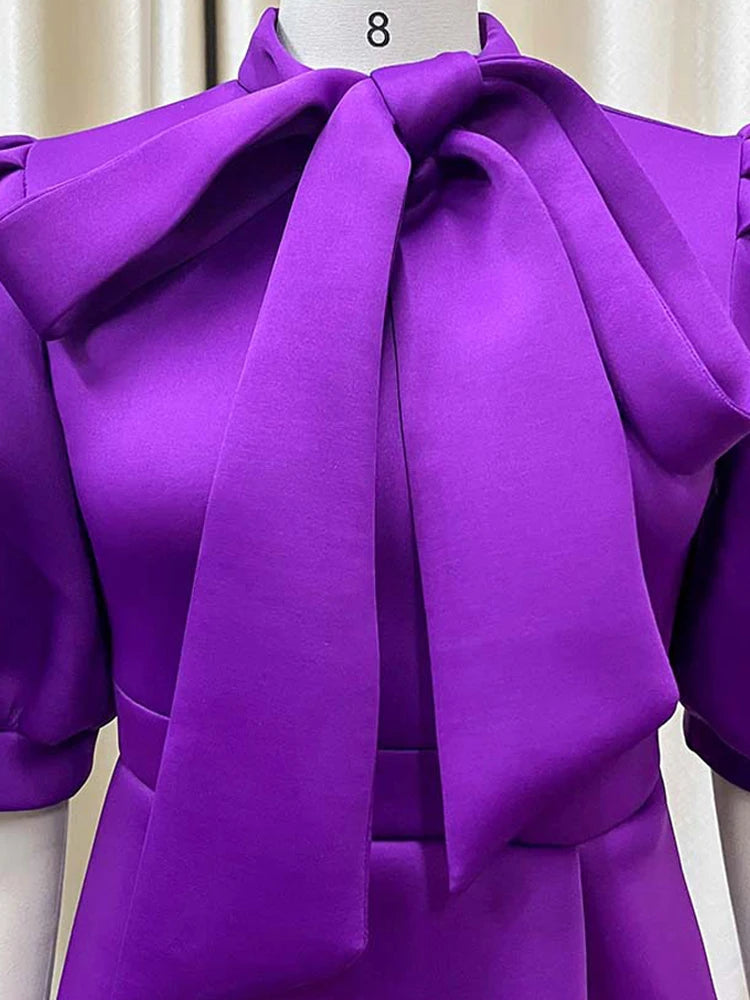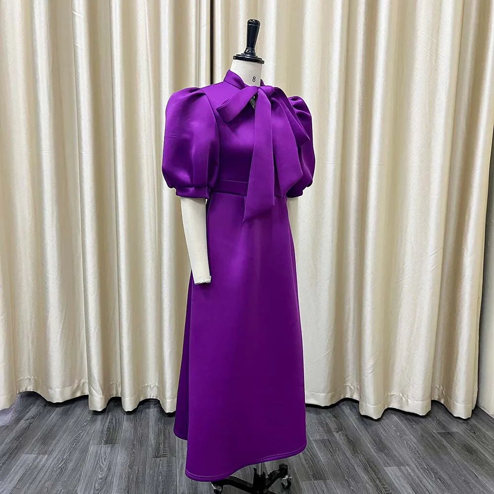 FairyShely 2025 Puff Short Sleeve Plus Size Dress Women Solid Bow Large Big Dresses Summer Lady O-Neck Party Tight Curvy Dress