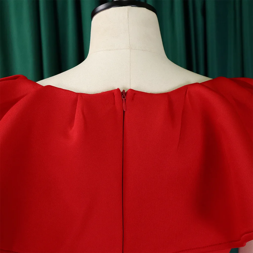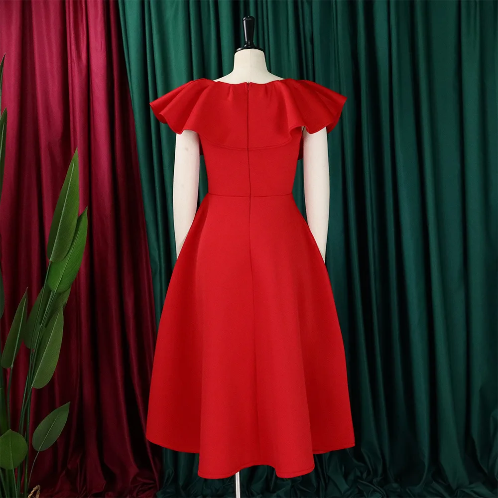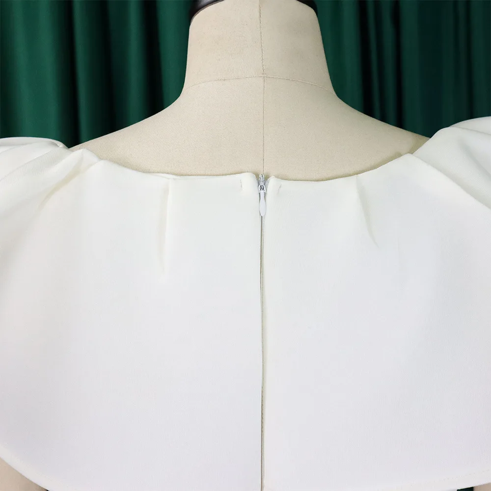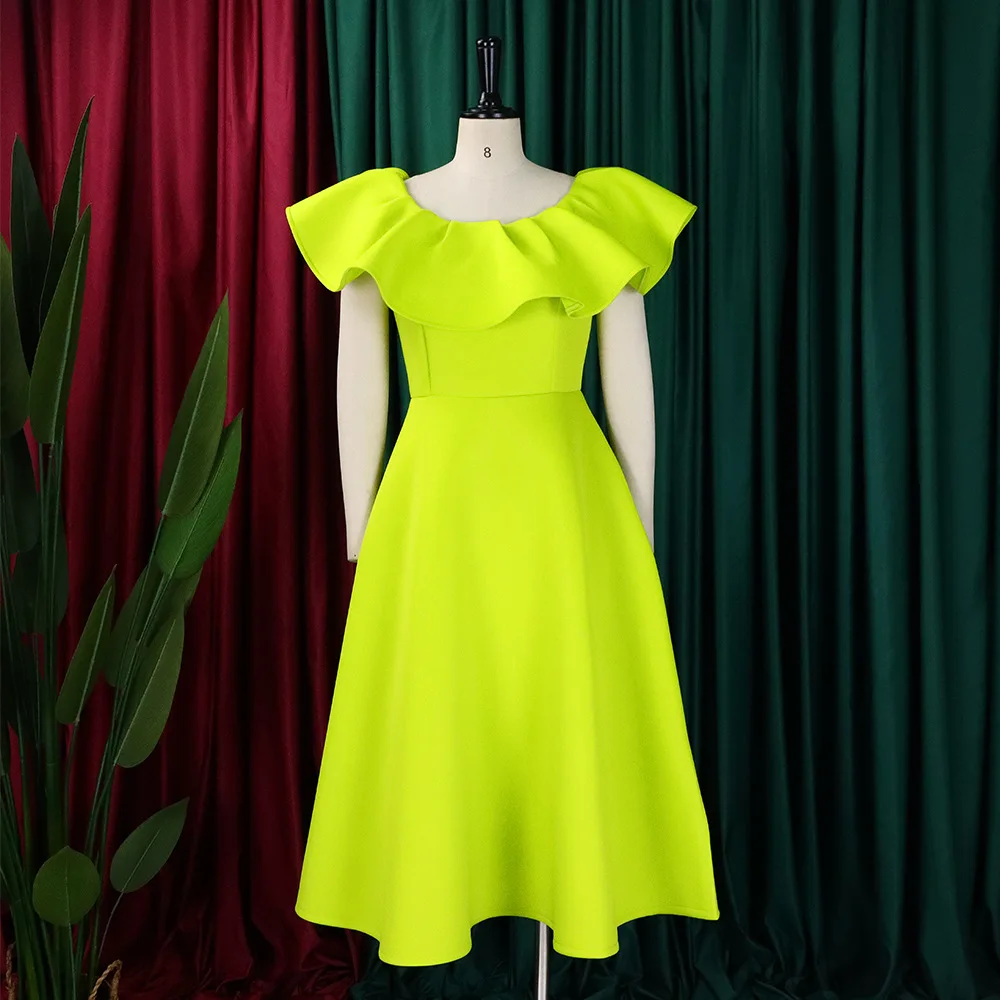 FairyShely 2025 Ruffle Short Sleeve Plus Size Dress Women Solid Large Big Ball Gown Dresses Lady Summer Party Tight Curvy Dress