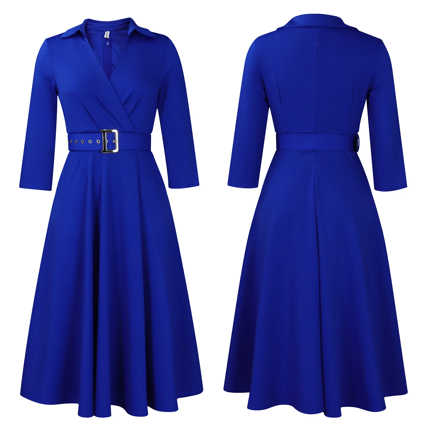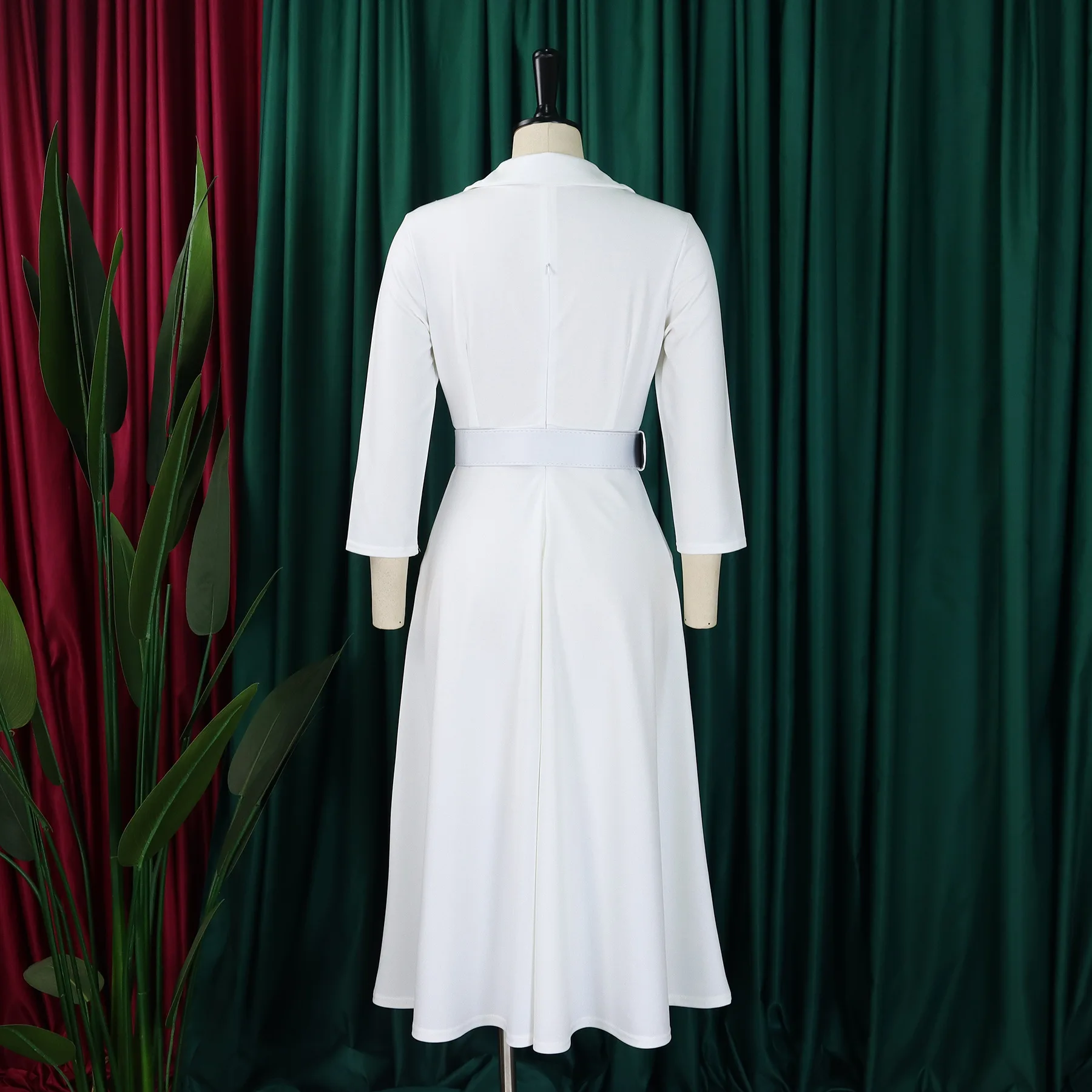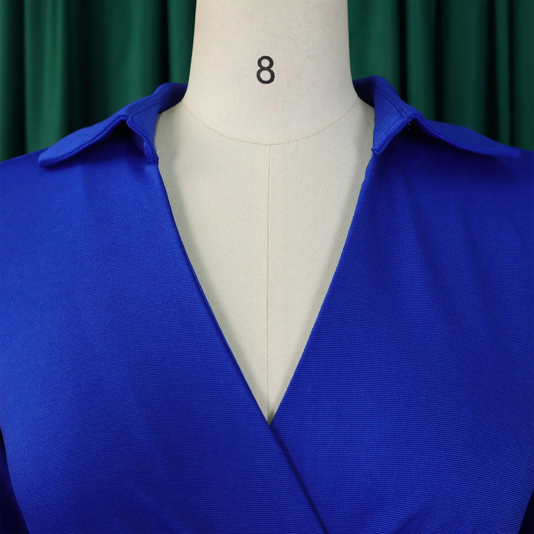 FairyShely 2025 Solid Turn-down Collar Plus Size Dress Women Long Sleeve Large Big Dresses Lady Autumn Party Tight Curvy Dress