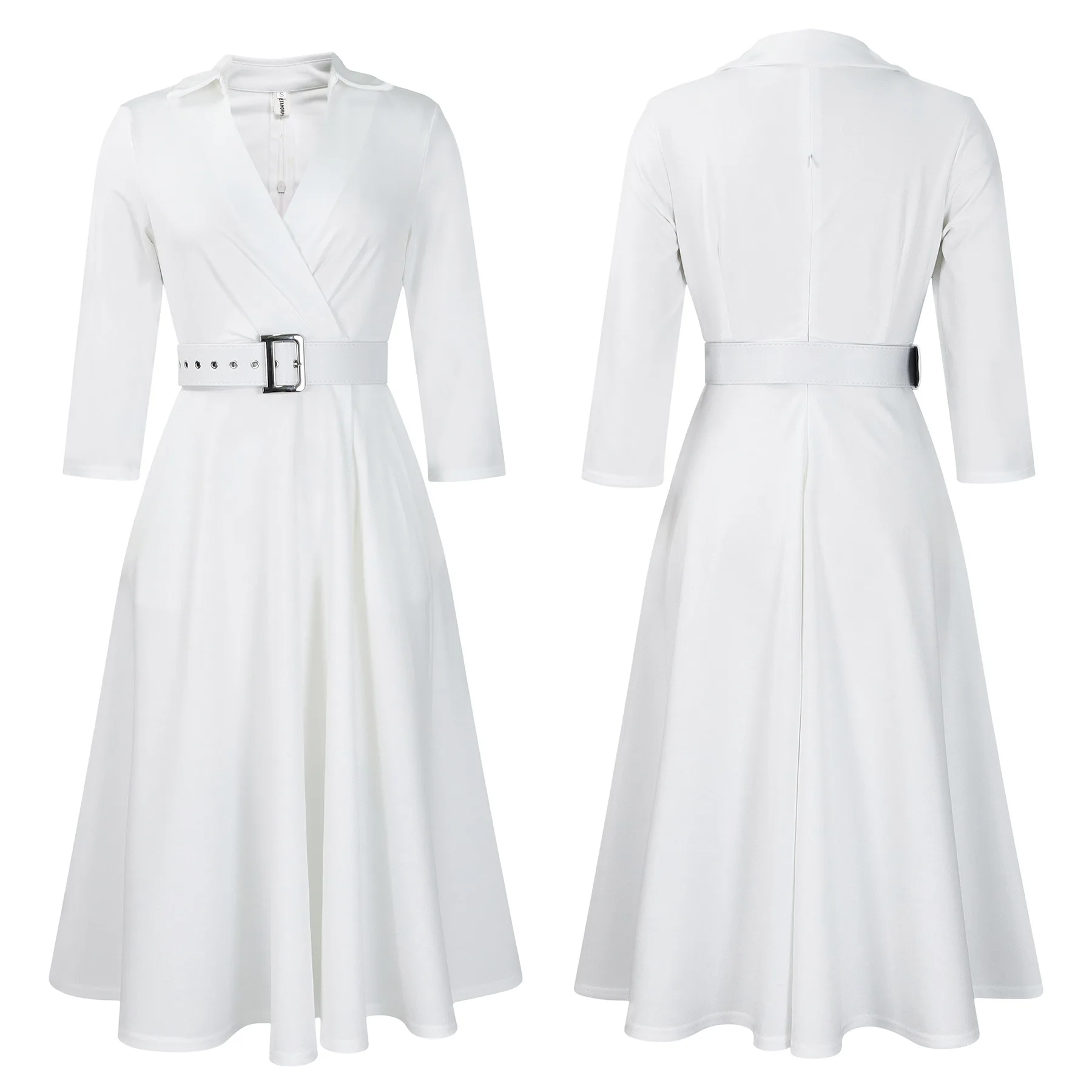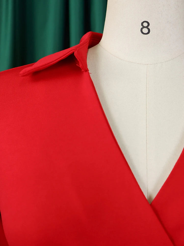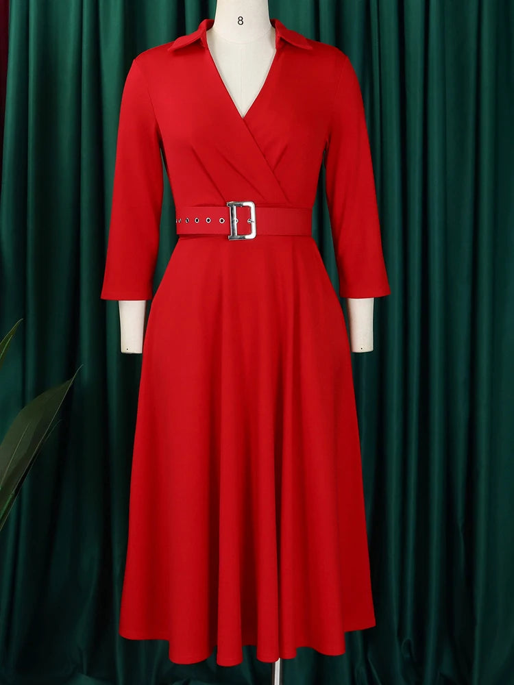 FairyShely 2025 Solid Turn-down Collar Plus Size Dress Women Long Sleeve Large Big Dresses Lady Autumn Party Tight Curvy Dress