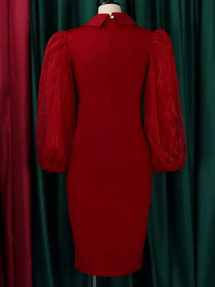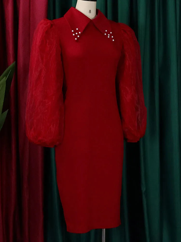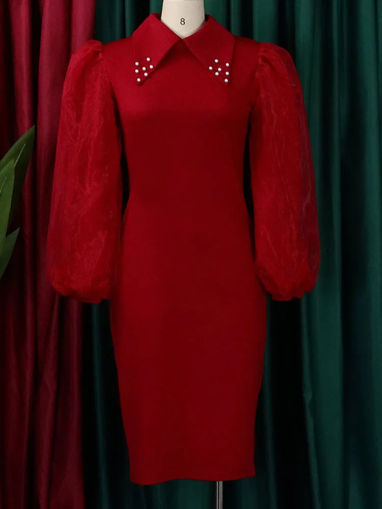 FairyShely 2025 Spring Autumn Solid Plus Size Dress Women Lantern Long Sleeve Large Big Dresses Lady Party Tight Curvy Dress