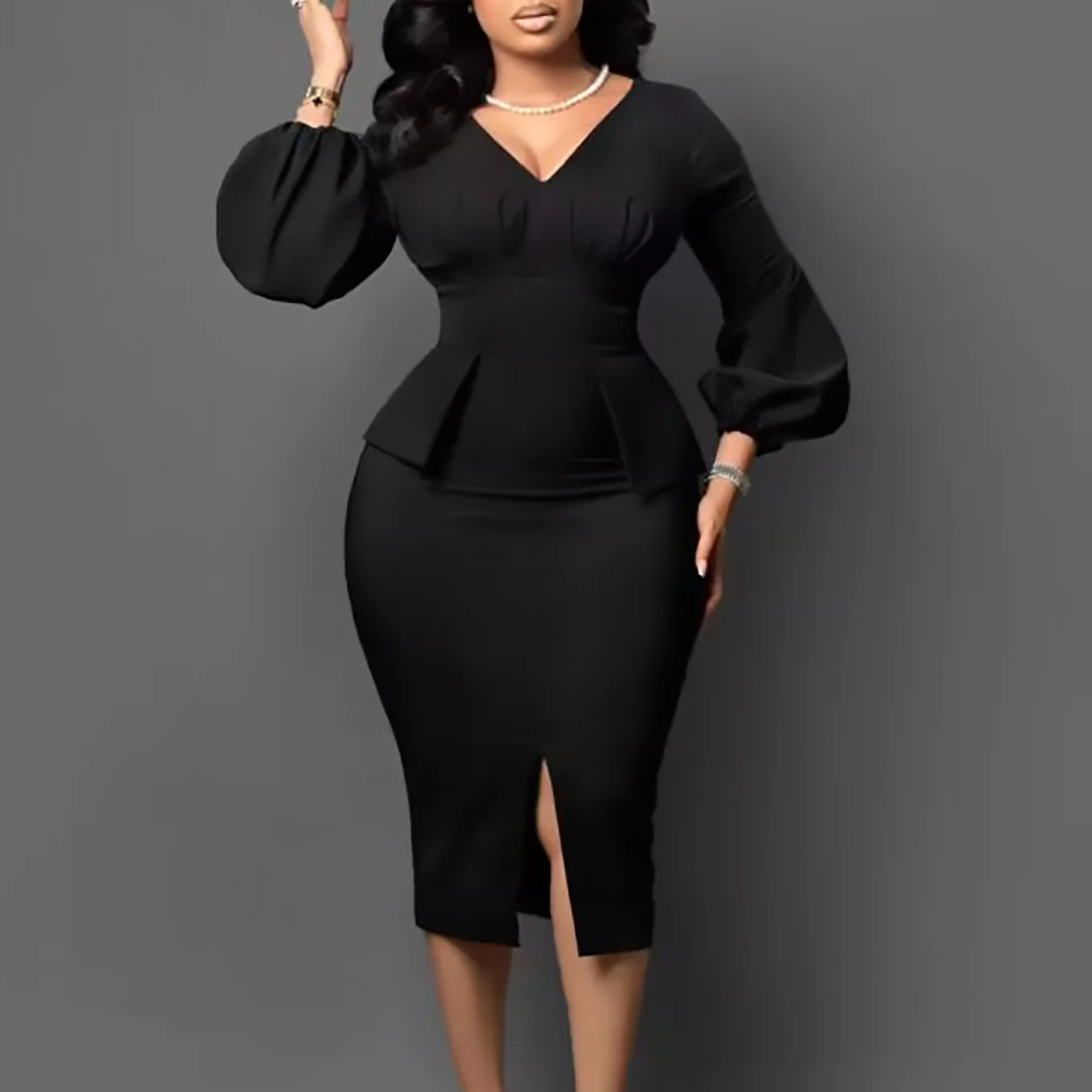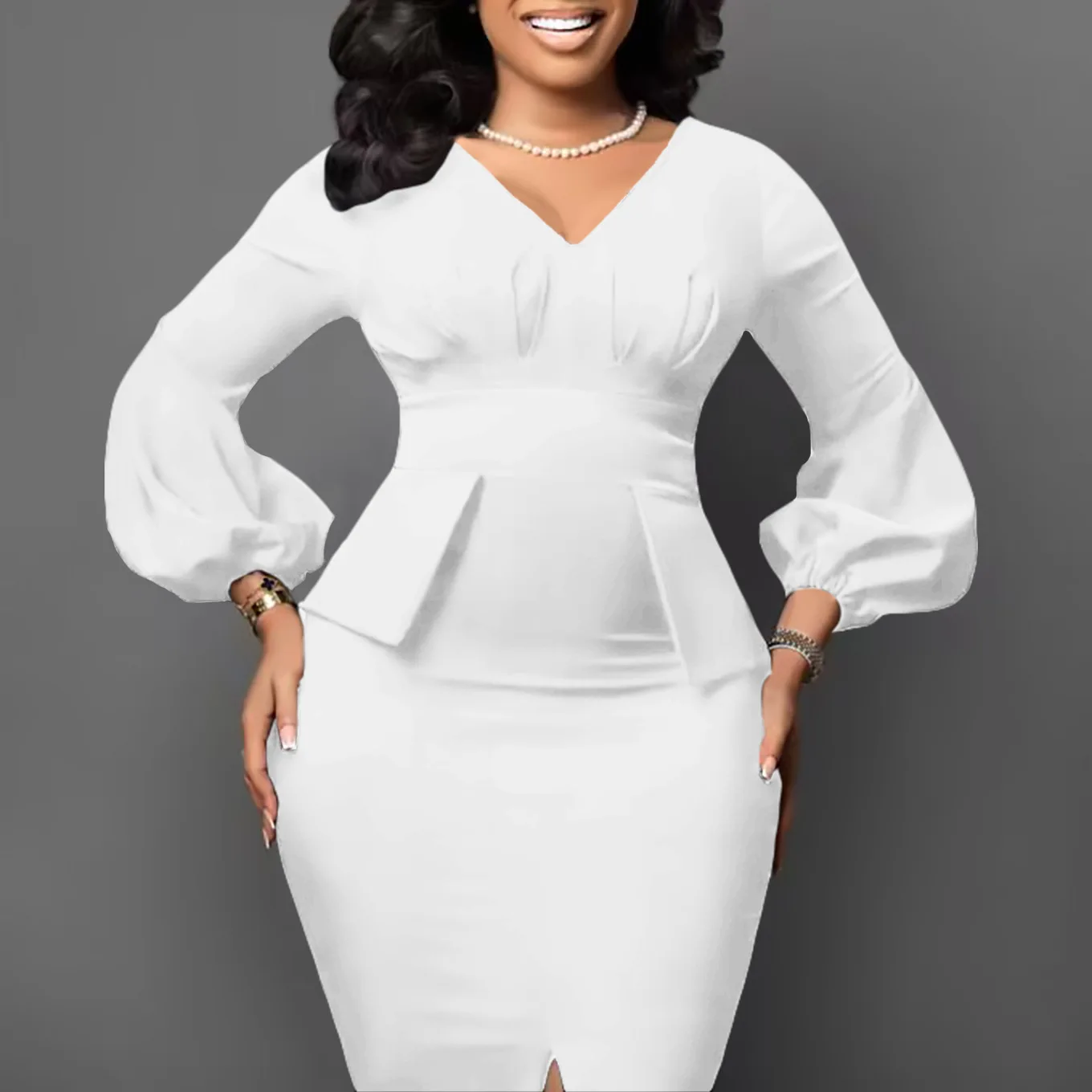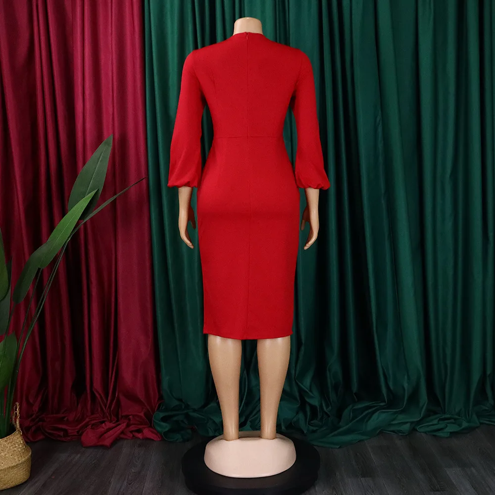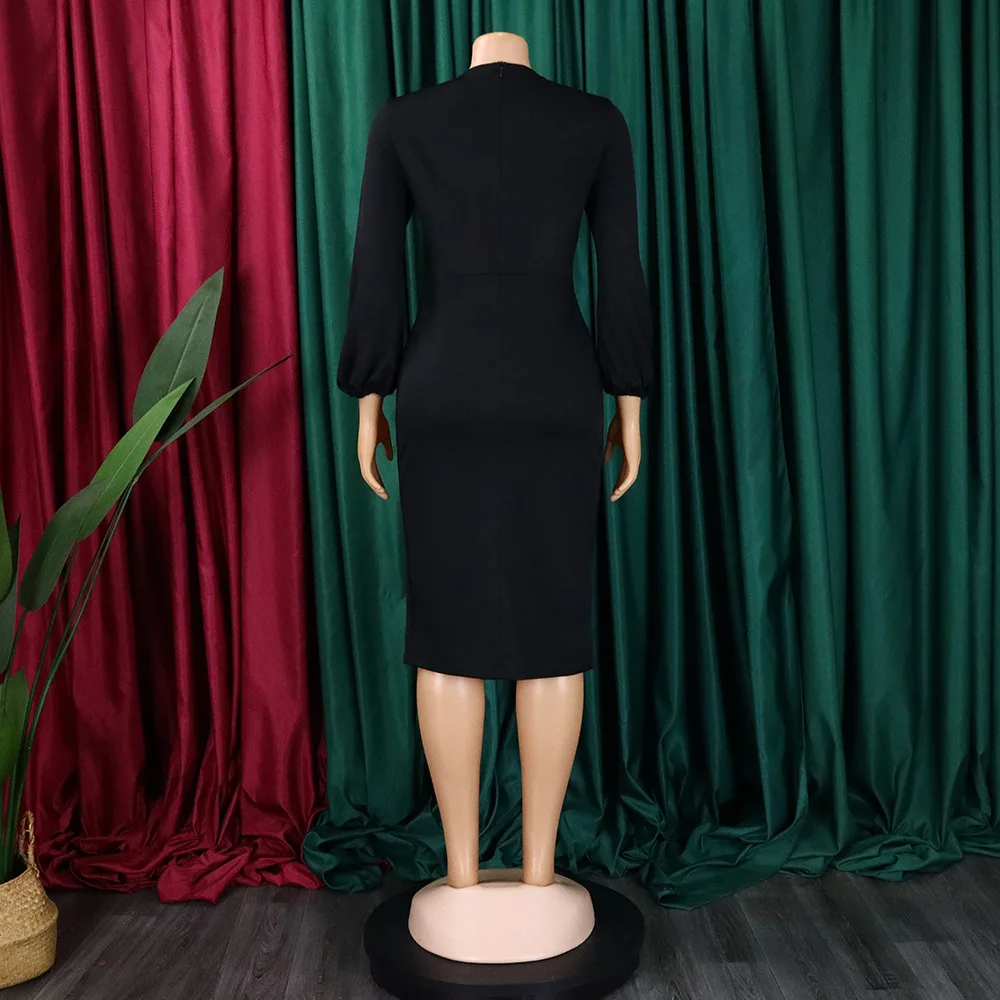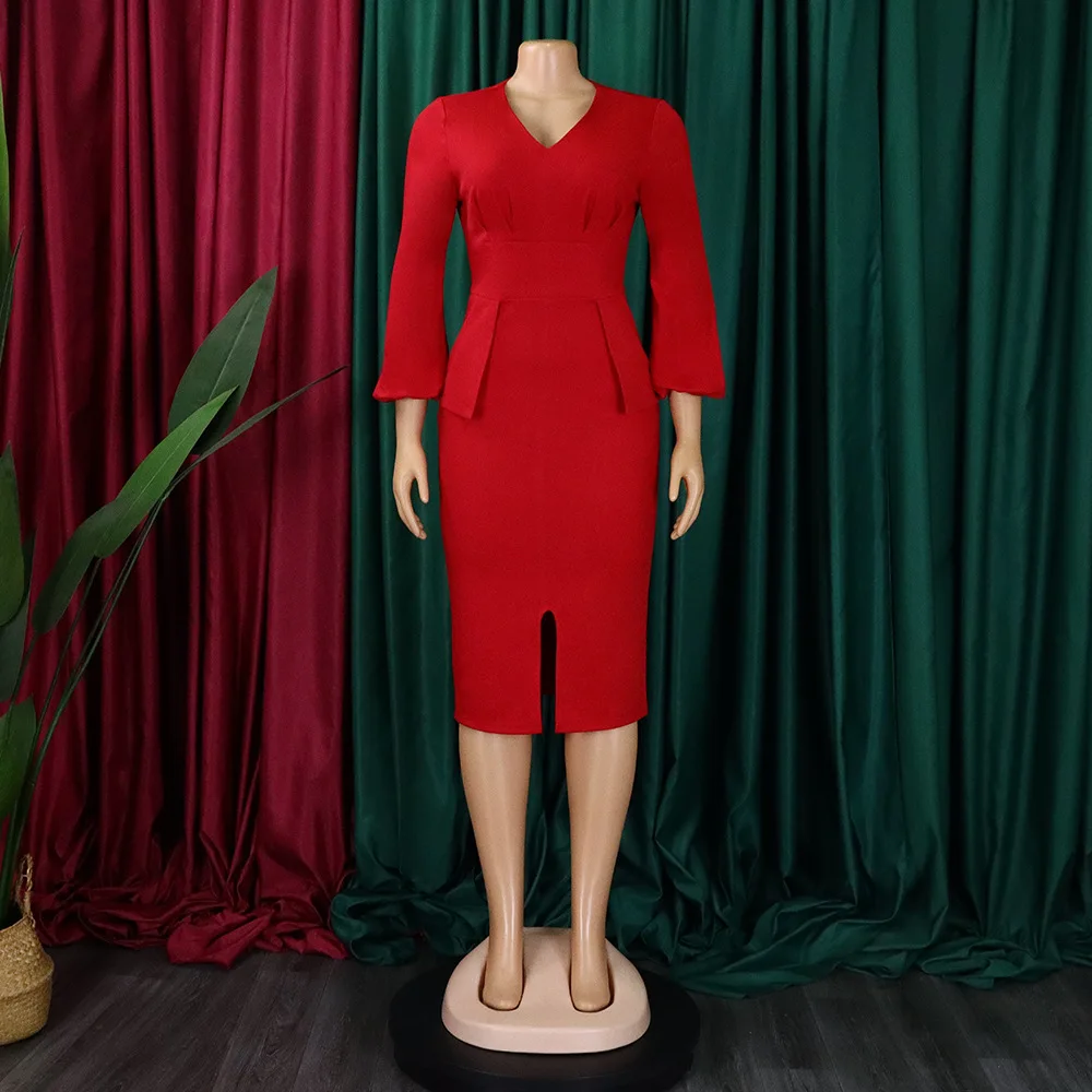 FairyShely 2025 Spring Bodycon Plus Size Dress Women Large Solid Big Sheath Dresses Lady Long Sleeve Party Tight Curvy Dress