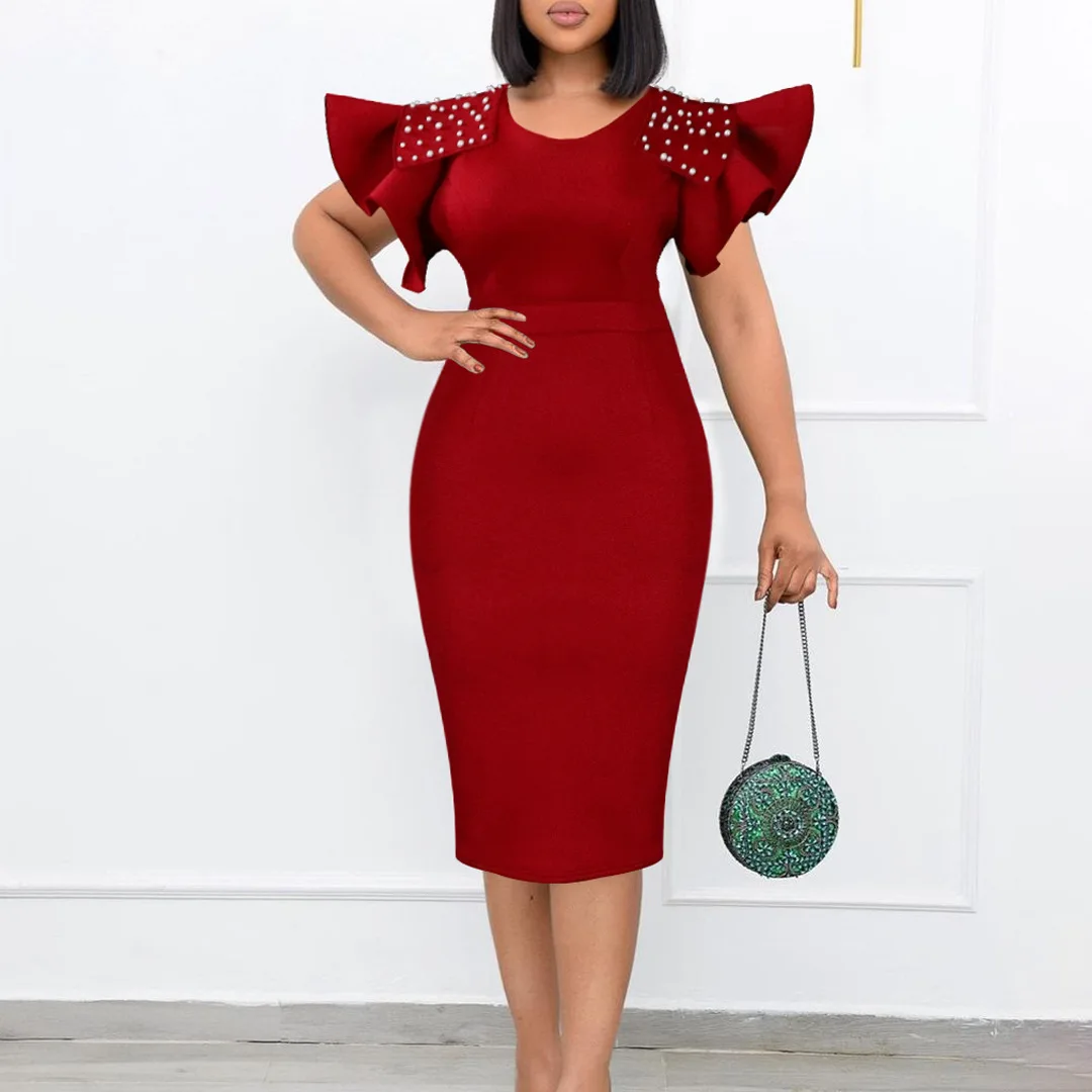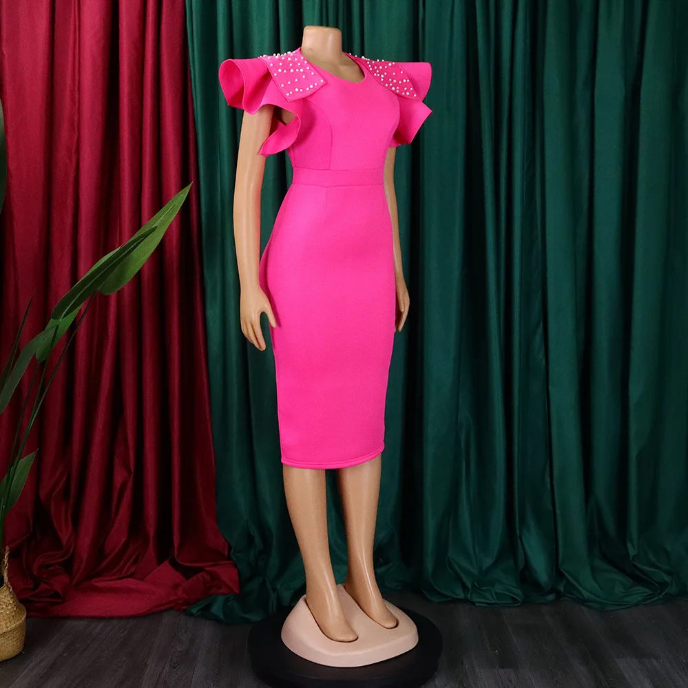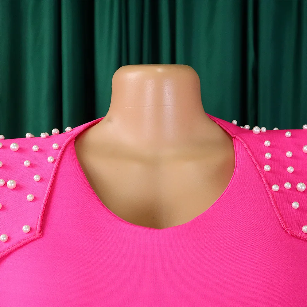 FairyShely 2025 Verge Short Sleeve Plus Size Dress Women Solid Large Bodycon Big Dresses Lady Summer Party Tight Curvy Dress