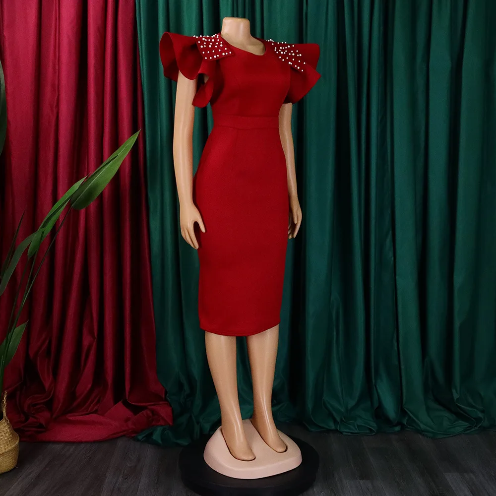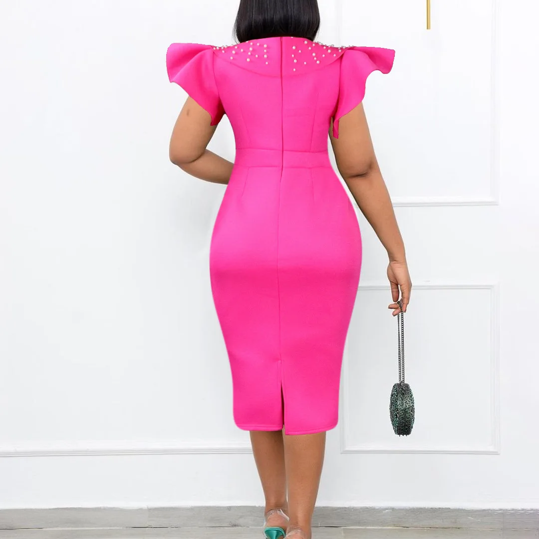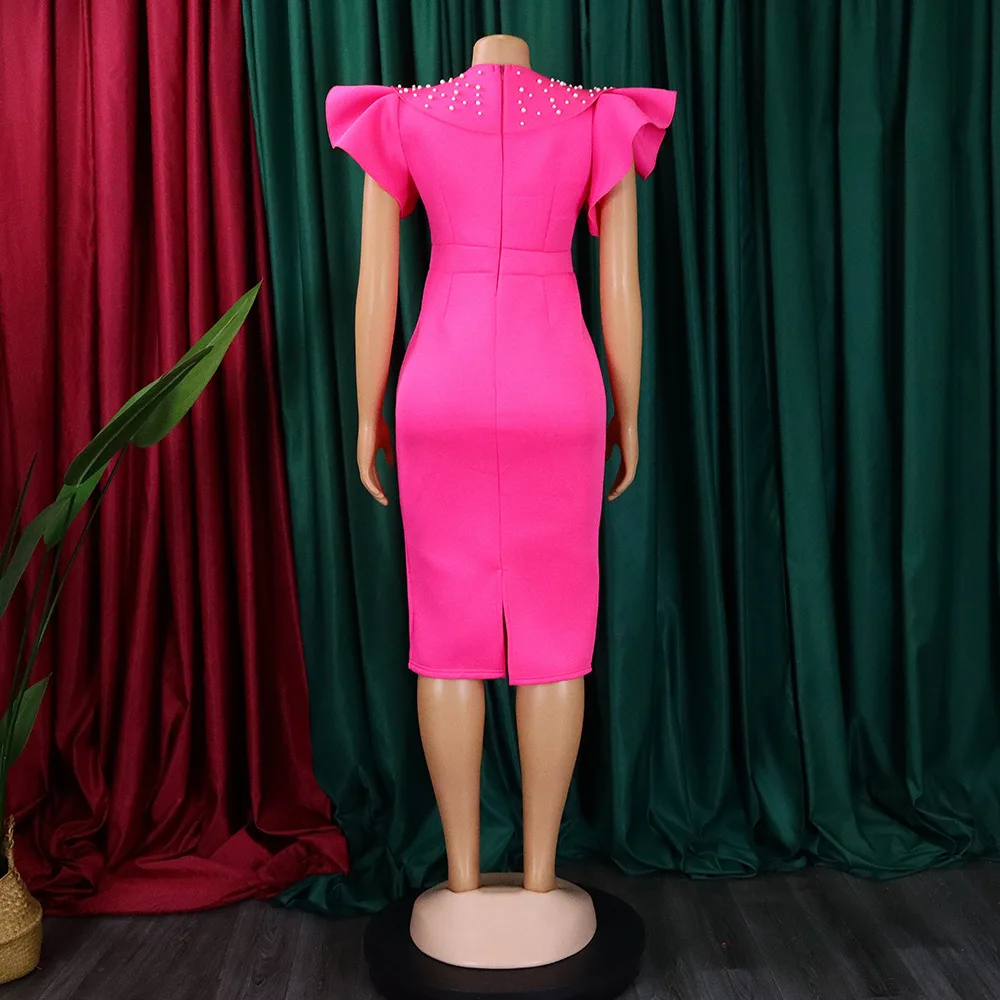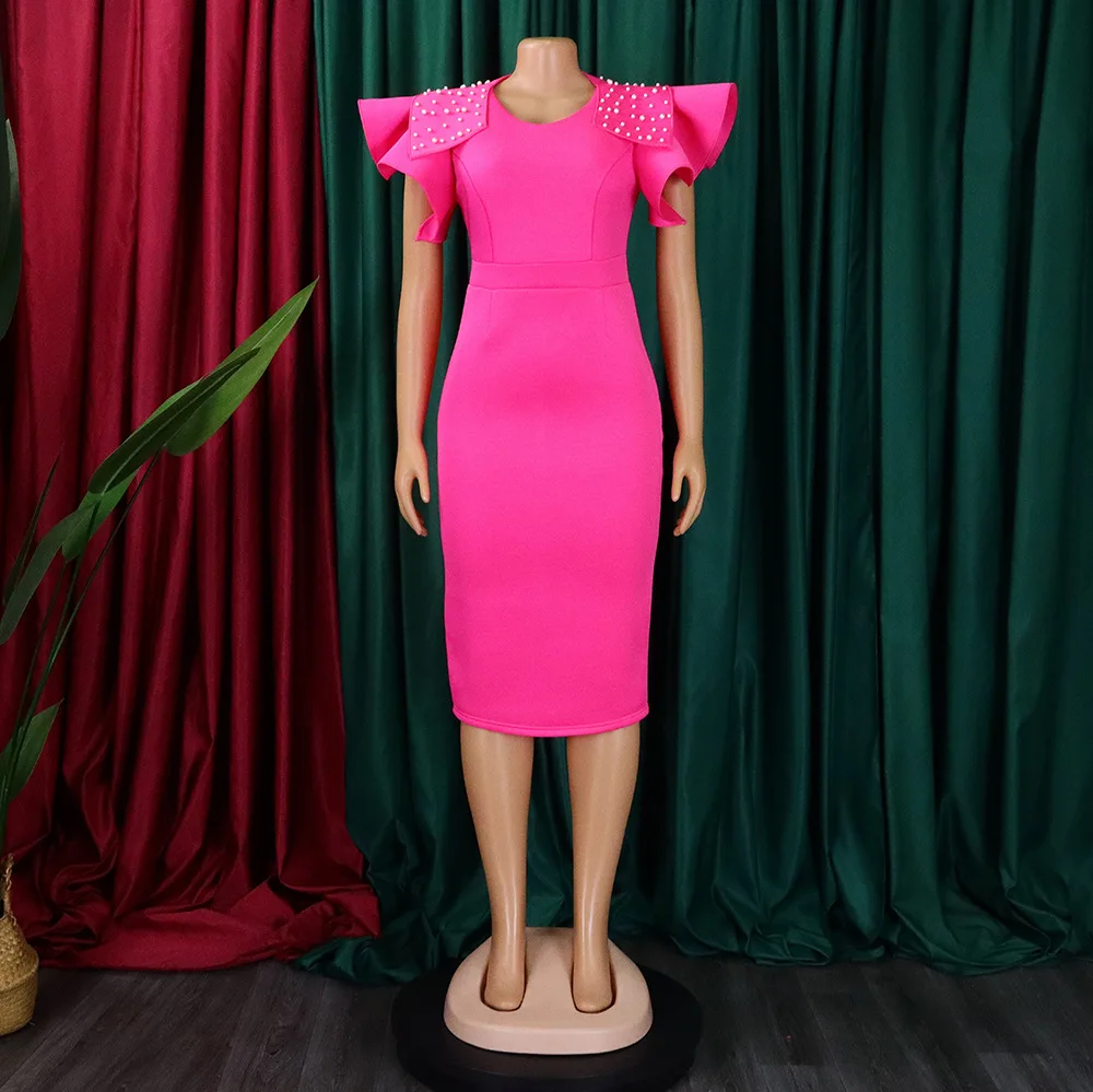 FairyShely 2025 Verge Short Sleeve Plus Size Dress Women Solid Large Bodycon Big Dresses Lady Summer Party Tight Curvy Dress