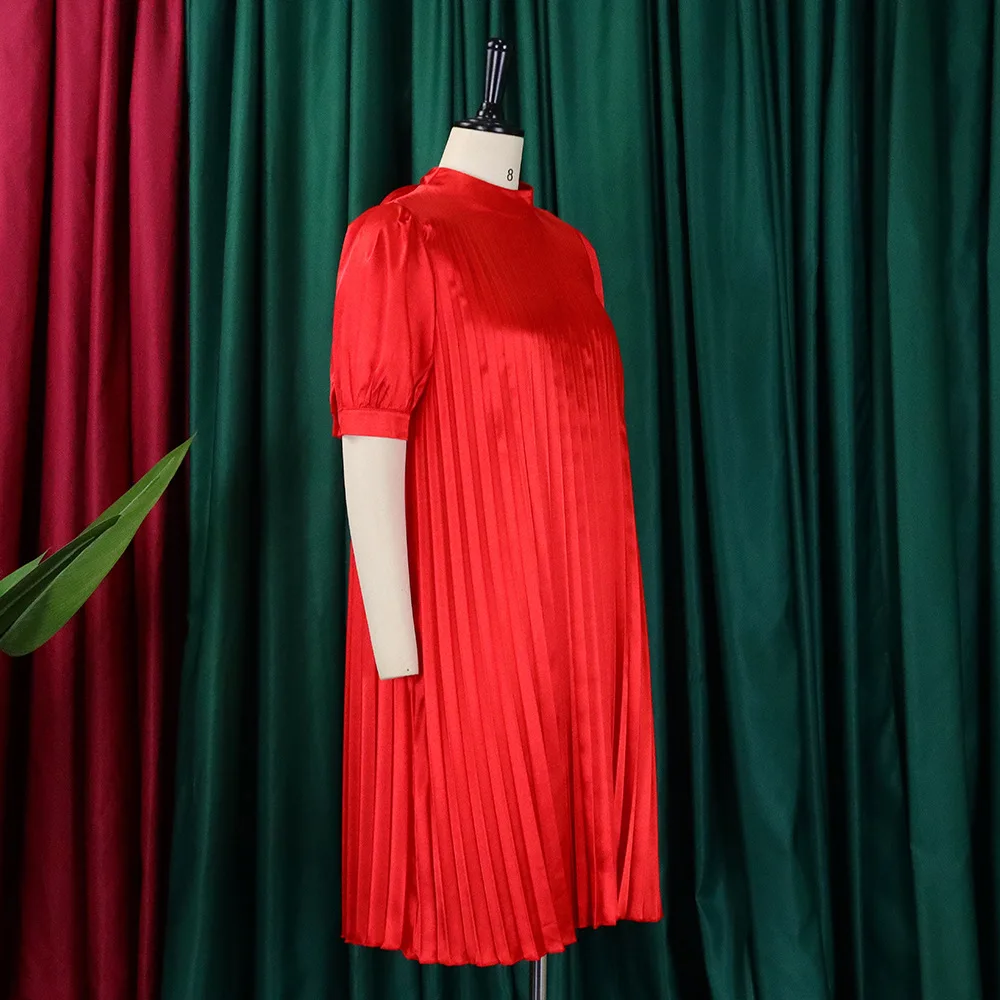 FairyShely Solid 2025 Short Sleeve Plus Size Dress Women Large Big Loose Folds Dresses Lady Summer Party Tight Curvy Dress