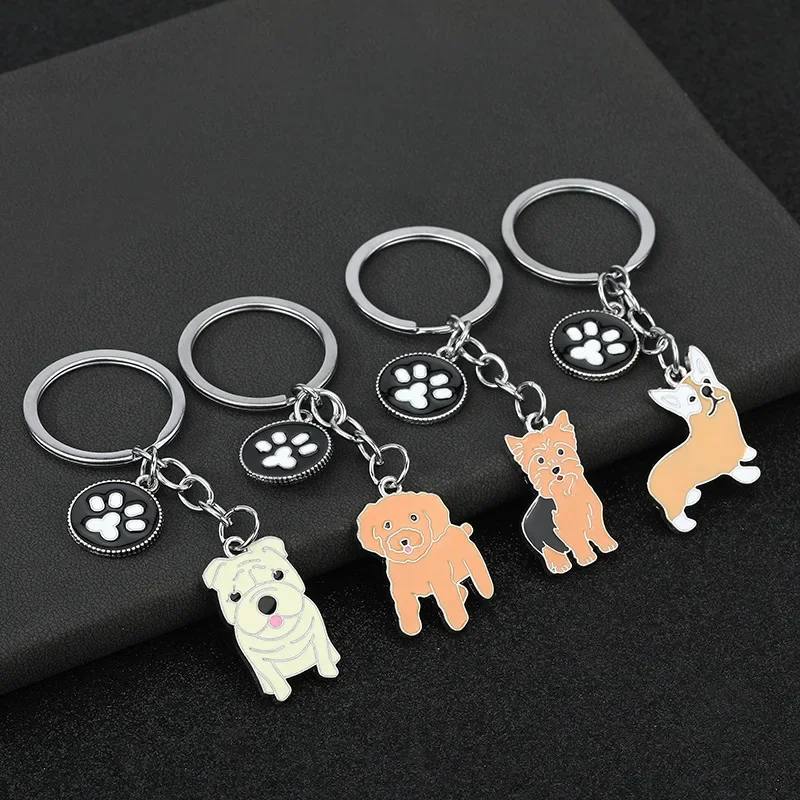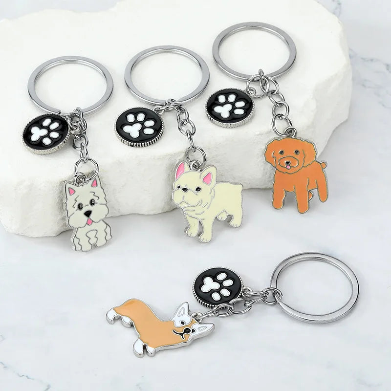 Fashion Alloy French Bulldog Pug Dog Keychain Cute Pet Dog Keyring Bag Handbag Charm Accessories For Women Animal Lovers Gifts