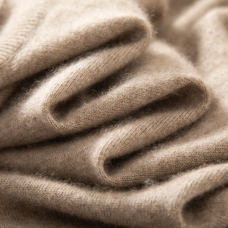 Fiber characteristics: The fiber diameter of cashmere is smaller than wool, the texture is more delicate and soft, and the scale structure of cashmere is smaller, making its thermal performance better than wool. Wool fibers are relatively thick, hard in texture, and not as warm as cashmere.
