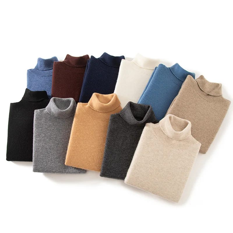 Fashion Basic Men 100% Cashmere Sweater Turtleneck Long Sleeve Pullover Clothing Smart Casual Cashmere Knitwear Clothing Tops