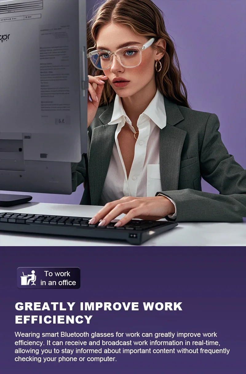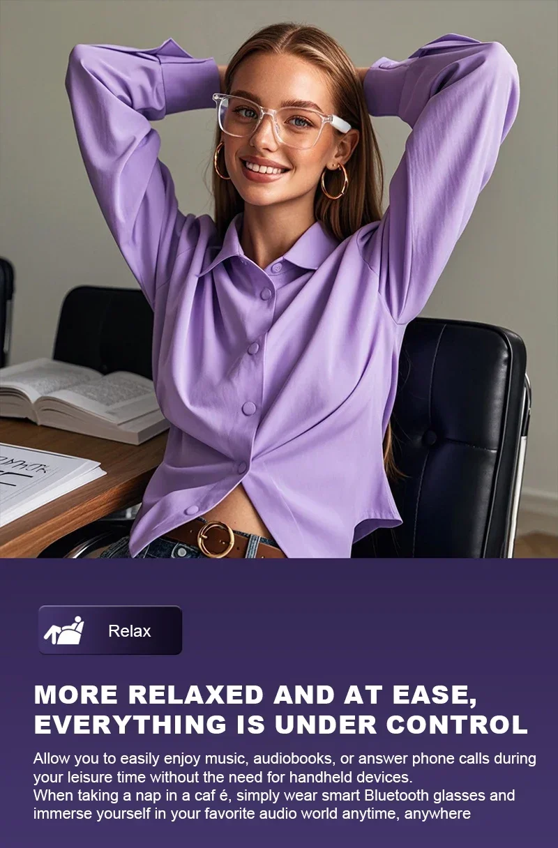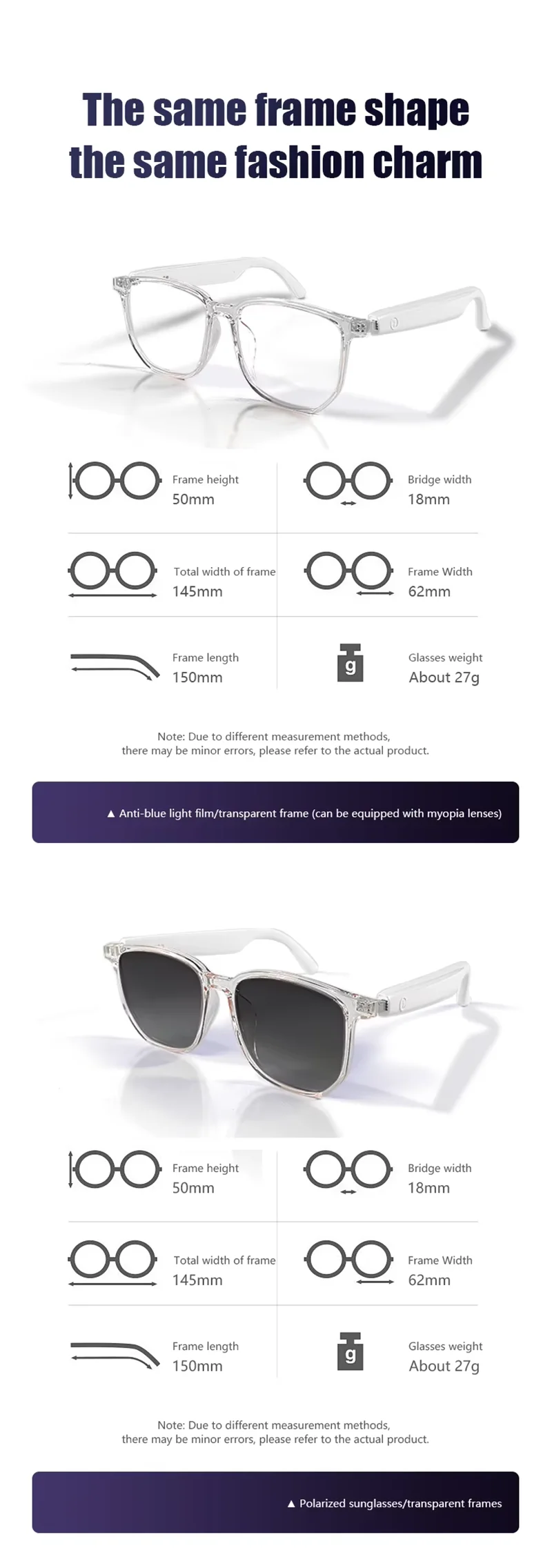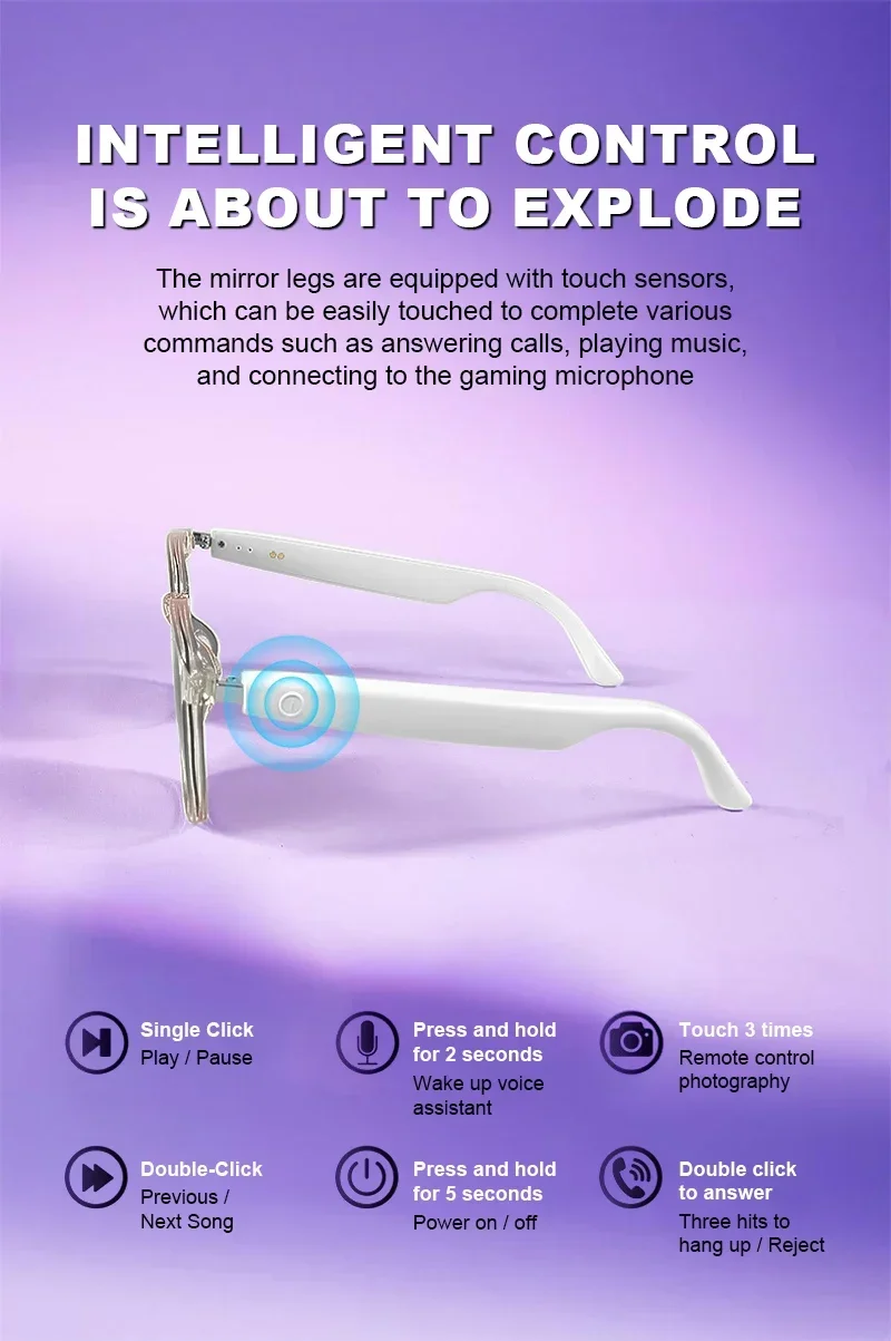 * Smart Touch Operation: The temples are equipped with touch sensors, and you can answer calls, play music, play games and other commands with just a light touch.