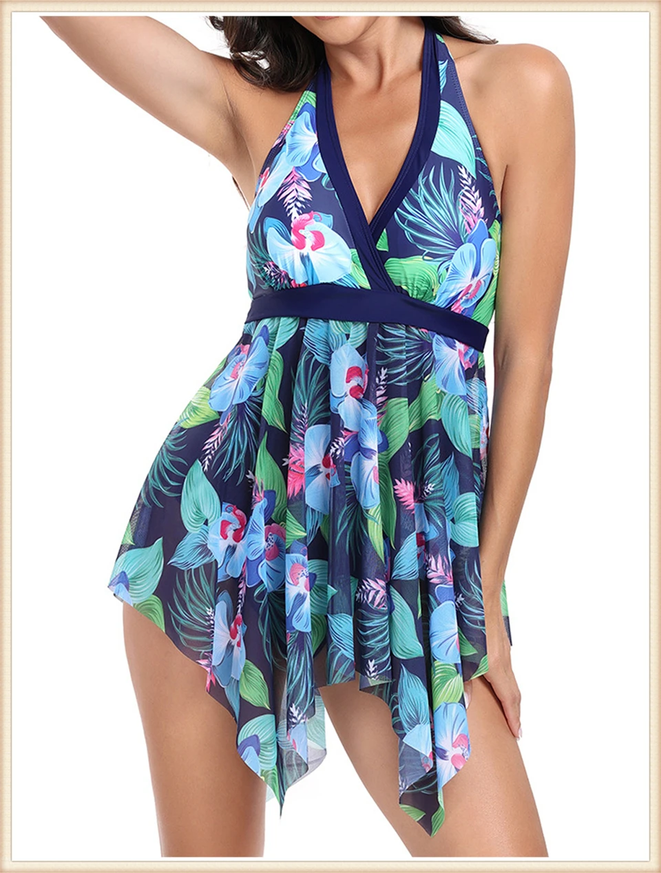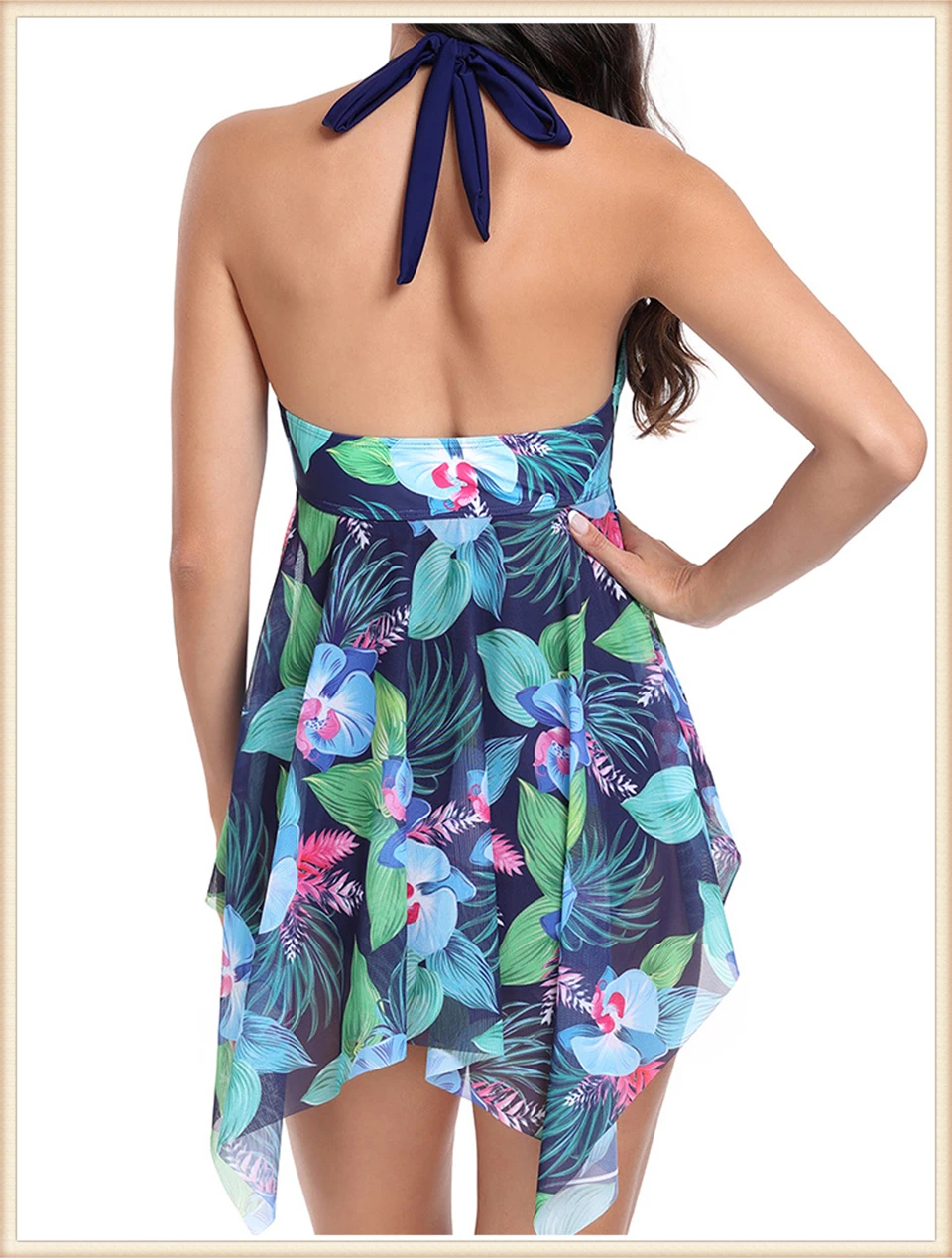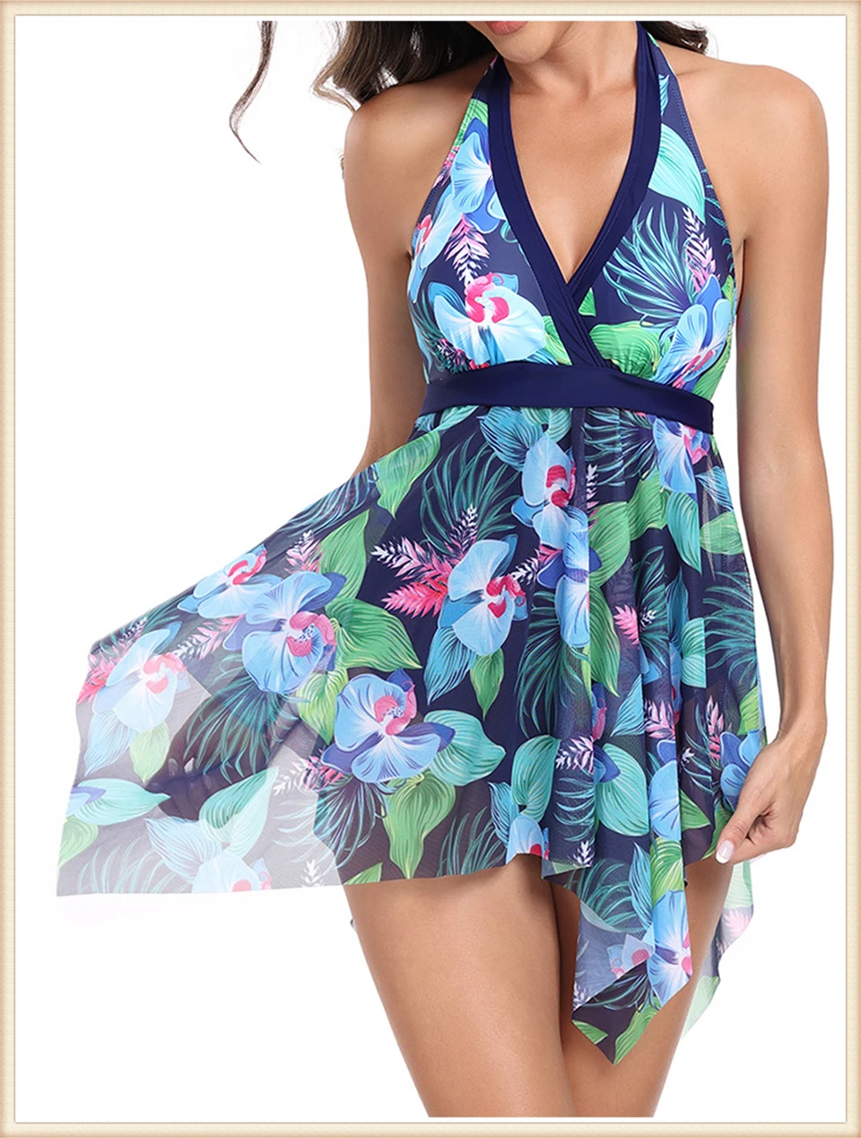 Fashion Floral Print One Piece Swimsuit Beach Dress for women