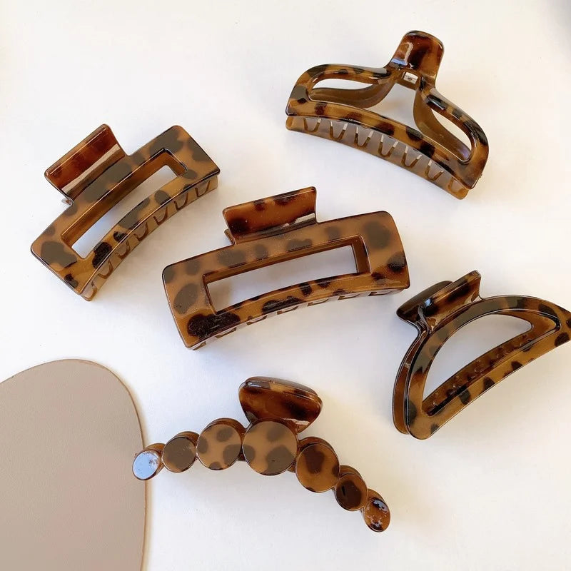 Fashion Hair Clips for Girls Plastic Leopard Claw Clip Elegant Geometry Shape Women Hair Clips Hair Accessories New Hair Claw
