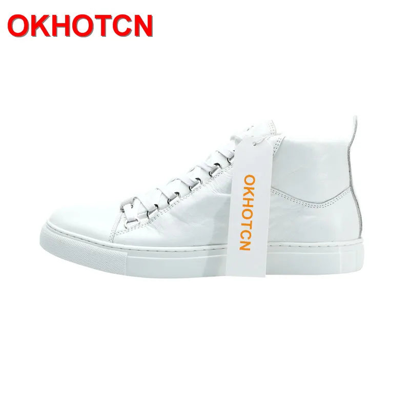 Fashion Men'S Casual Shoes Lace Up Height Increasing Shoes Men White Leather Sneakers Solid Spring Autumn Moccasin Shoes 2019