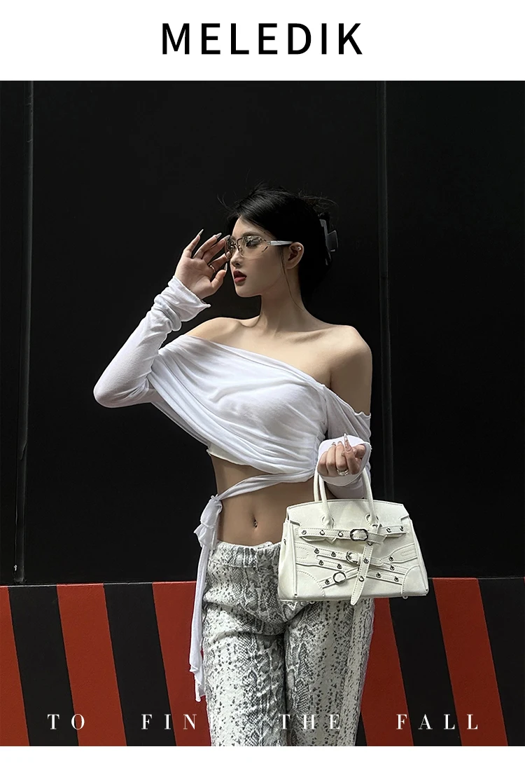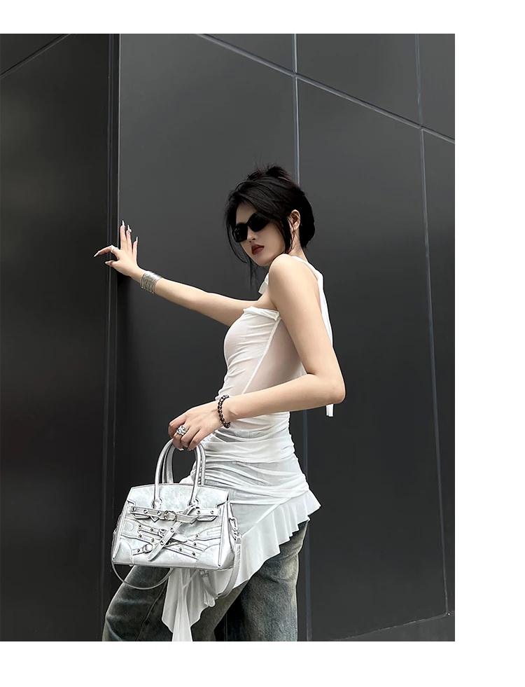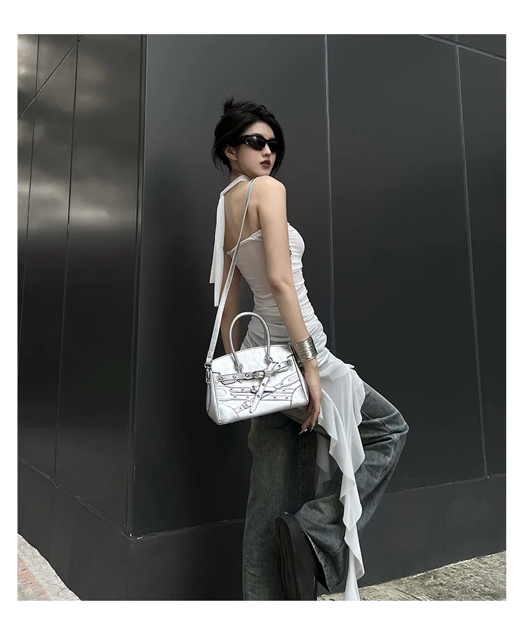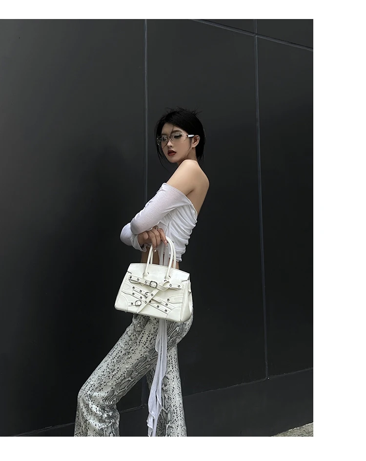 Fashion Punk Hot Girl Style Y2k Locomotive Tote Bags Classic Street Women Shoulder Crossbody Bag Leather Black Women Handbags