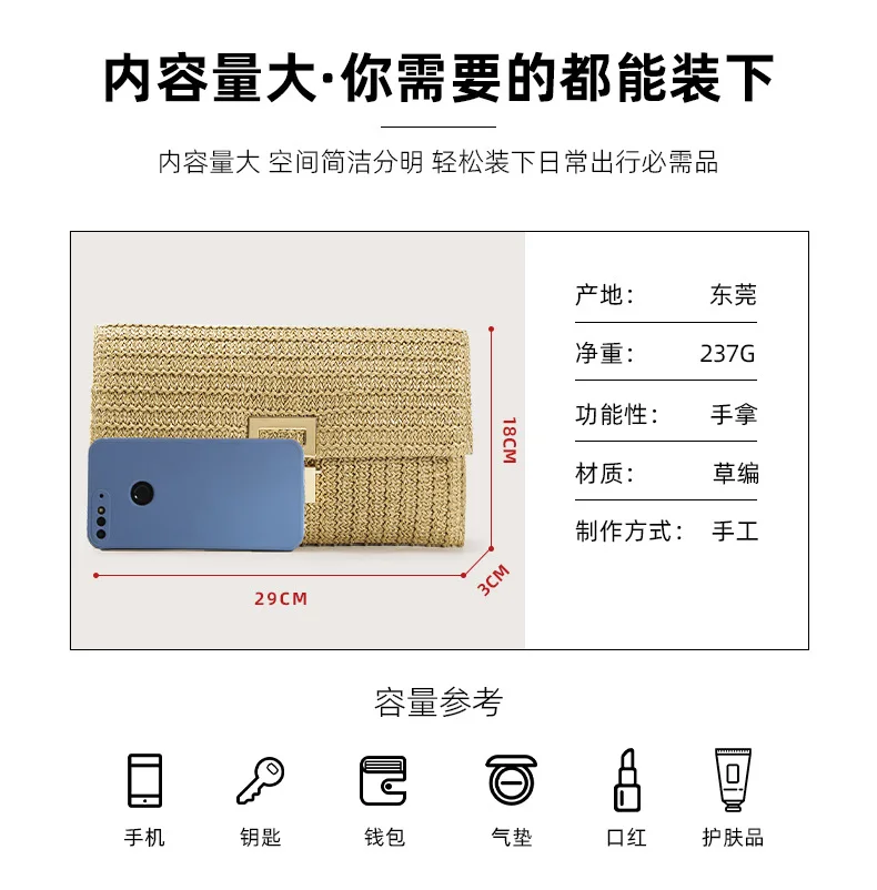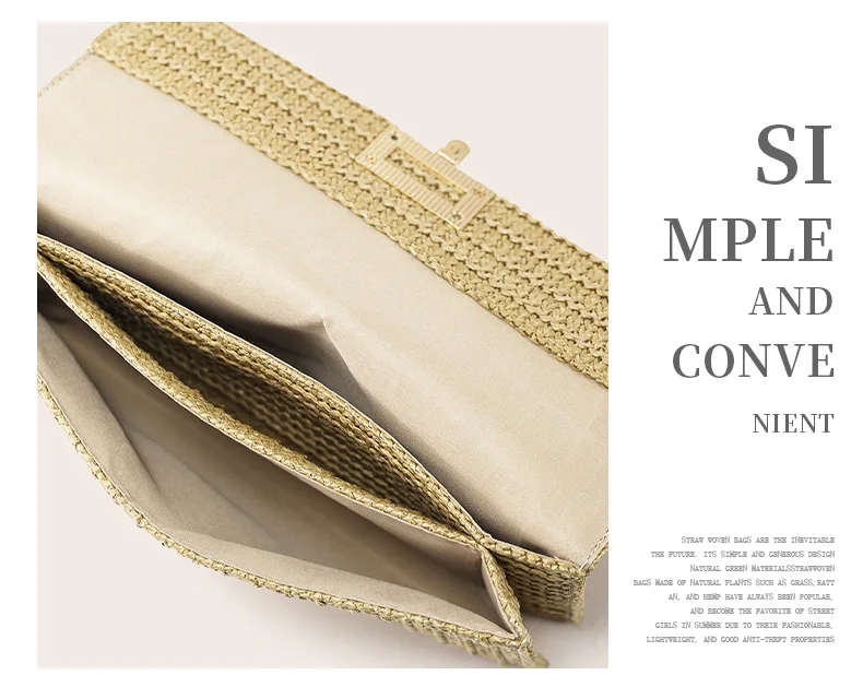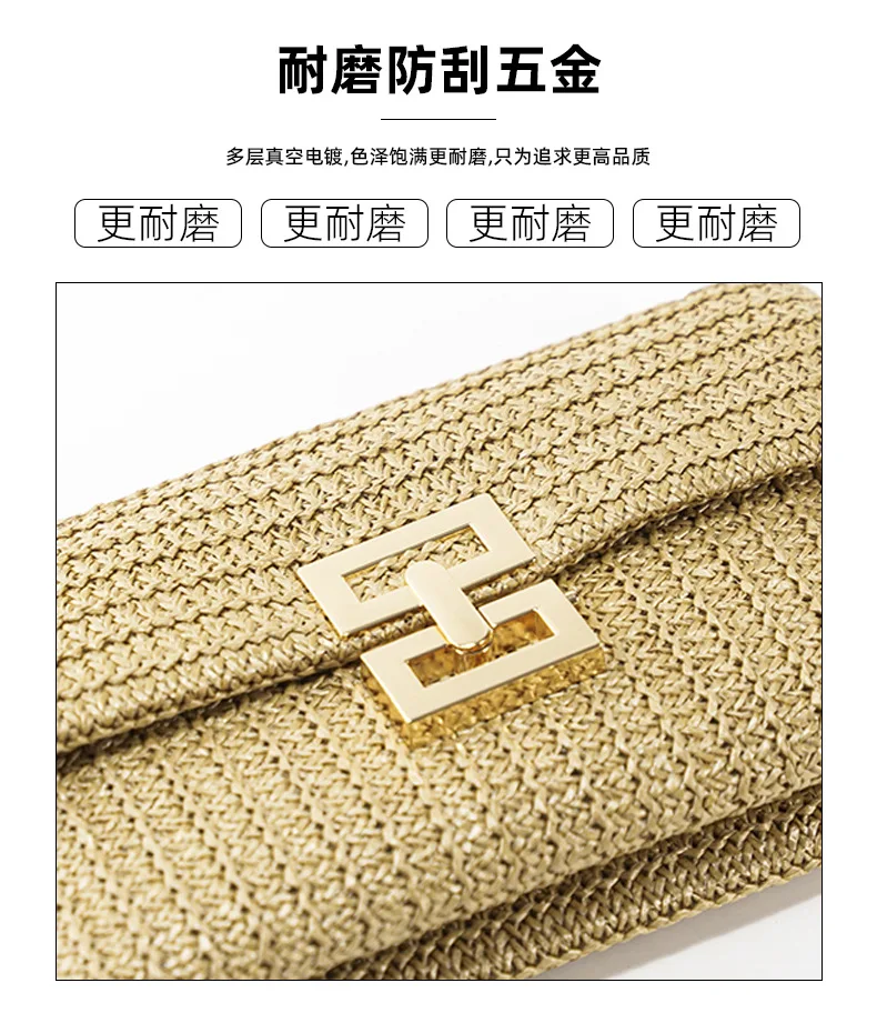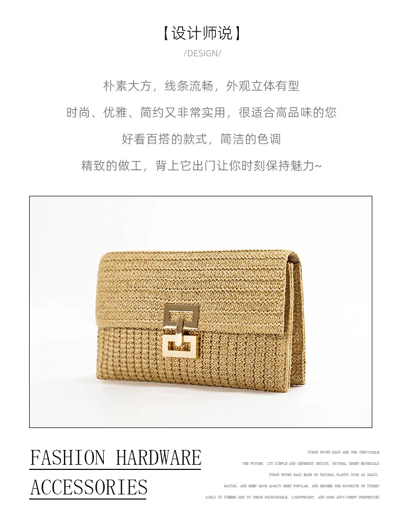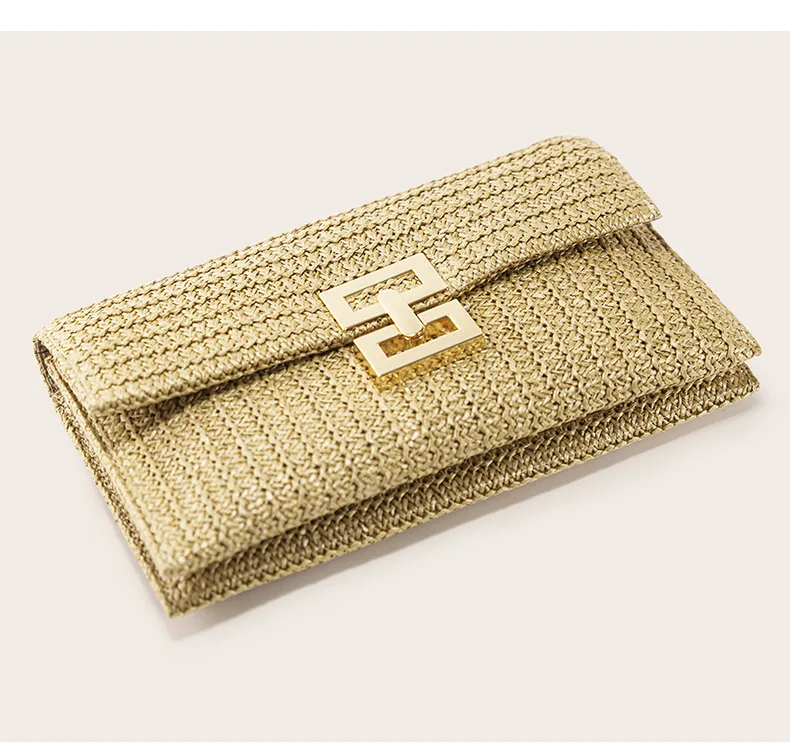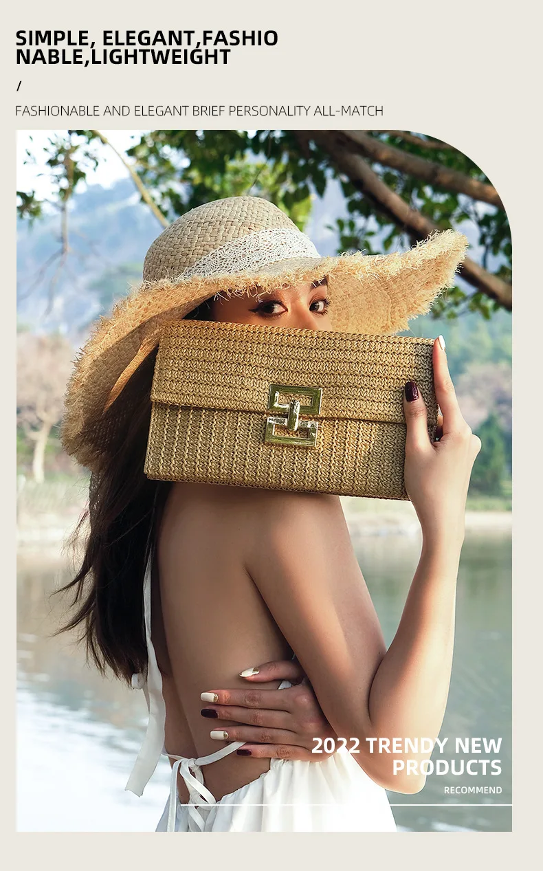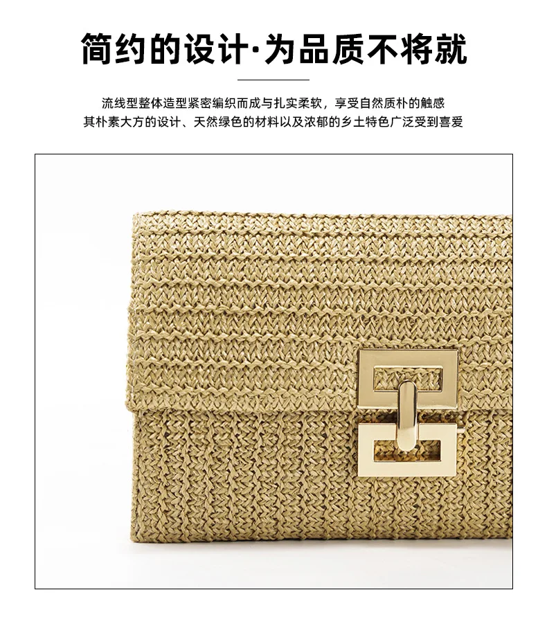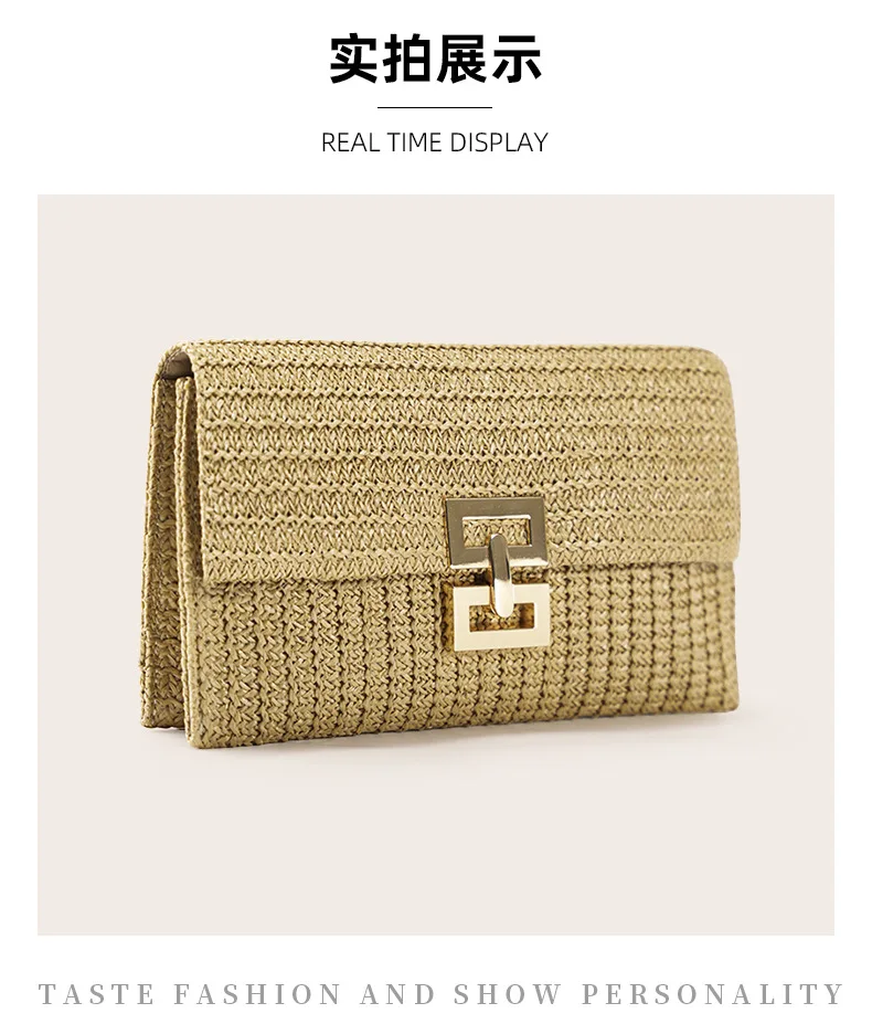 Fashion Straw Clutch Bag for Women Lock Box Paper Woven Bag Casual Summer Beach Bag Bali Travel Handbags Female Purses 2023
