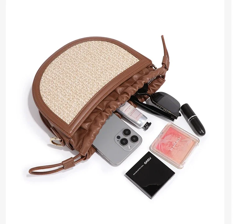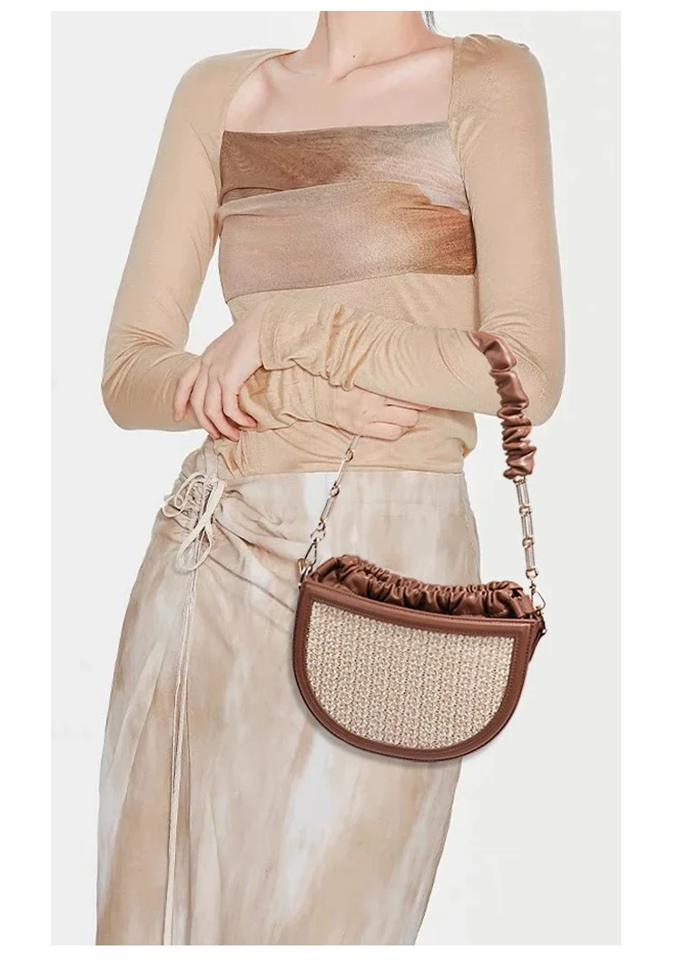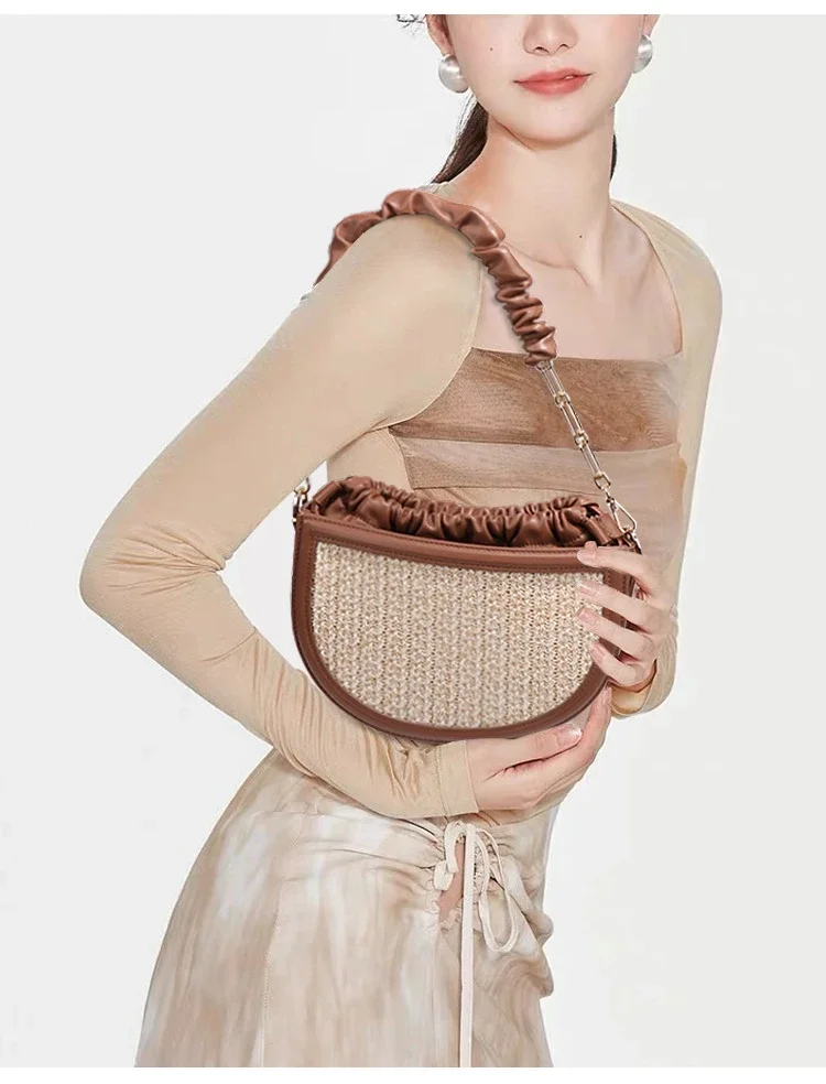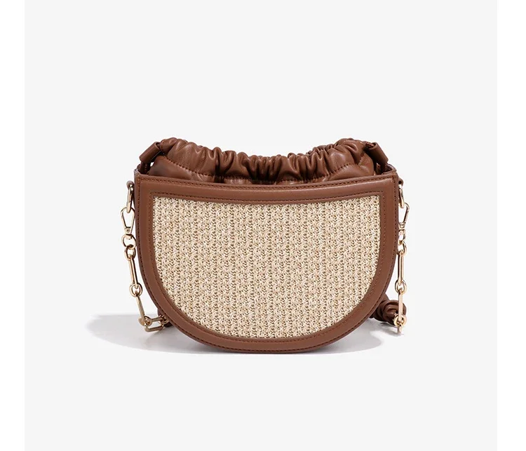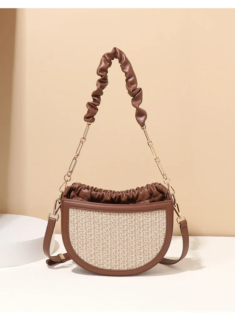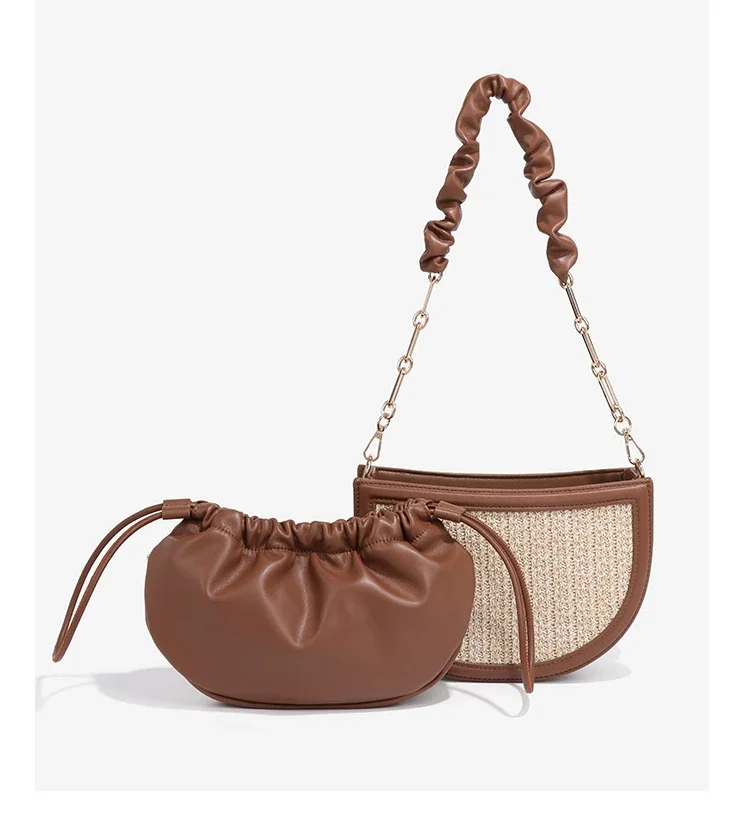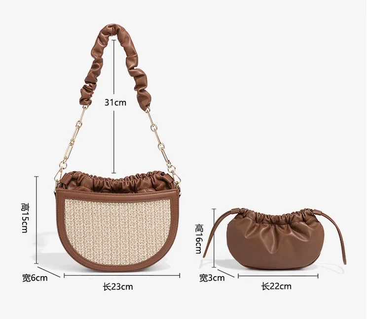 Fashion Straw Women Shoulder Bag Designer Female Composite Handbags Handamde Woven Summer Beach Bag Chain Small Purse 2024