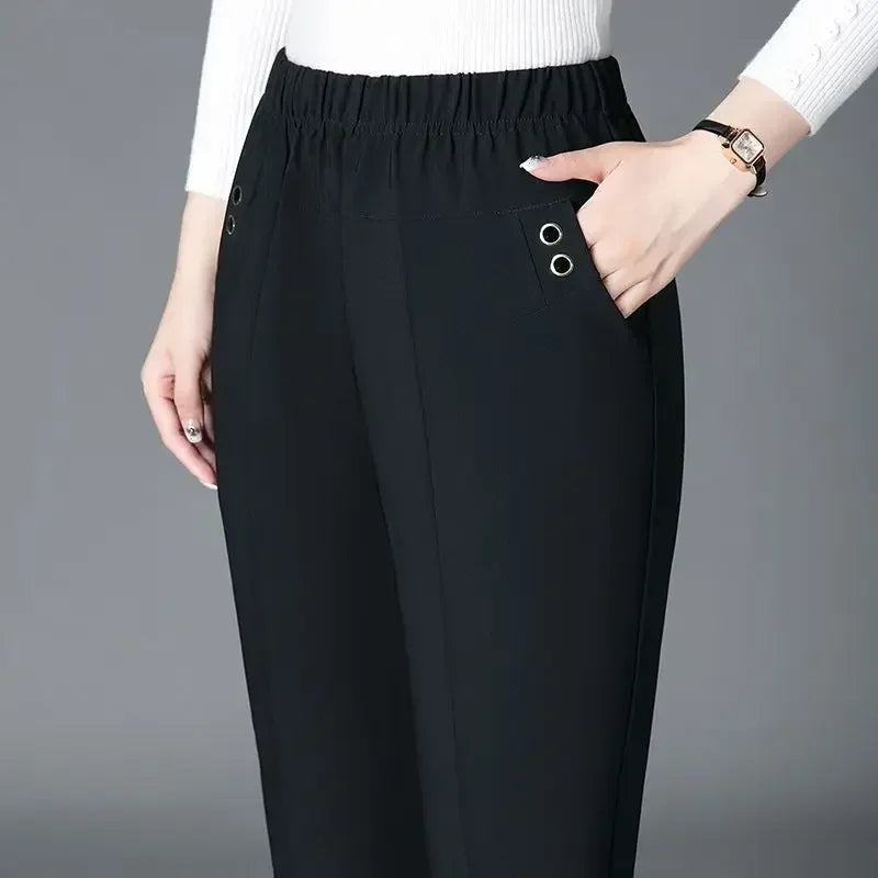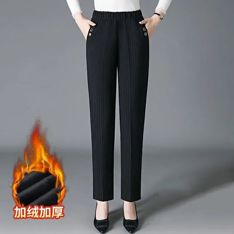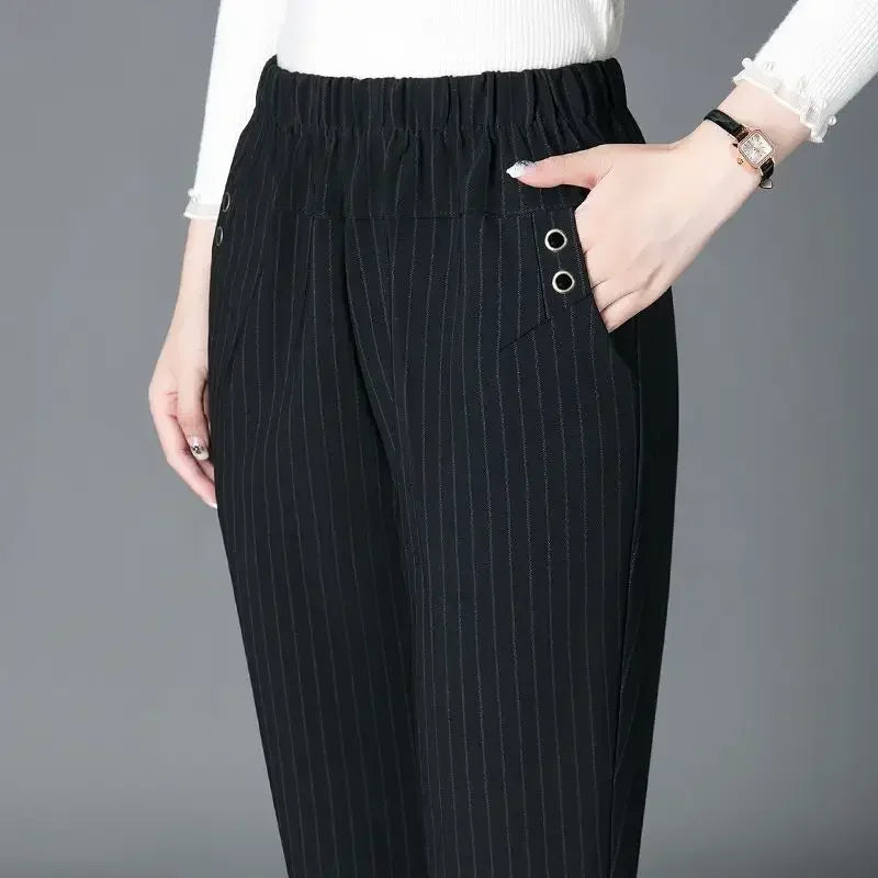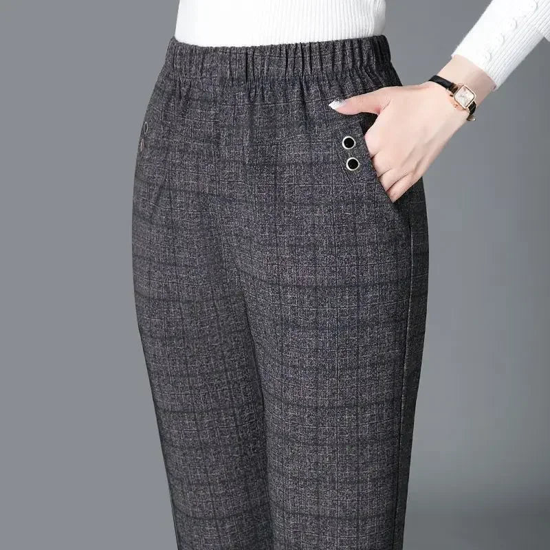 Fashion Women Vintage Slim Pants Spring Autumn Streetwear New Elastic High Waist Stripe Plaid Straight Casual Trousers Z817