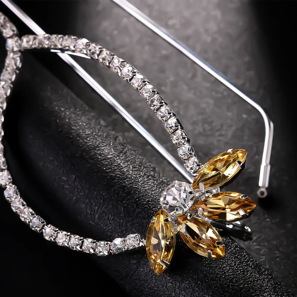Fashion Yellow Crystal Flower Sunglasses Frame Face No Lens Party Gift Exquisite Lady Oval Rhinestone Eyewear Frame Prom Jewelry