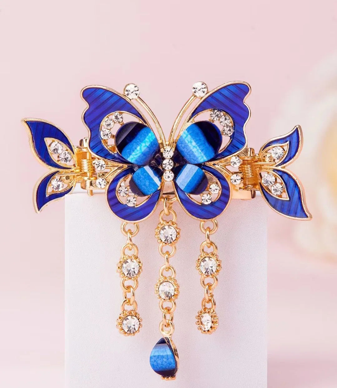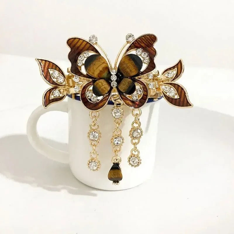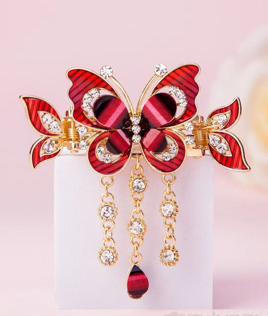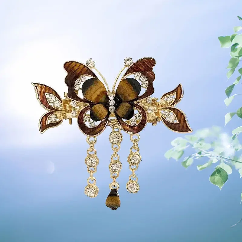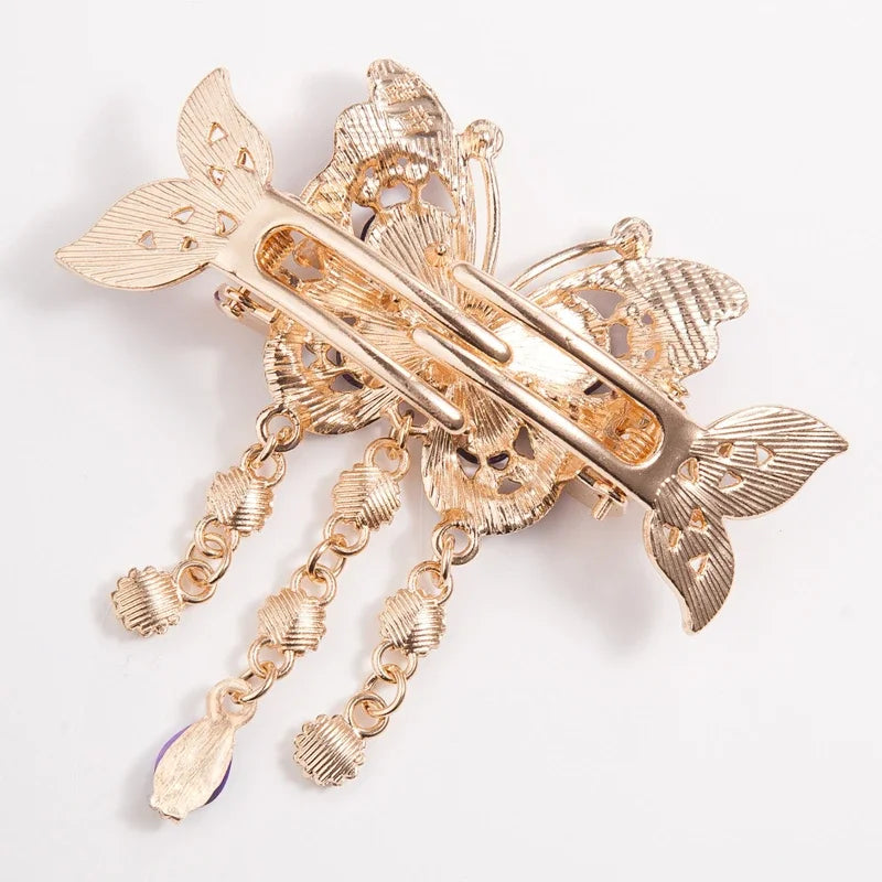 Fashion Zircon Butterfly Tassel Hairpin Accessories for Women Retro Ethnic Style Small Crab Clip Headwear Hair Clips for Girls
