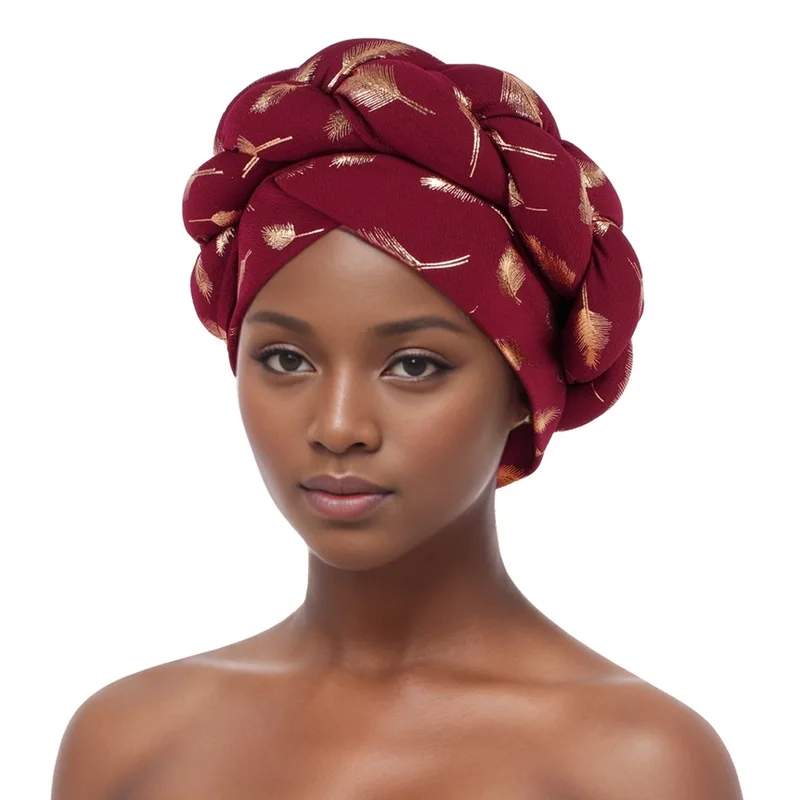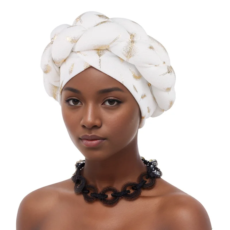 Feather Braid Turban Caps for Women Headwear Headscarf Bonnet Female Head Wraps African Indian Hat Turbante Mujer
