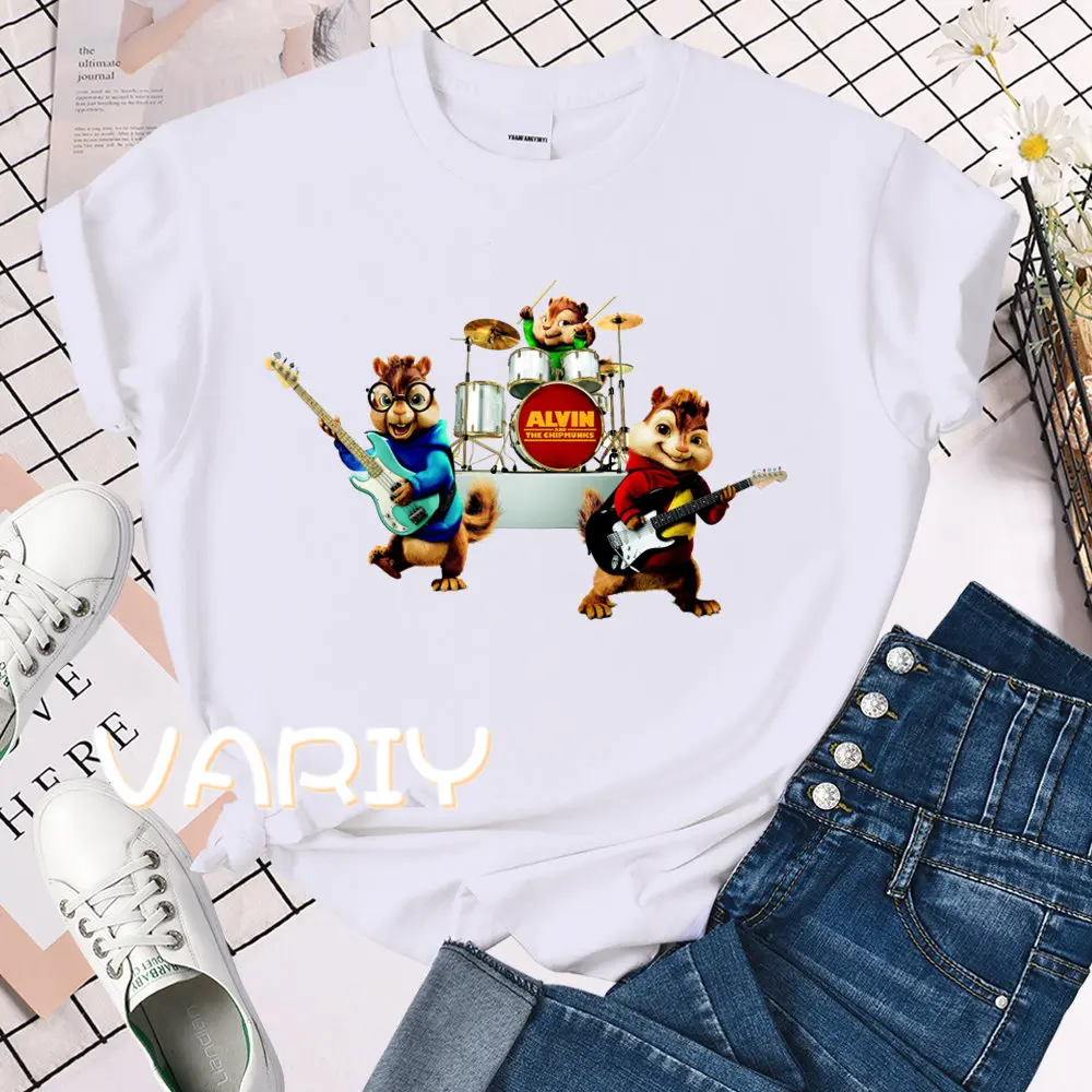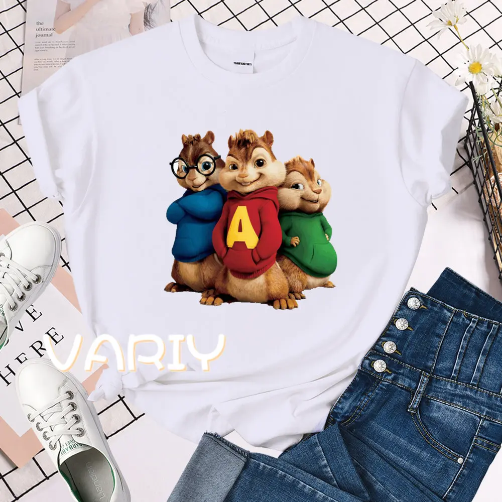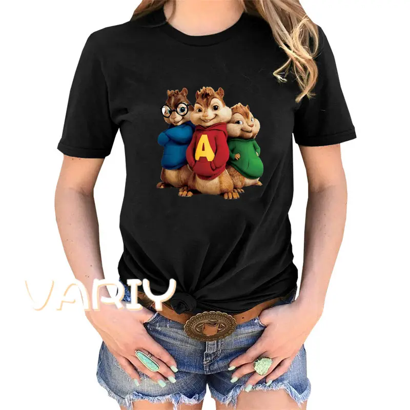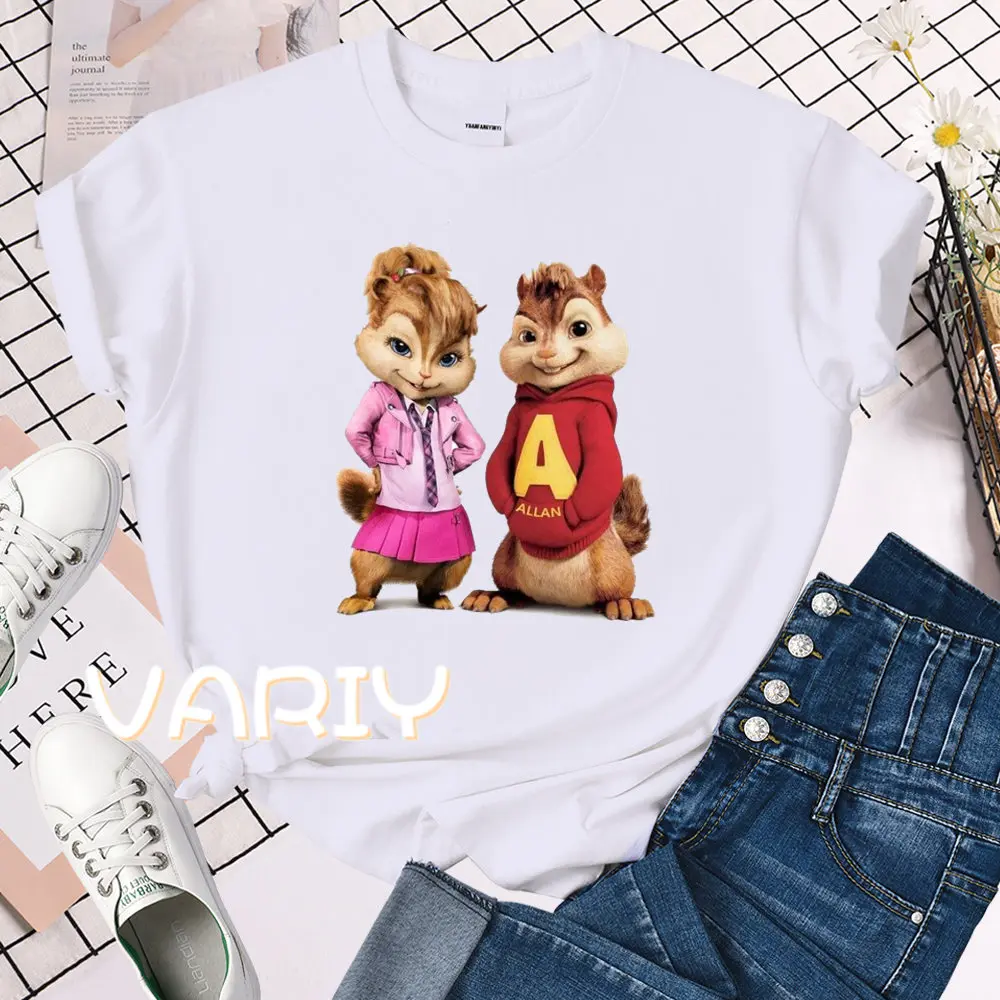 Female Alvin and the Chipmunks Printing O-neck Short Sleeve T-Shirt 2025 New Summer Trend Loose Top Tee Shirt Women Clothes