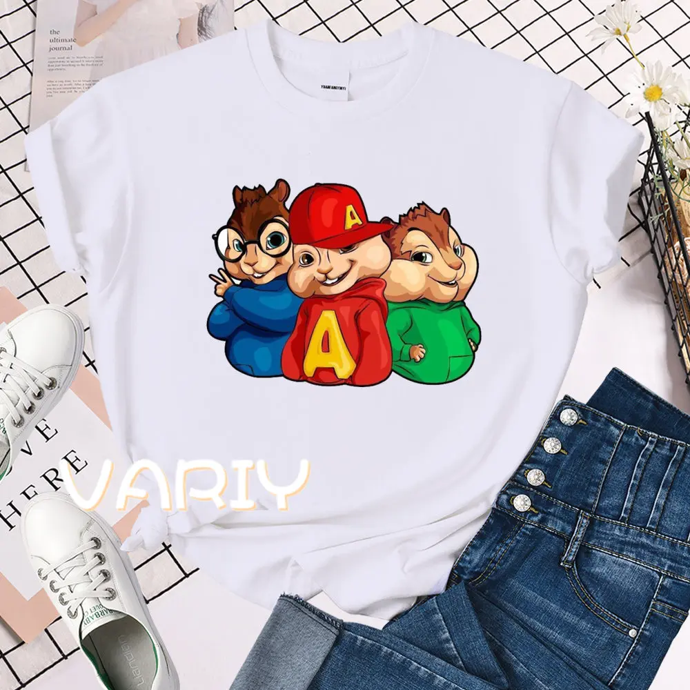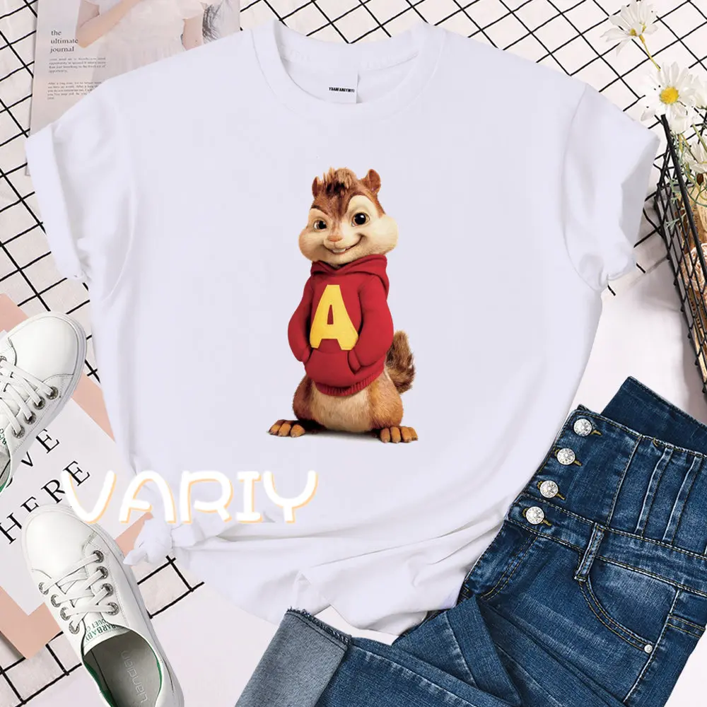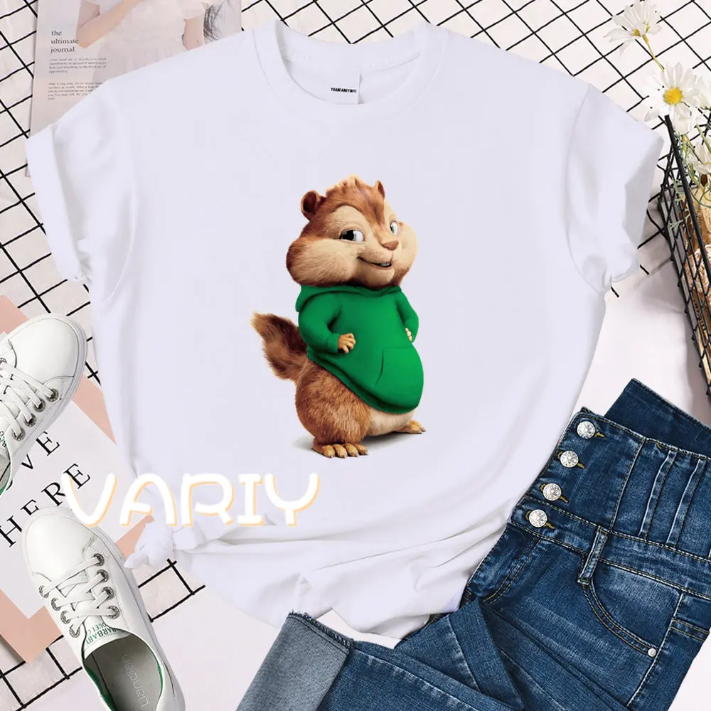Female Alvin and the Chipmunks Printing O-neck Short Sleeve T-Shirt 2025 New Summer Trend Loose Top Tee Shirt Women Clothes