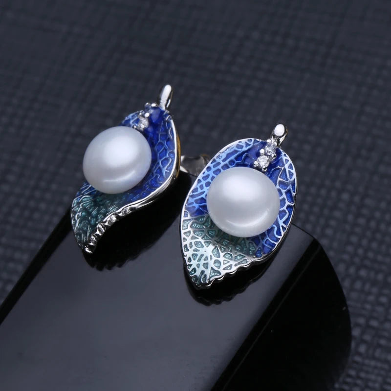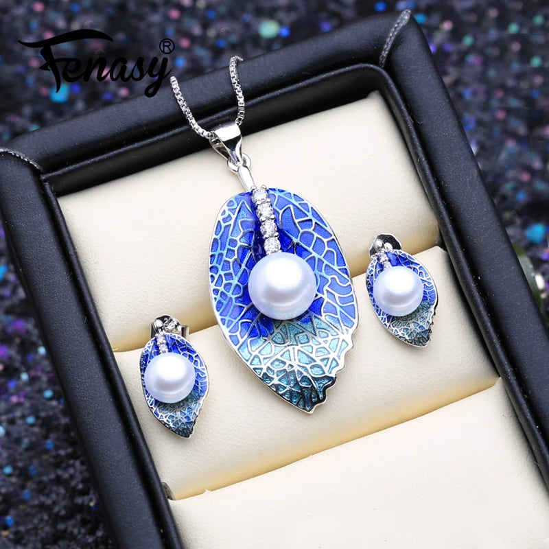 FENASY 925 Sterling Silver Jewelry sets Pearl Stud Earrings Natural Pearl Leaf Necklaces For Women