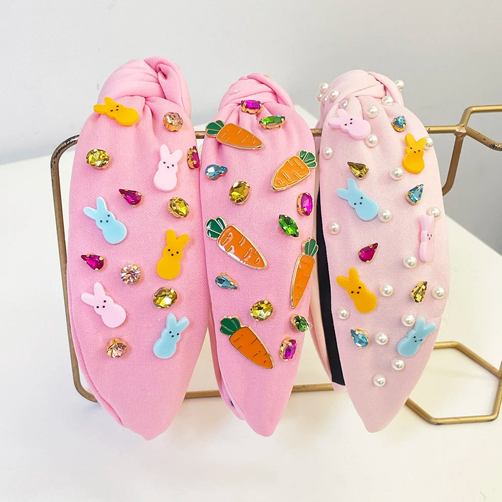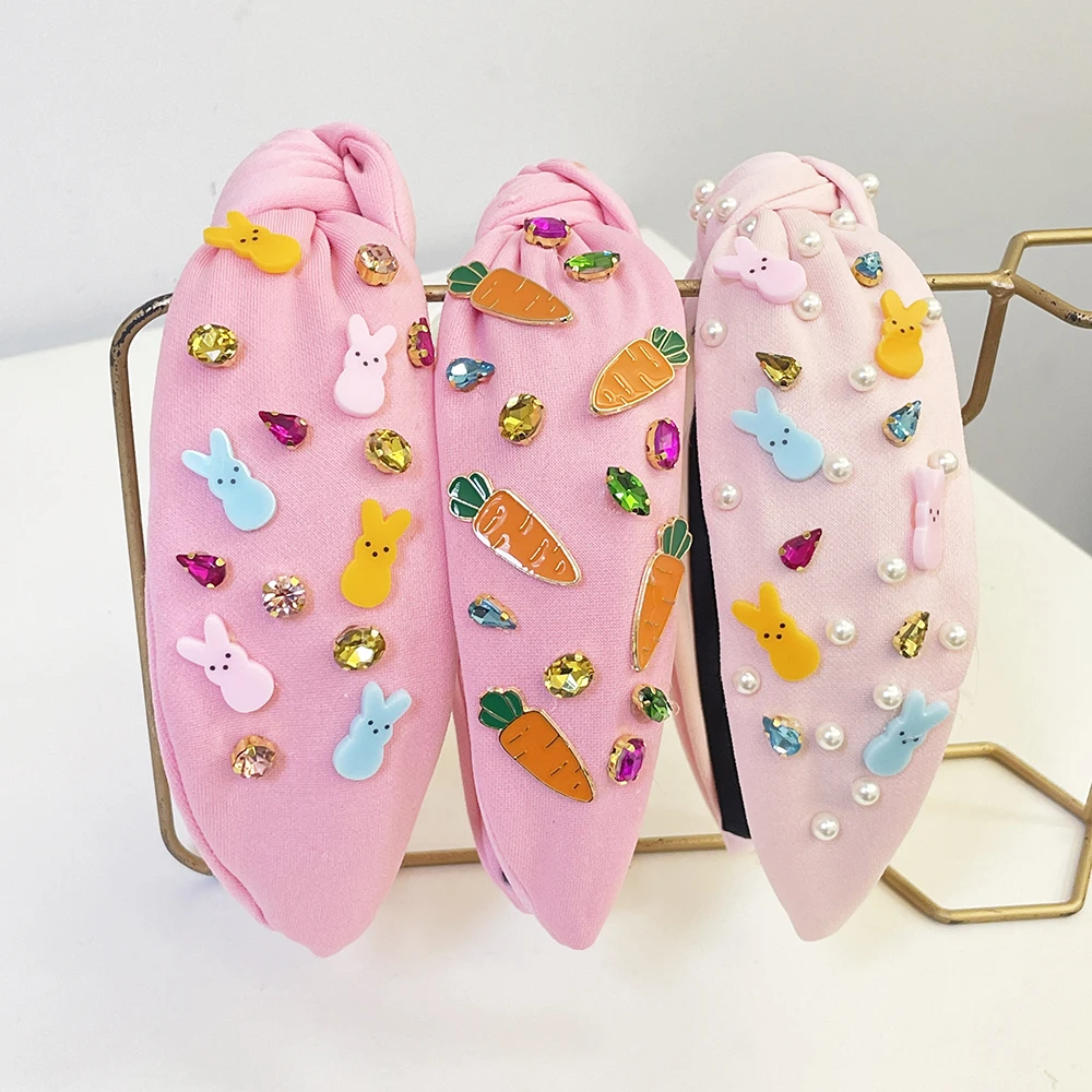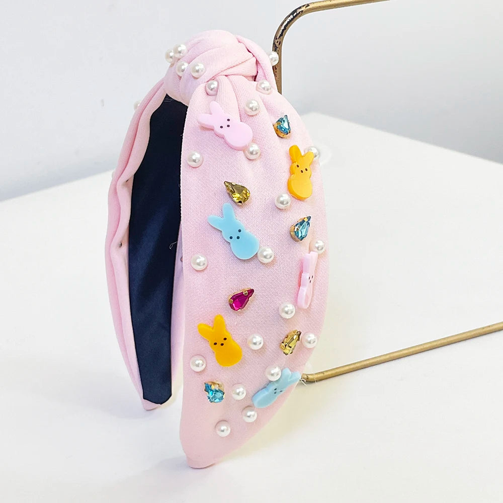Festival Easter Rabbit Rhinestone Pearl Knot Hairband Headband Adult Hair Accessories Hair Jewley