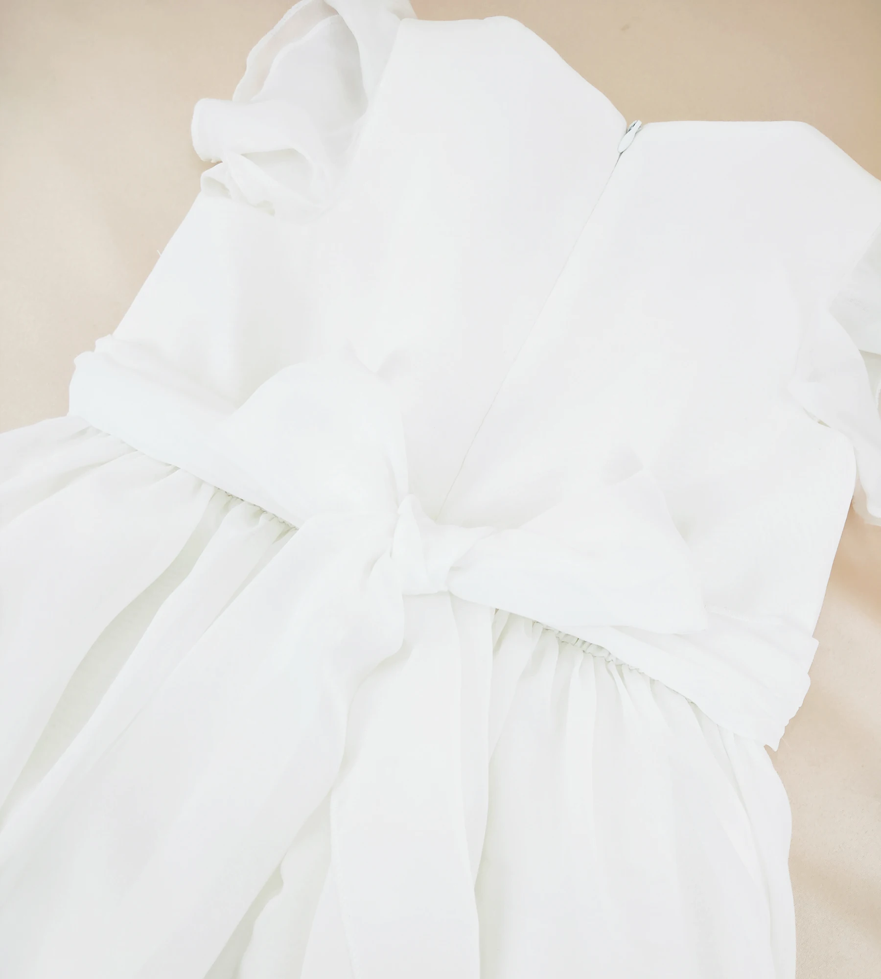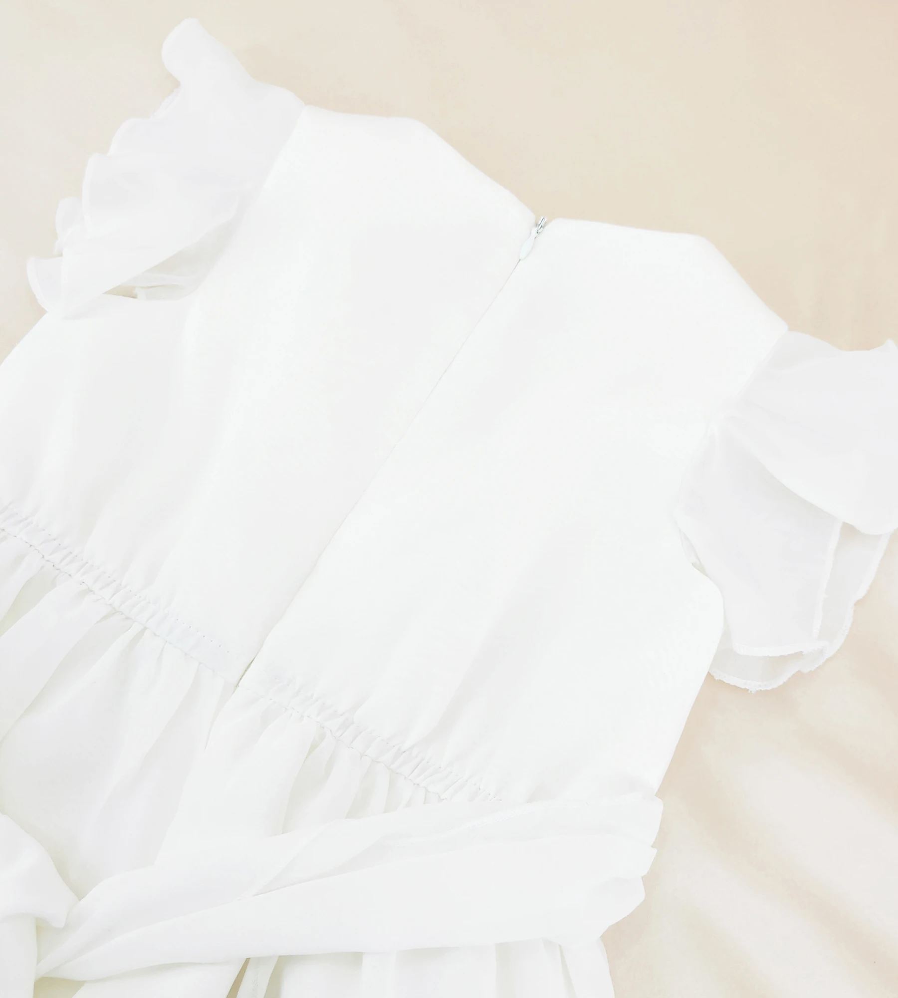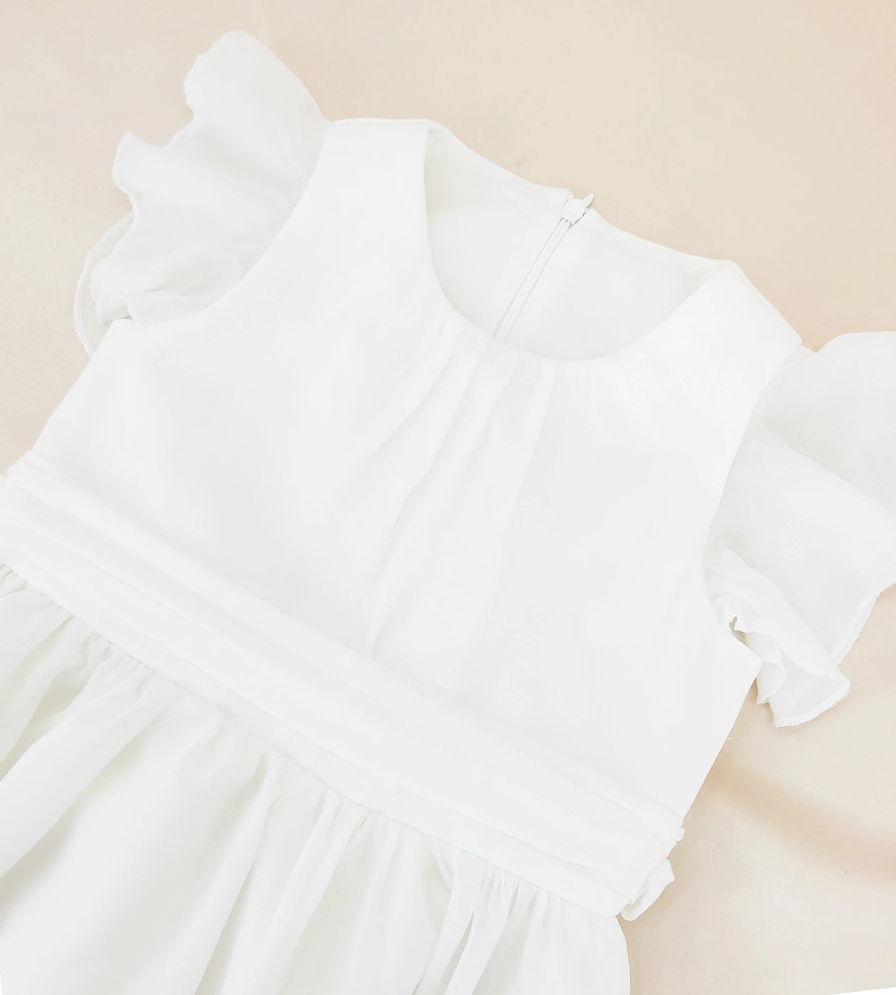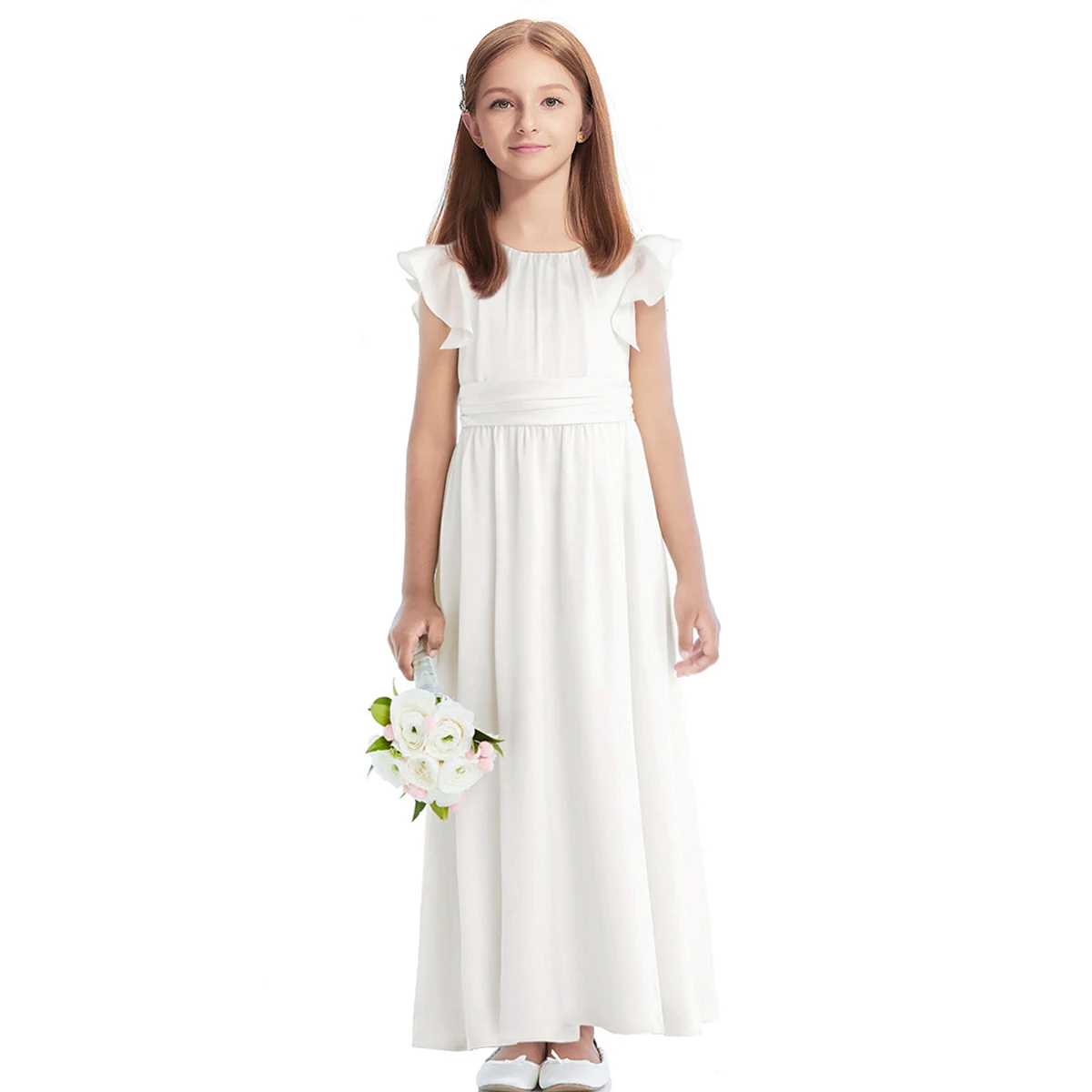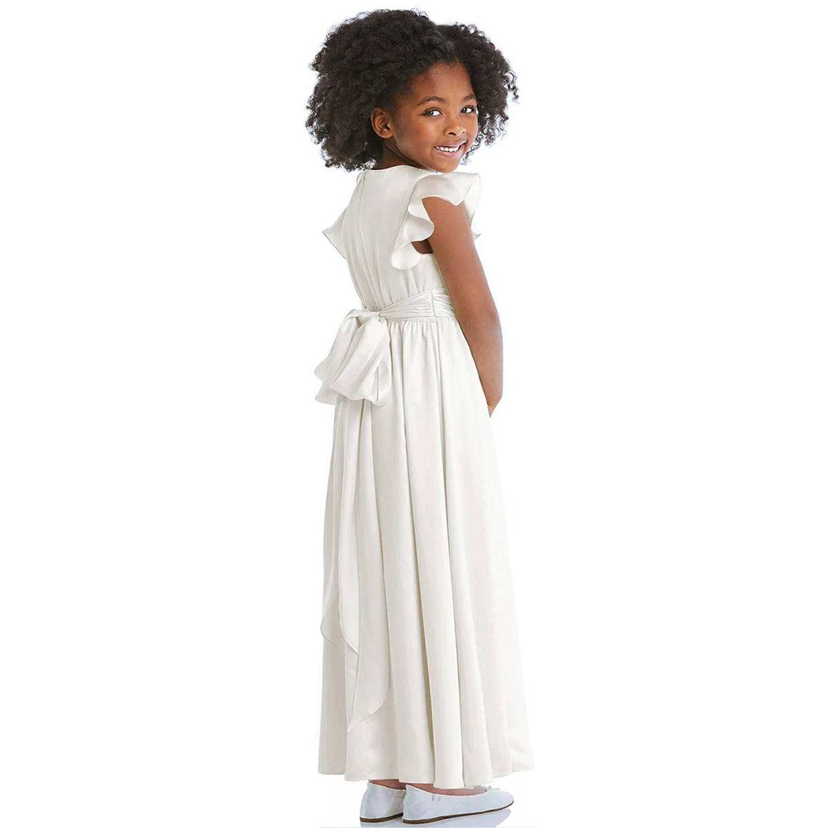 Flower Girl Dresses Flutter Sleeves Tulle Princess Ankle Long Gown Baby Christmas Wedding Party Gown Kids Clothing TD2327