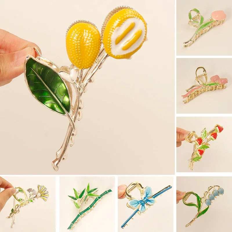 fresh Durian Metal Hair Clip Hair claws fruit oil drop flower Personality Fruit Funny Hair Claw Hairpin for Women Girls Headwear
