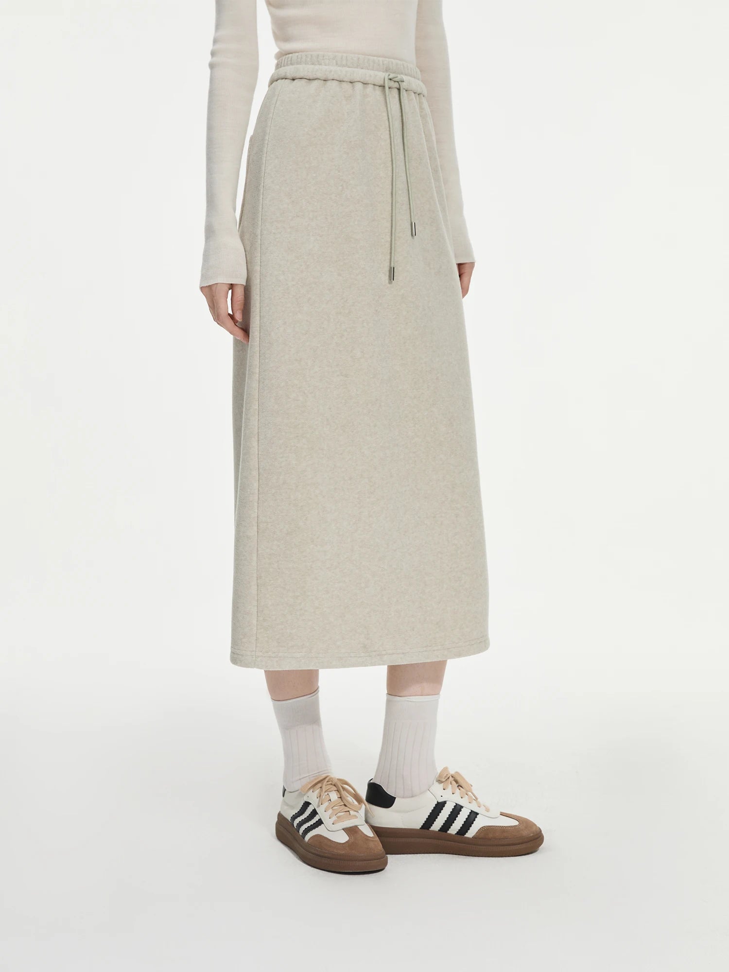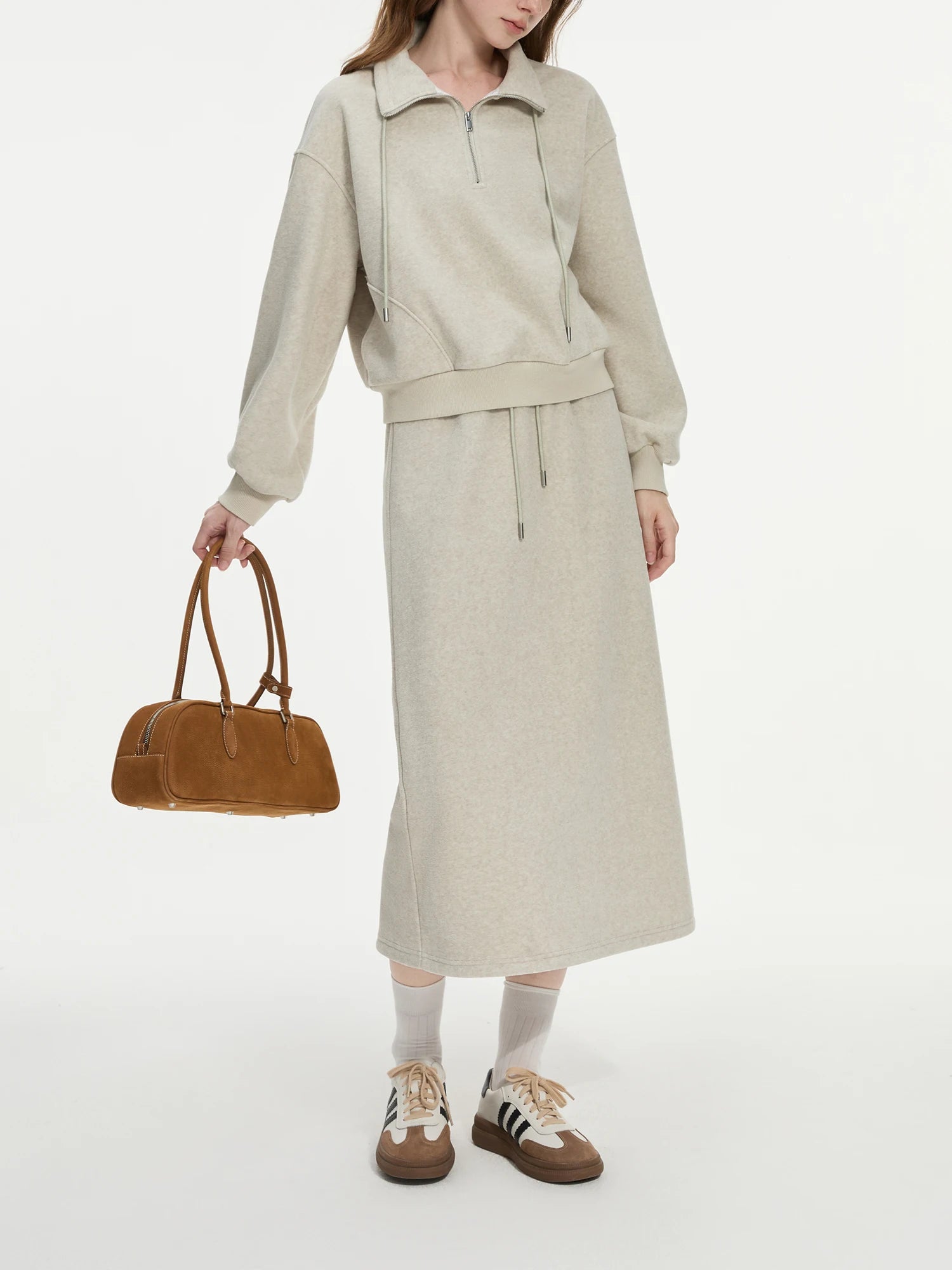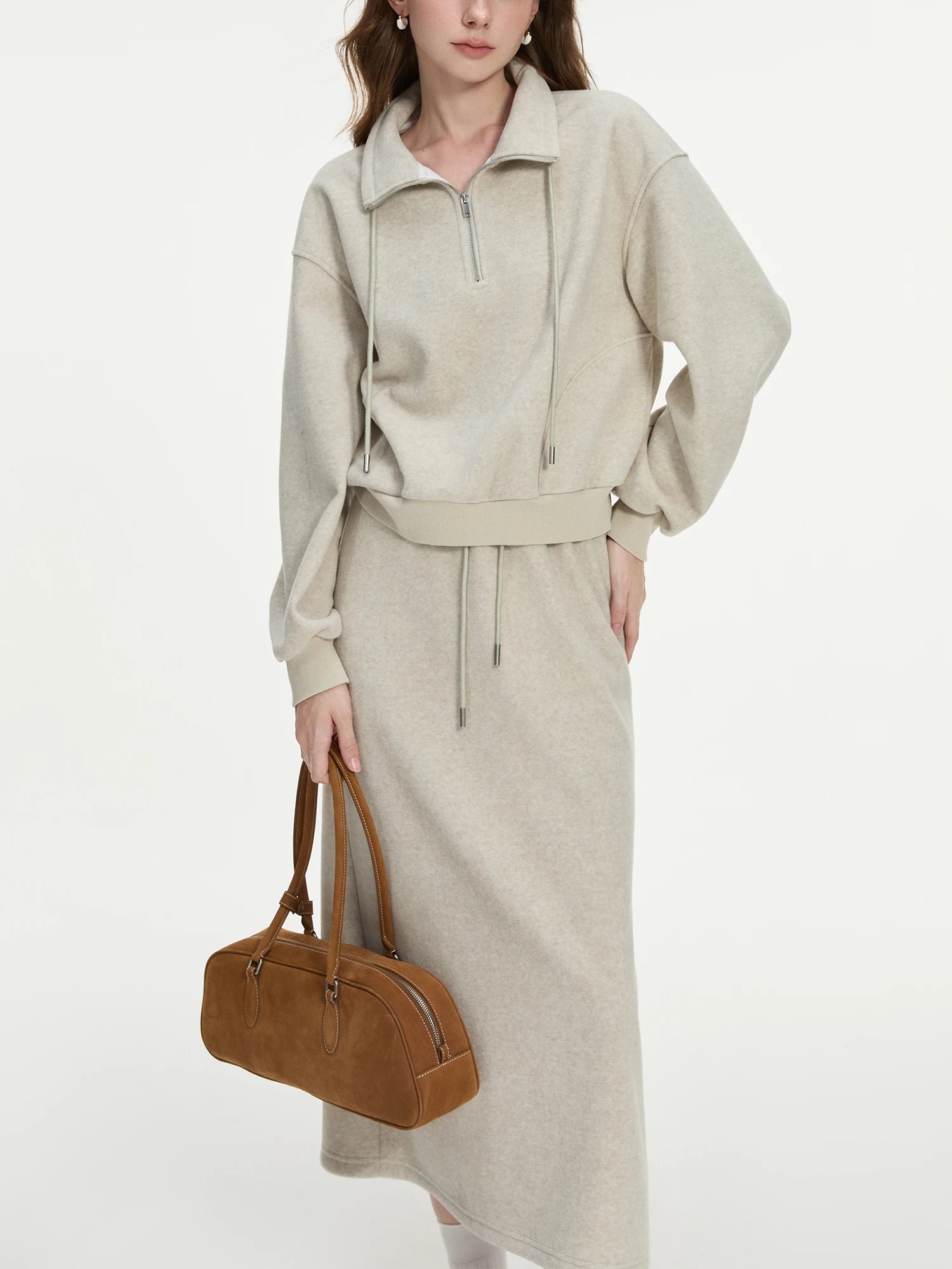 FSLE Women Sweatshirt Set Winter Thick Grey Commuter Sweatshirts Elastic Waist Long Spilt A-Line Women Skirt 24FS14491+24FS14492