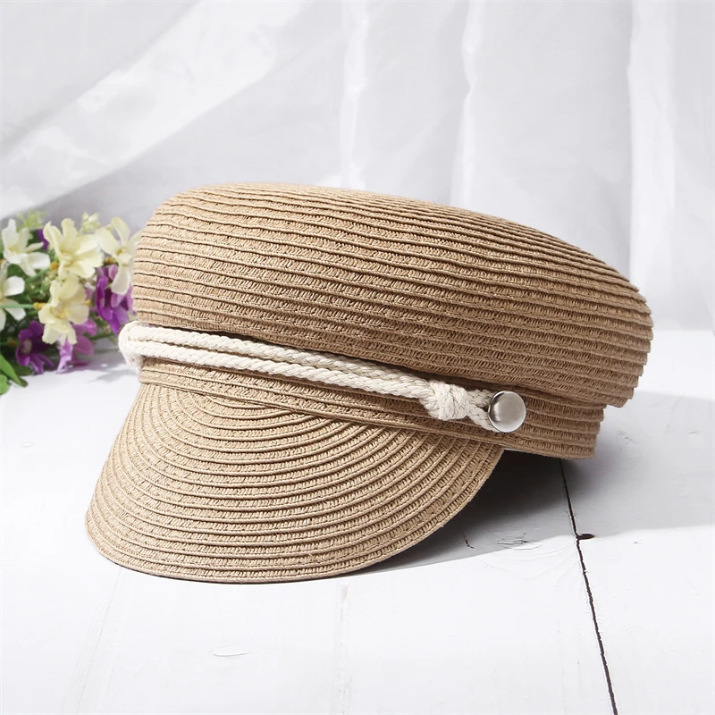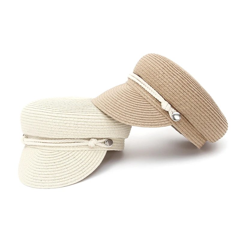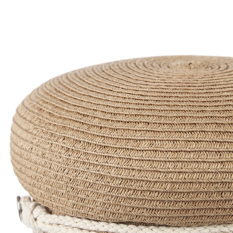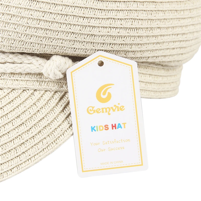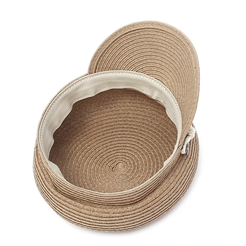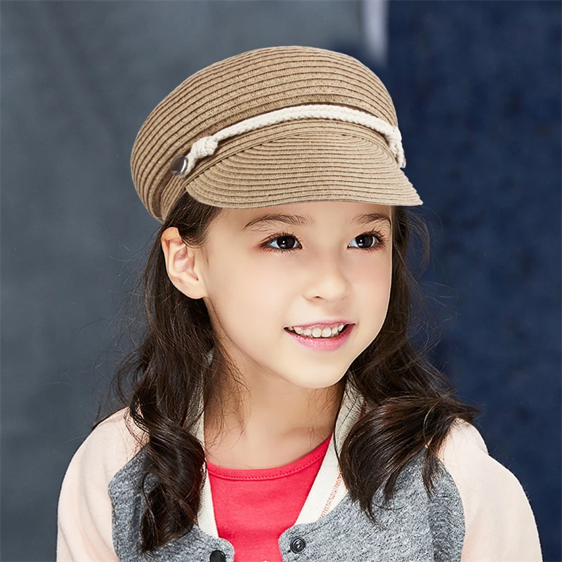 GEMVIE 2024 Fashion Military Hats Outdoor Spring Summer Ring Top Kid Hat Sun Protection Beach Flat Top Straw Hats