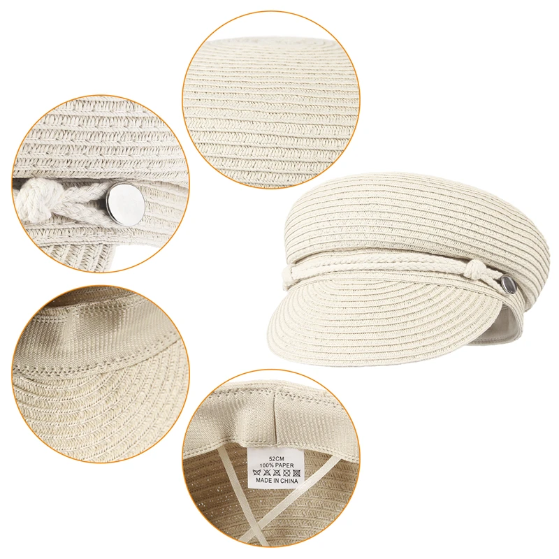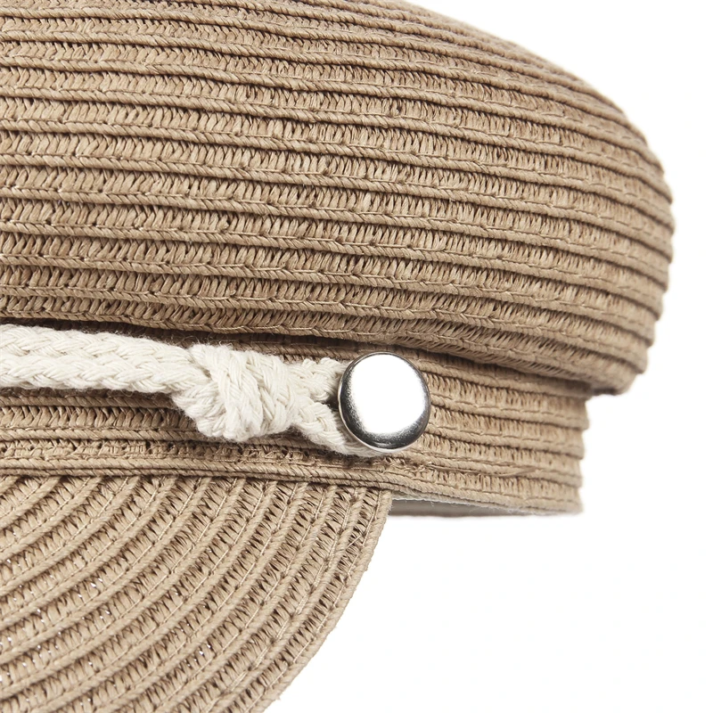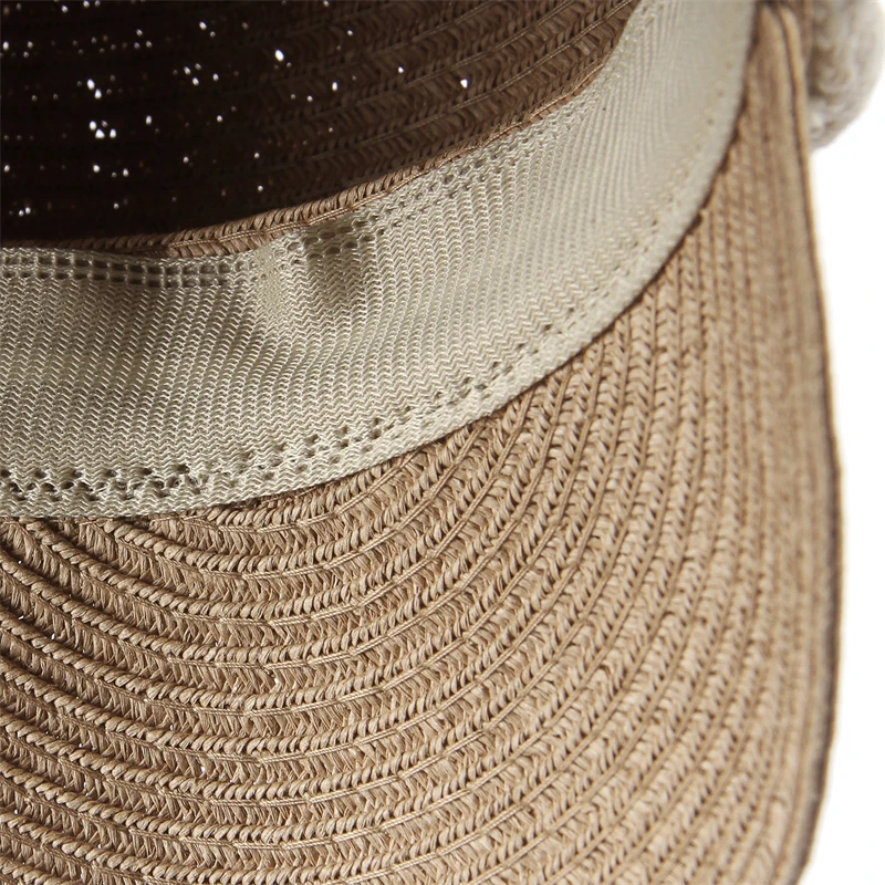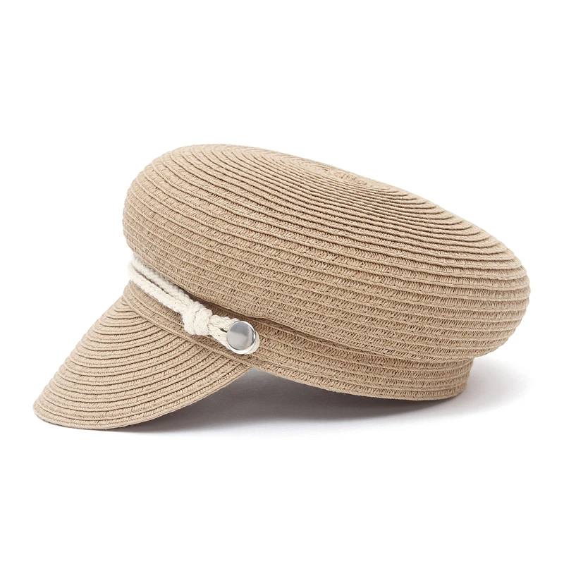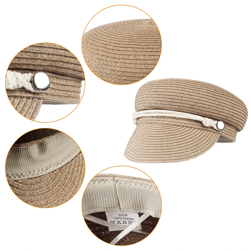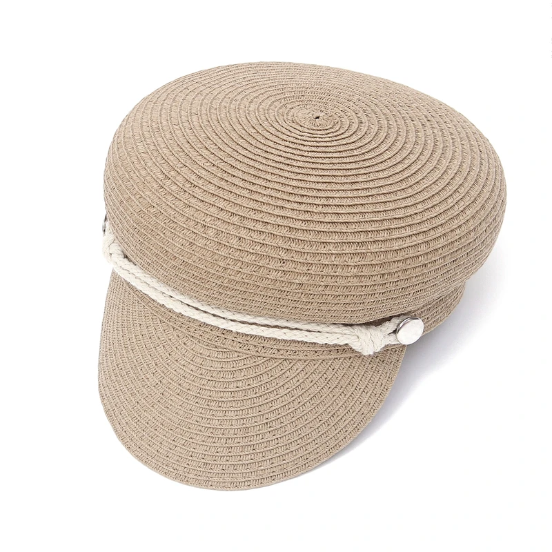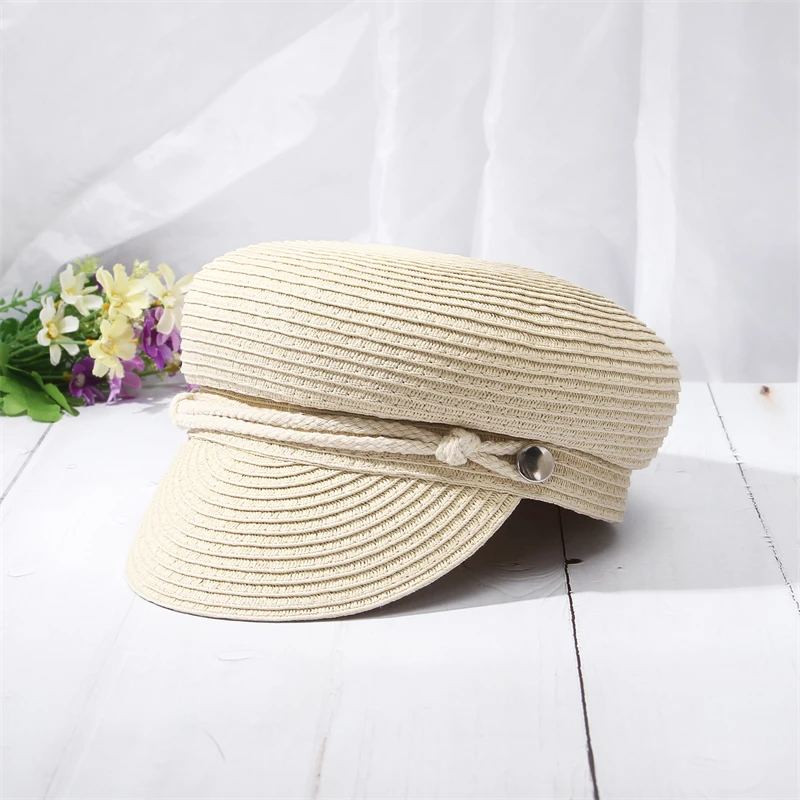 GEMVIE 2024 Fashion Military Hats Outdoor Spring Summer Ring Top Kid Hat Sun Protection Beach Flat Top Straw Hats
