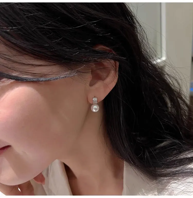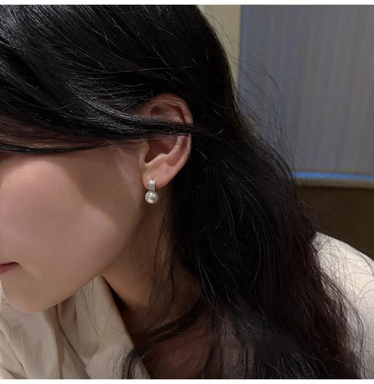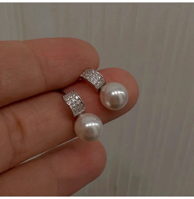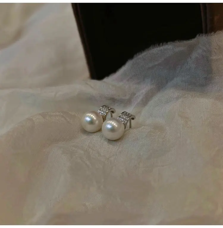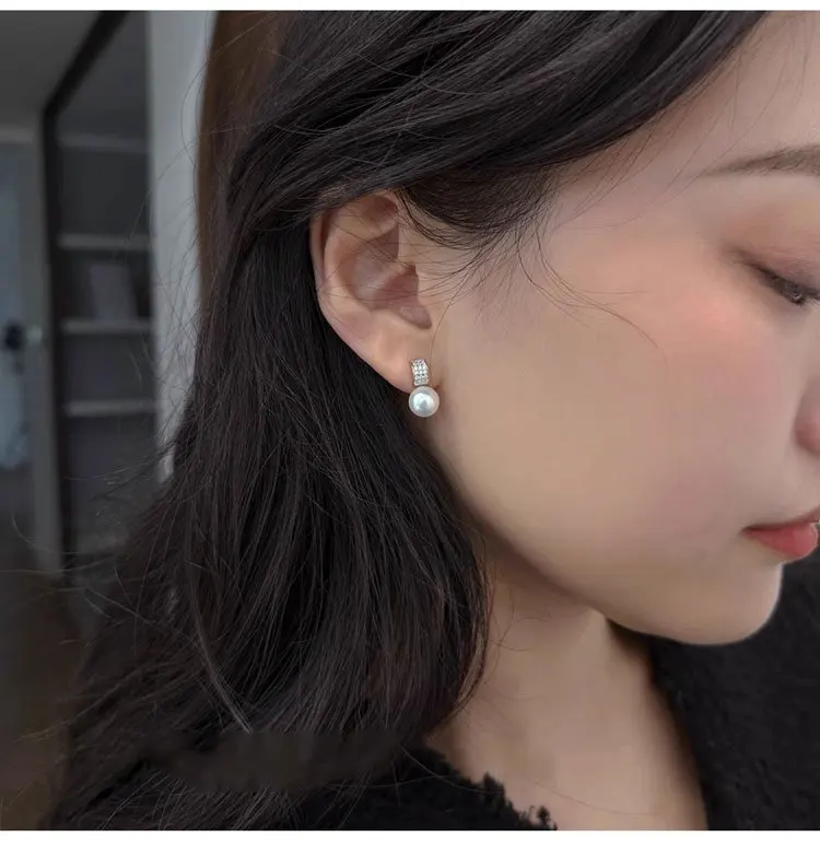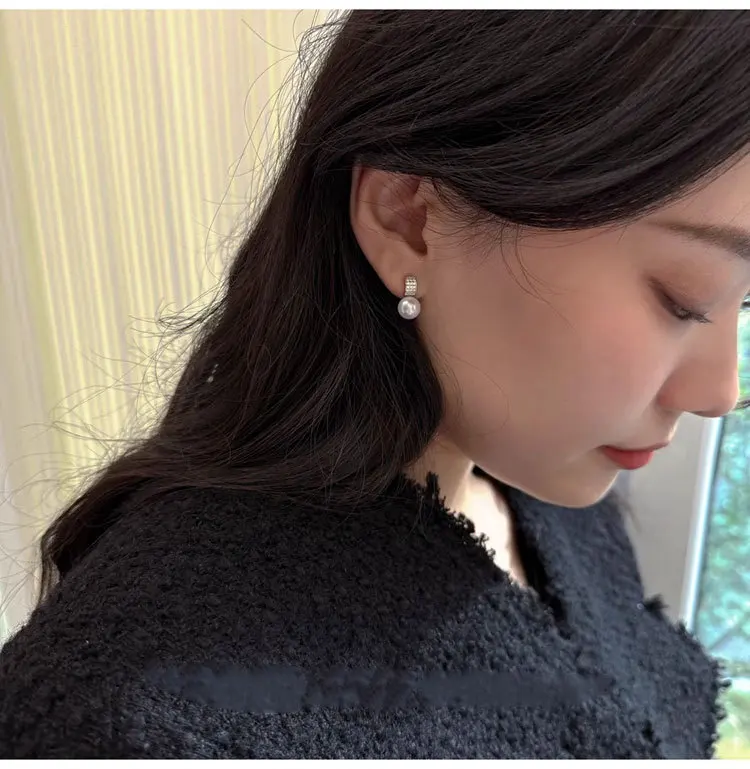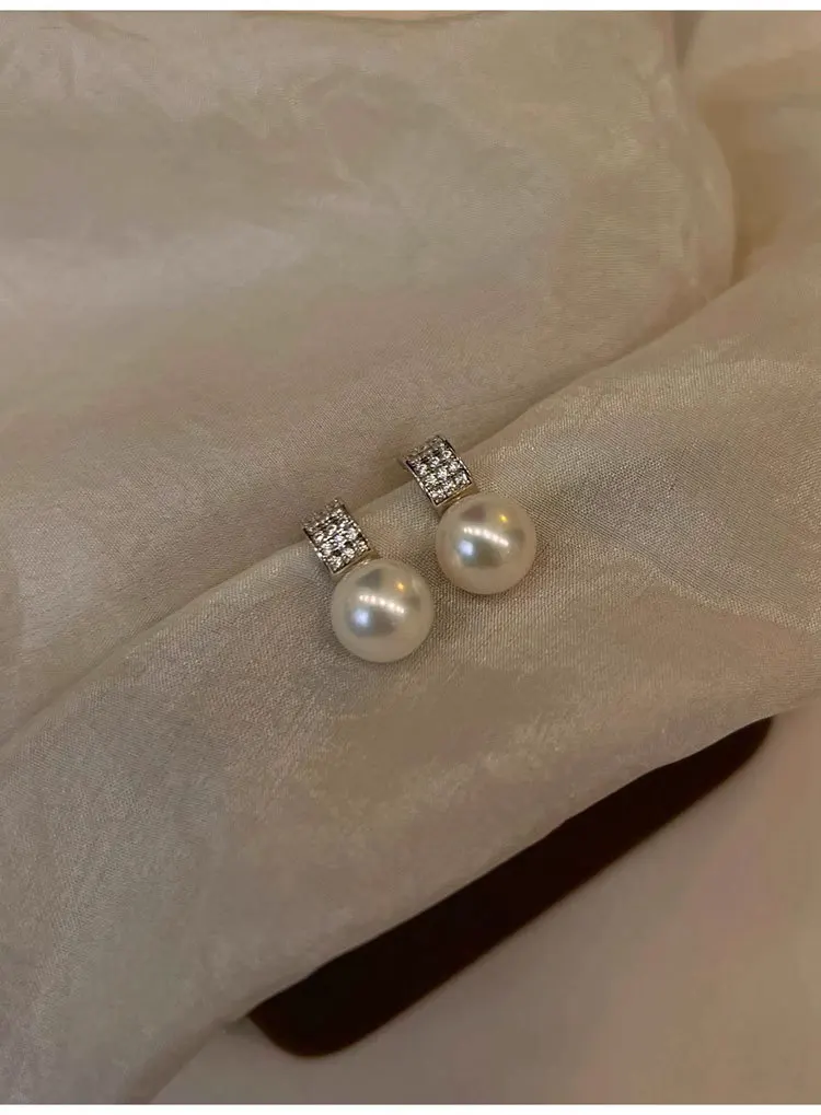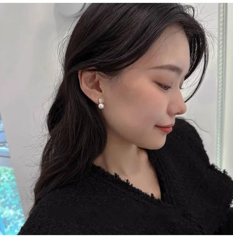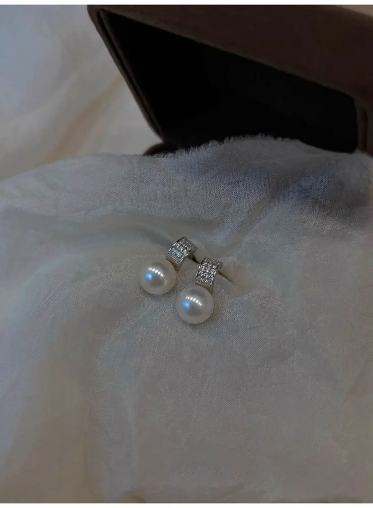 Girls 925 Sterling Silver French Temperament Geometric CZ Pearl Stud Earrings For Women Girls Wedding Party Jewelry