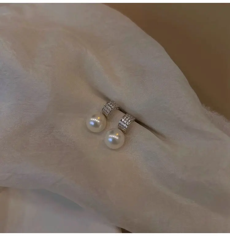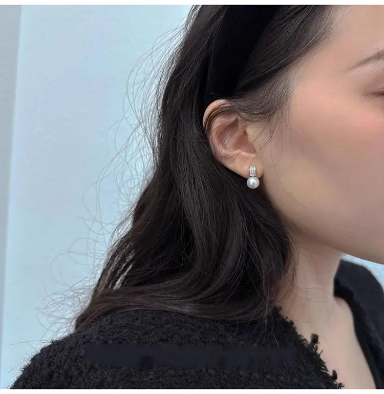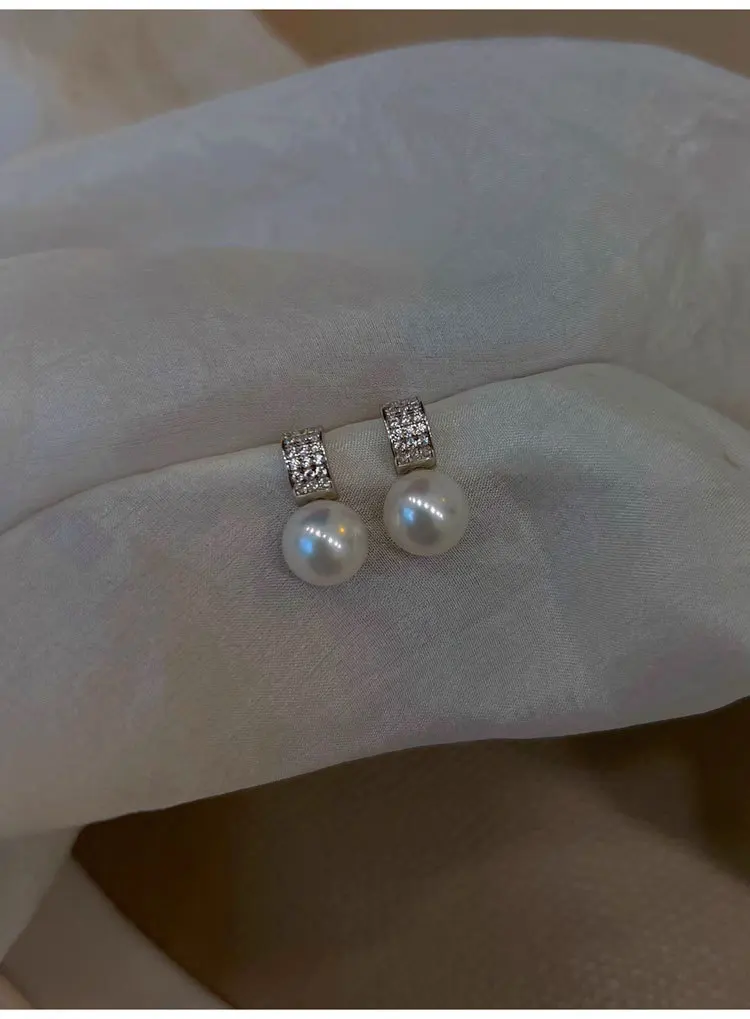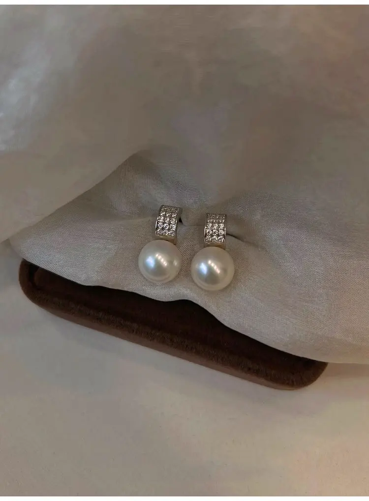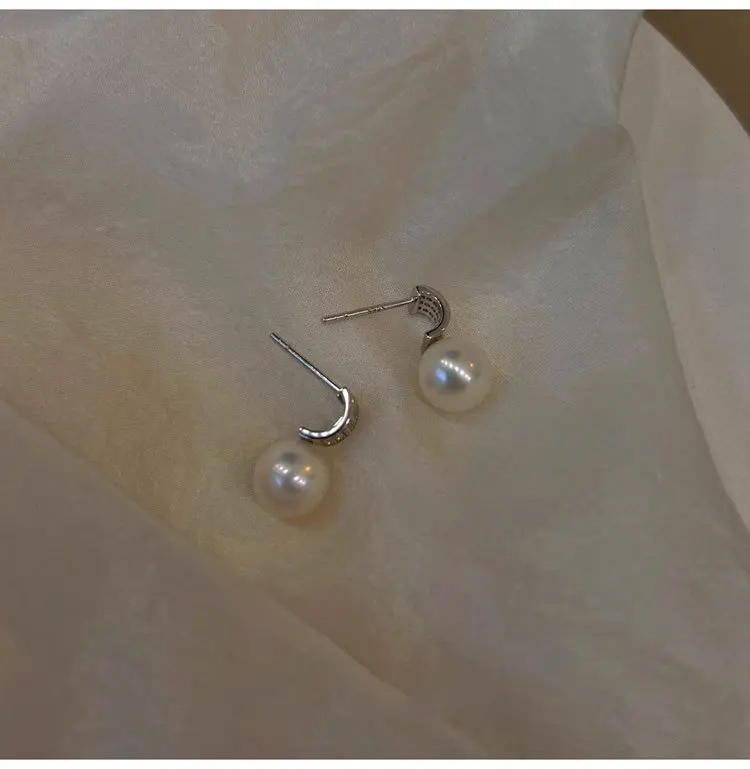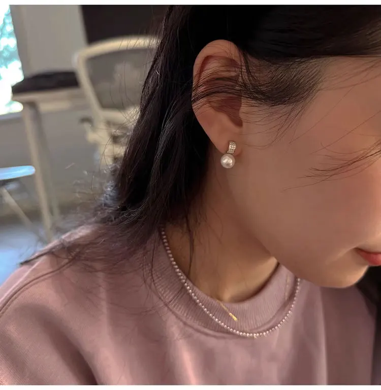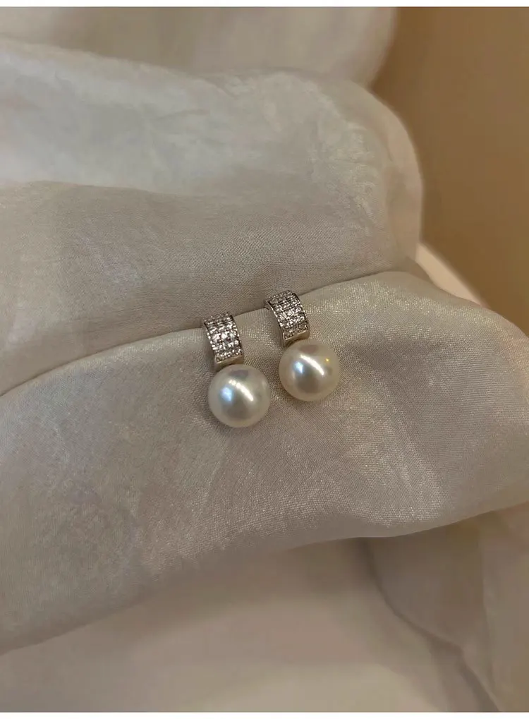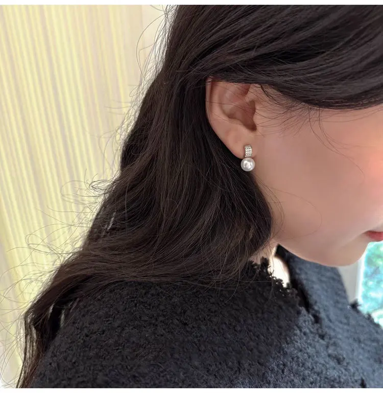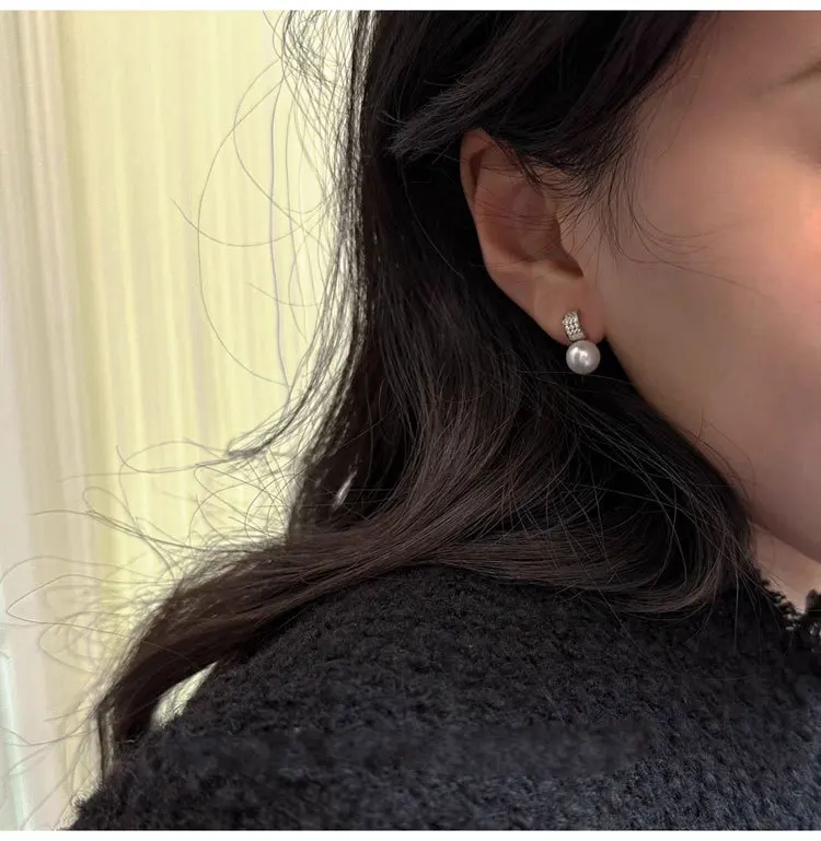 Girls 925 Sterling Silver French Temperament Geometric CZ Pearl Stud Earrings For Women Girls Wedding Party Jewelry