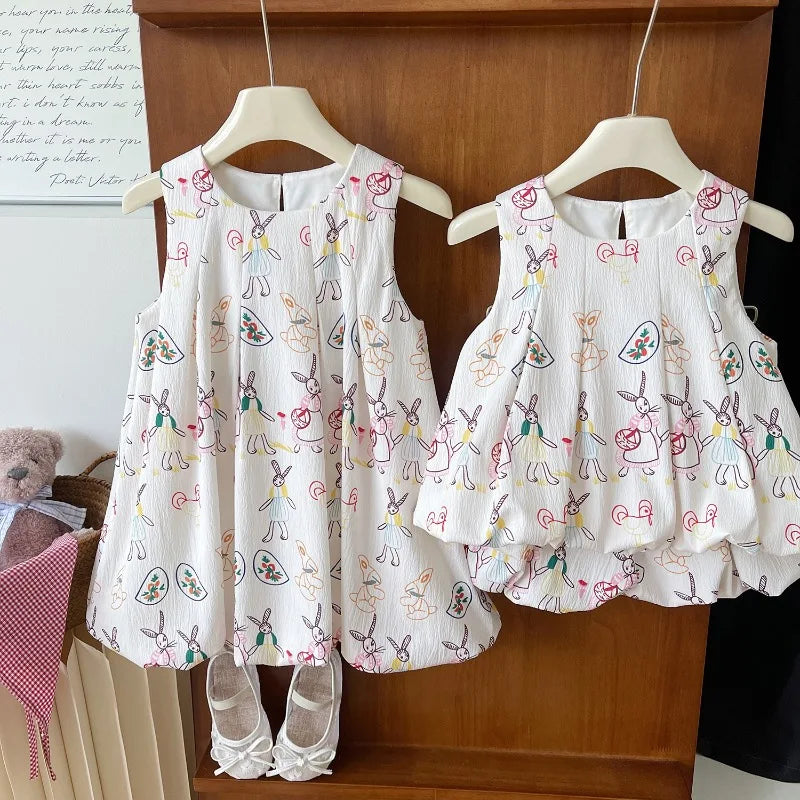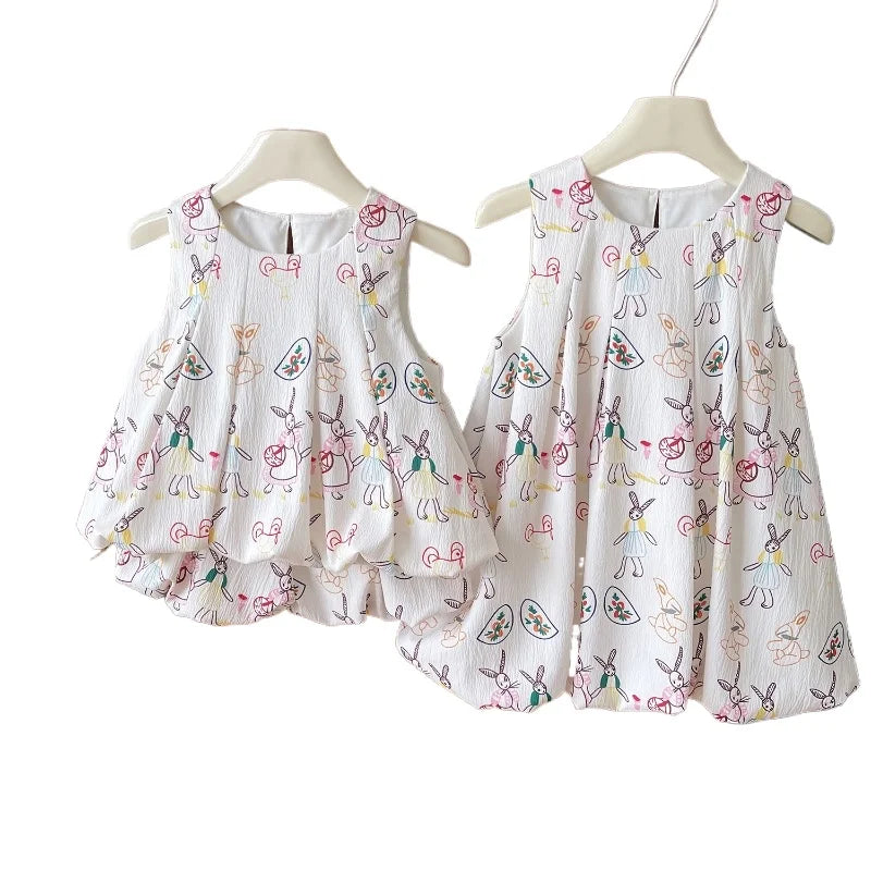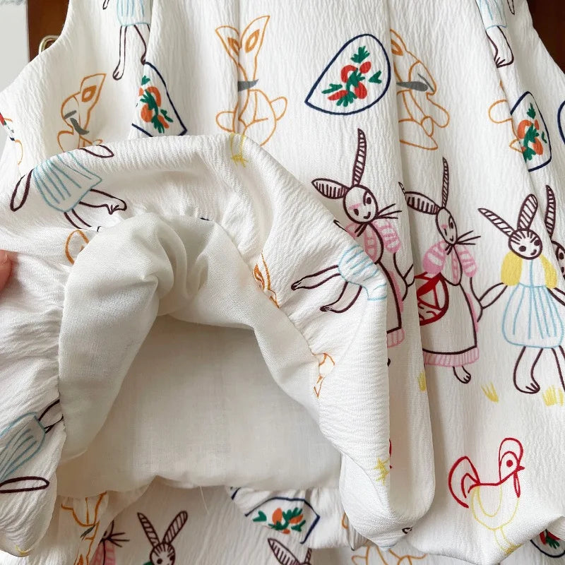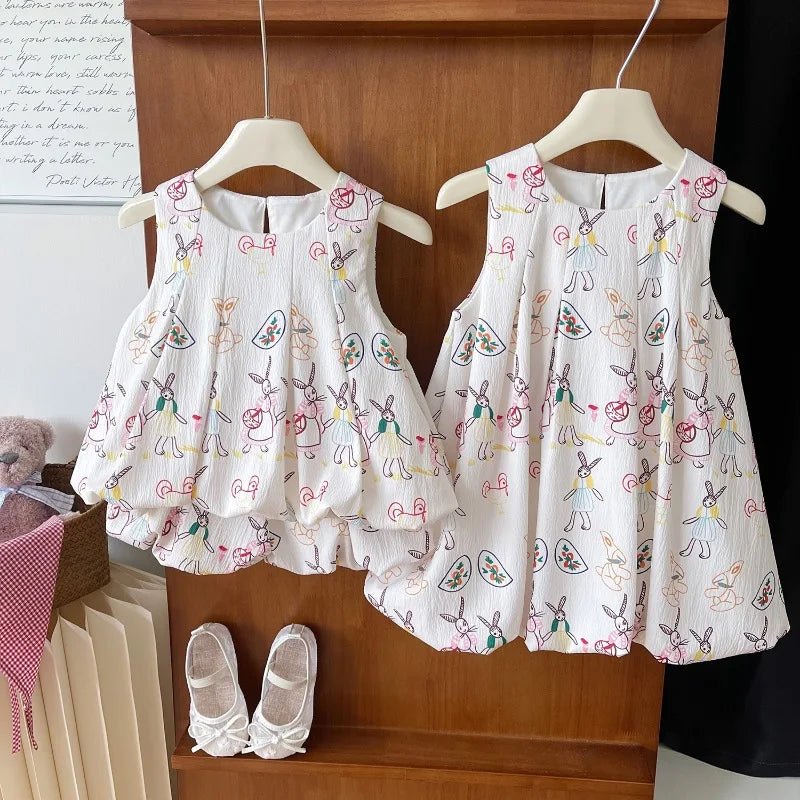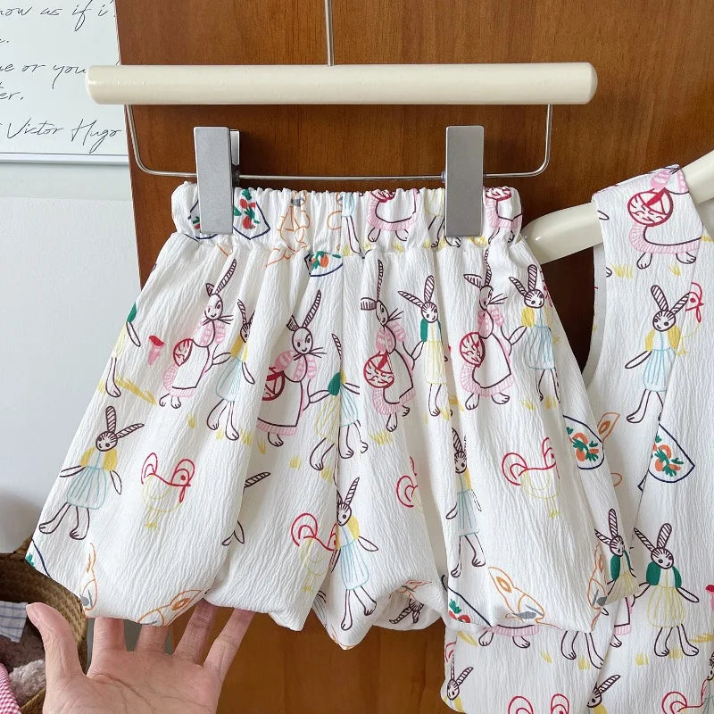 Girls Suits Summer Sleeveless Cartoon Vest Shirt+Shorts Fashion Korean Girls Dress Baby Girl Dress Kids Clothing Sets 2-7Yrs