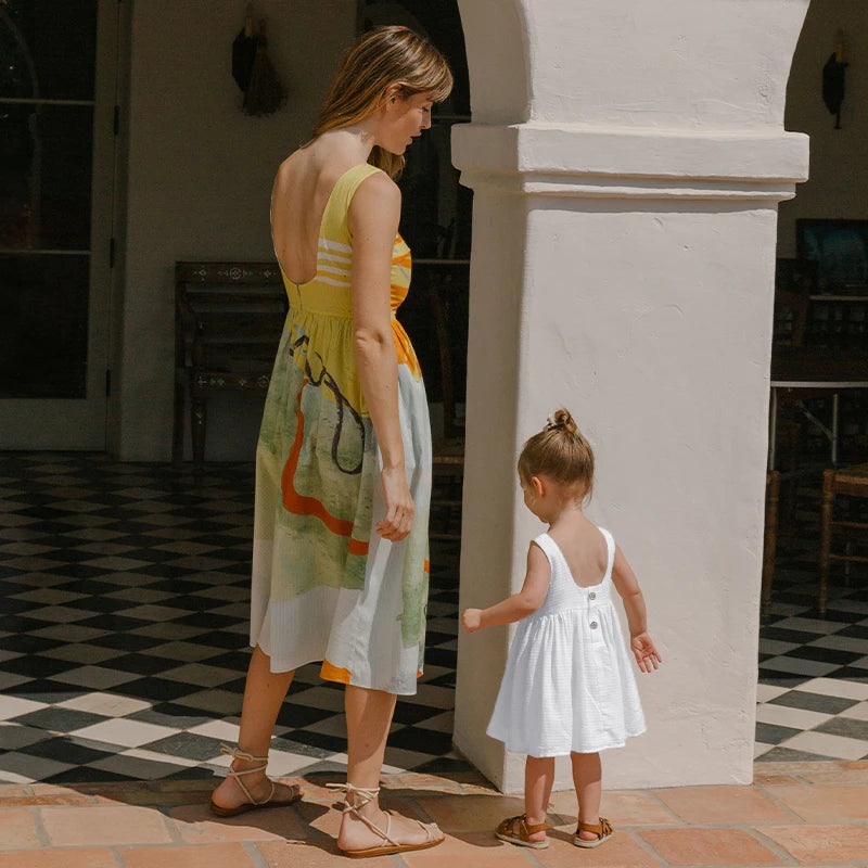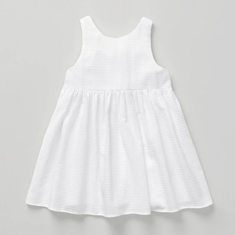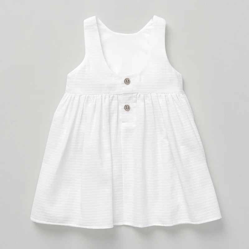 Girls Textured Cotton Sleeveless White Dress 2024 Summer New Toddler Baby Girl Round Neck Button Low-Back Kids Dresses TZ79