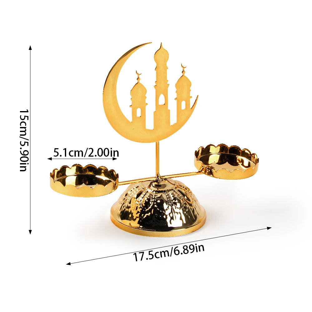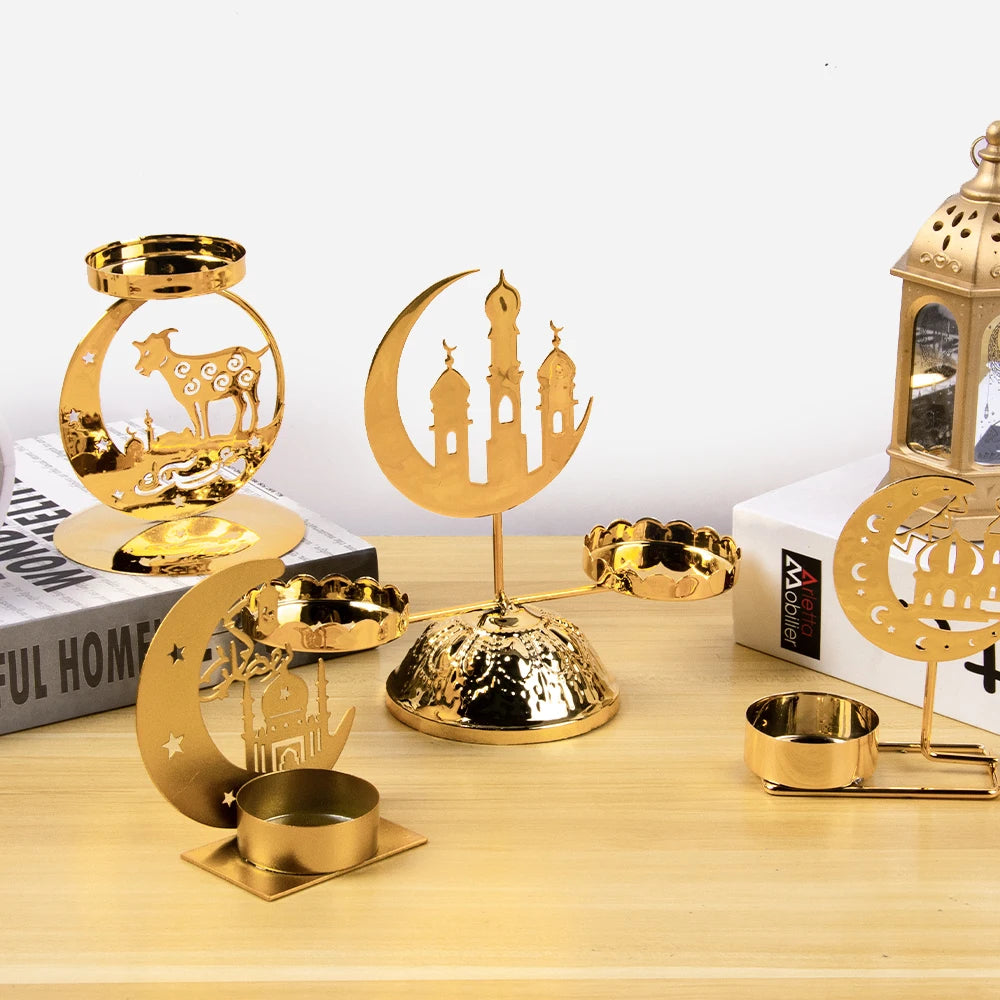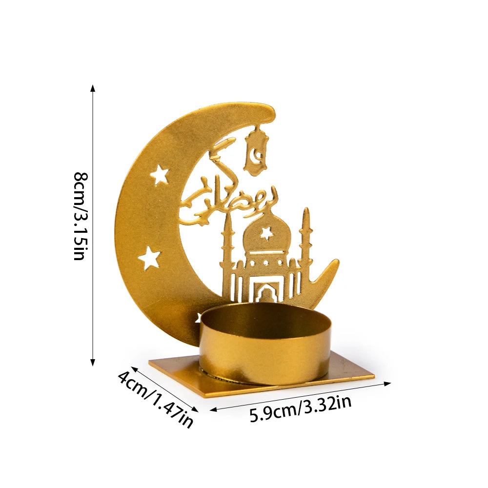 Gold Metal Ramadan Moon Shape Candle Holder Eid Mubarak Candlestick Base Dining Table Ornament Islamic Muslim Party Home Decor