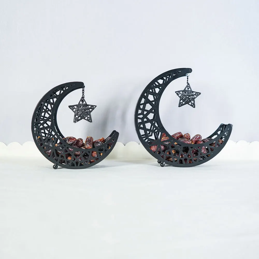 Golden Snack Tray Hollow Out Moon Star Shape Eid Mubarak Serving Platter Muslim Ramadan Nuts Plate