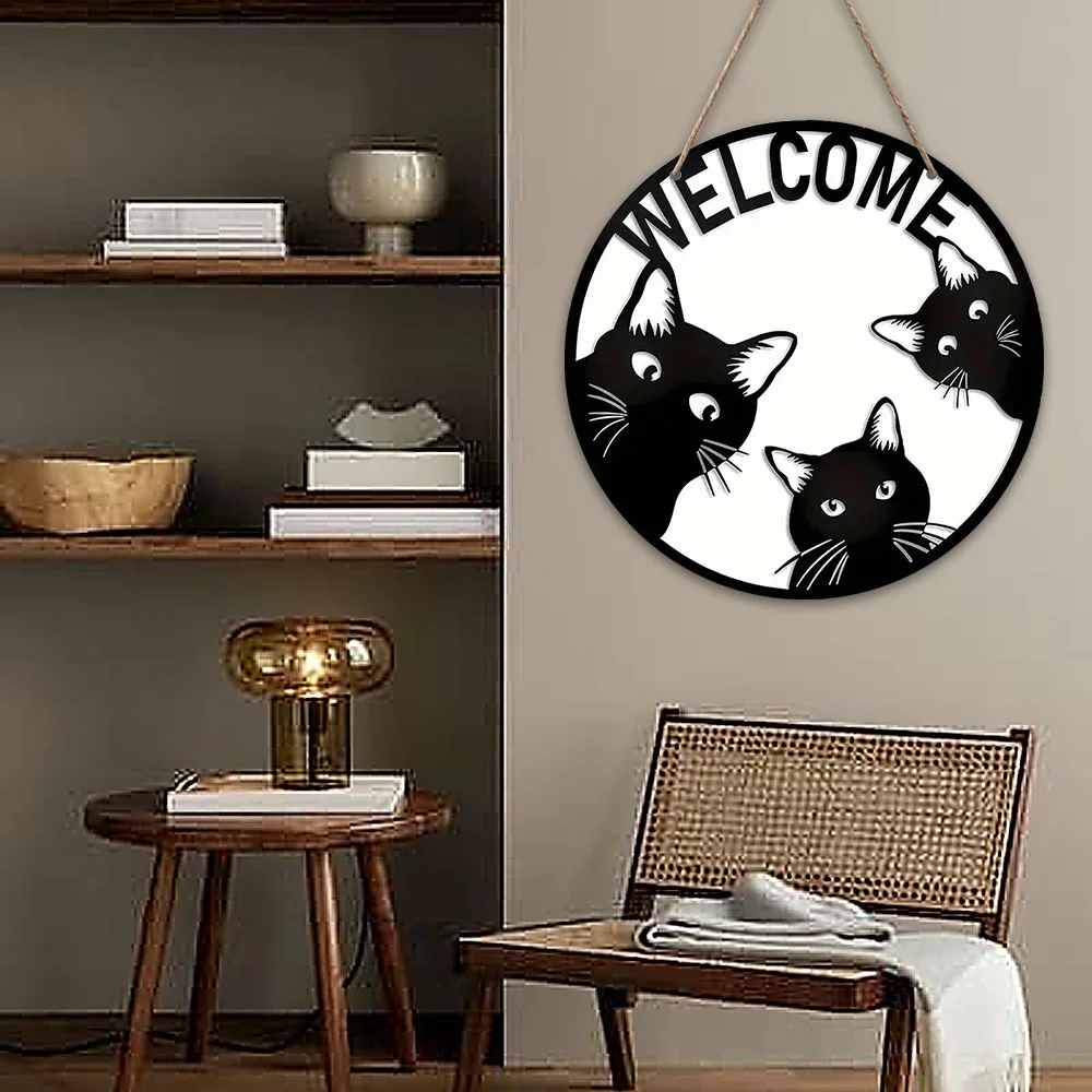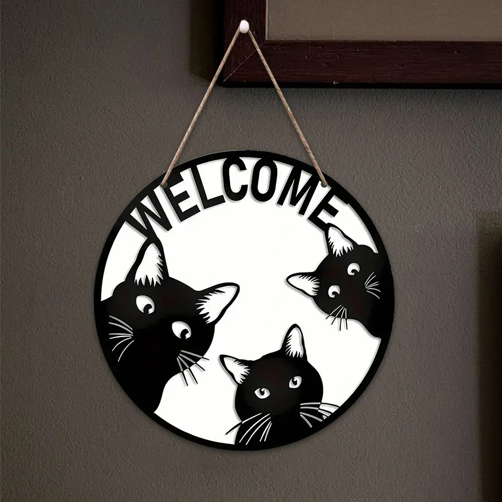 Halloween Black Cat Mi Welcome Creative Logo Wooden Welcome Door Sign, Living Room Pet Supplies, Cattery Scene Decoration