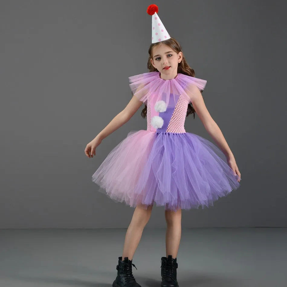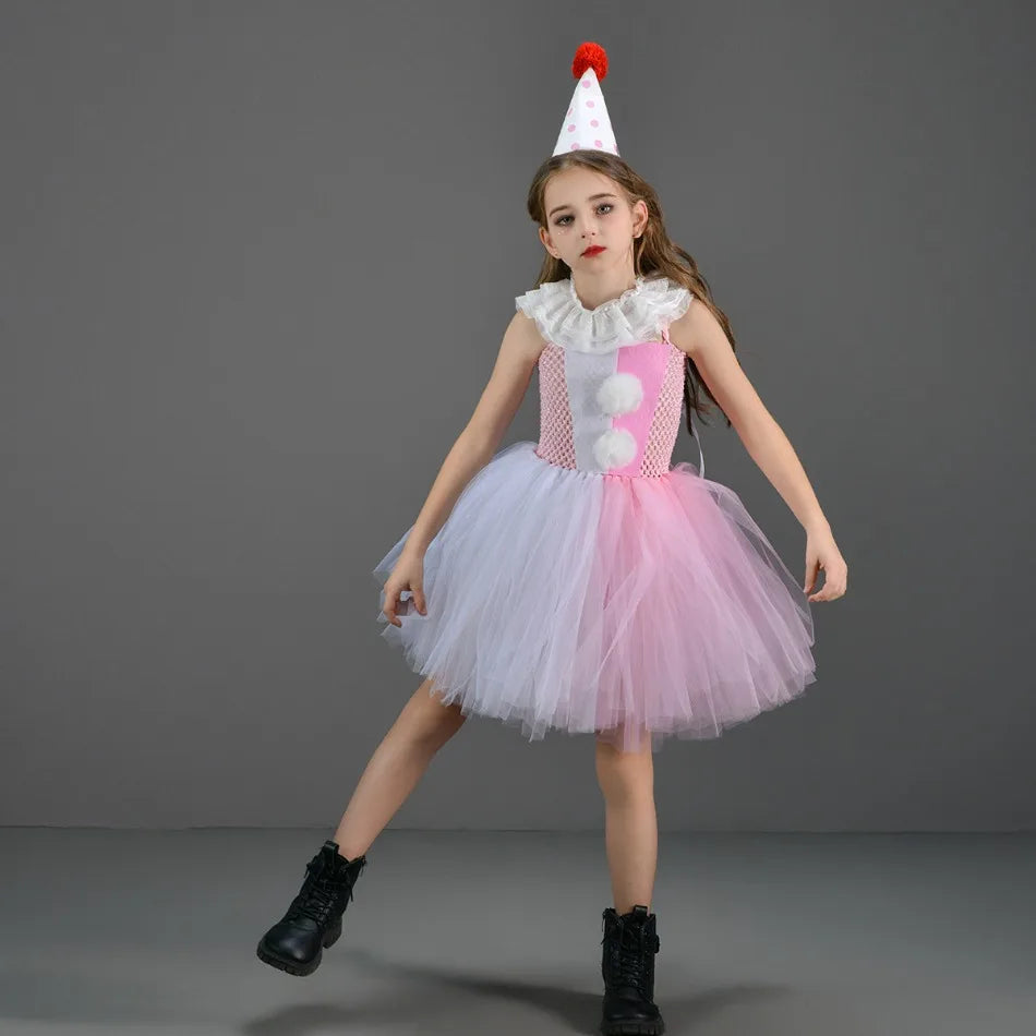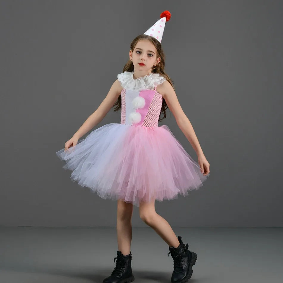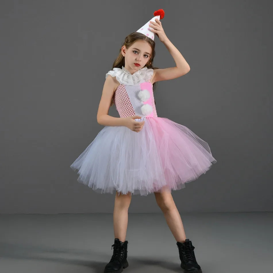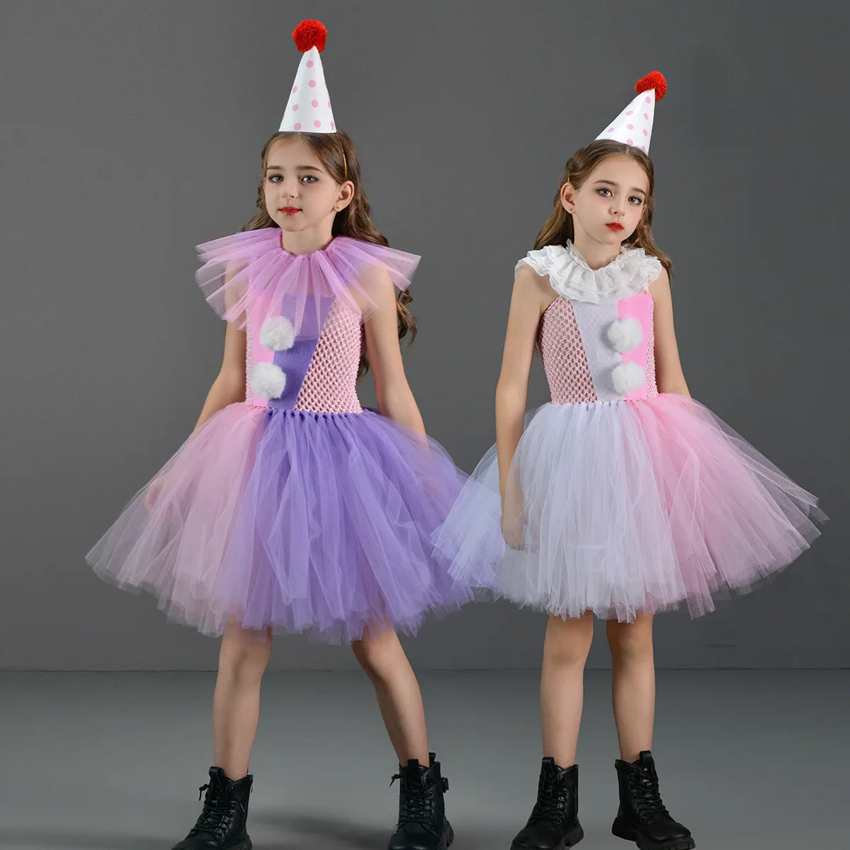 Halloween Costume For Kids Gray Girls Tutu Dress Kids Cosplay Scary Clown Costume Girl Carnival Masquerade Party Dress Up 2-12Y