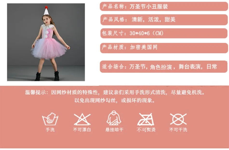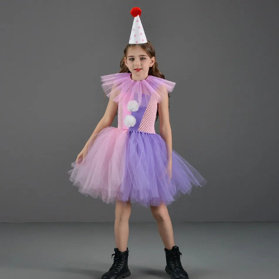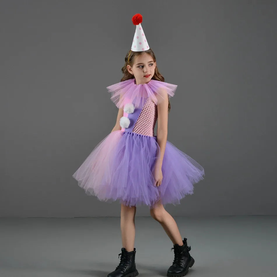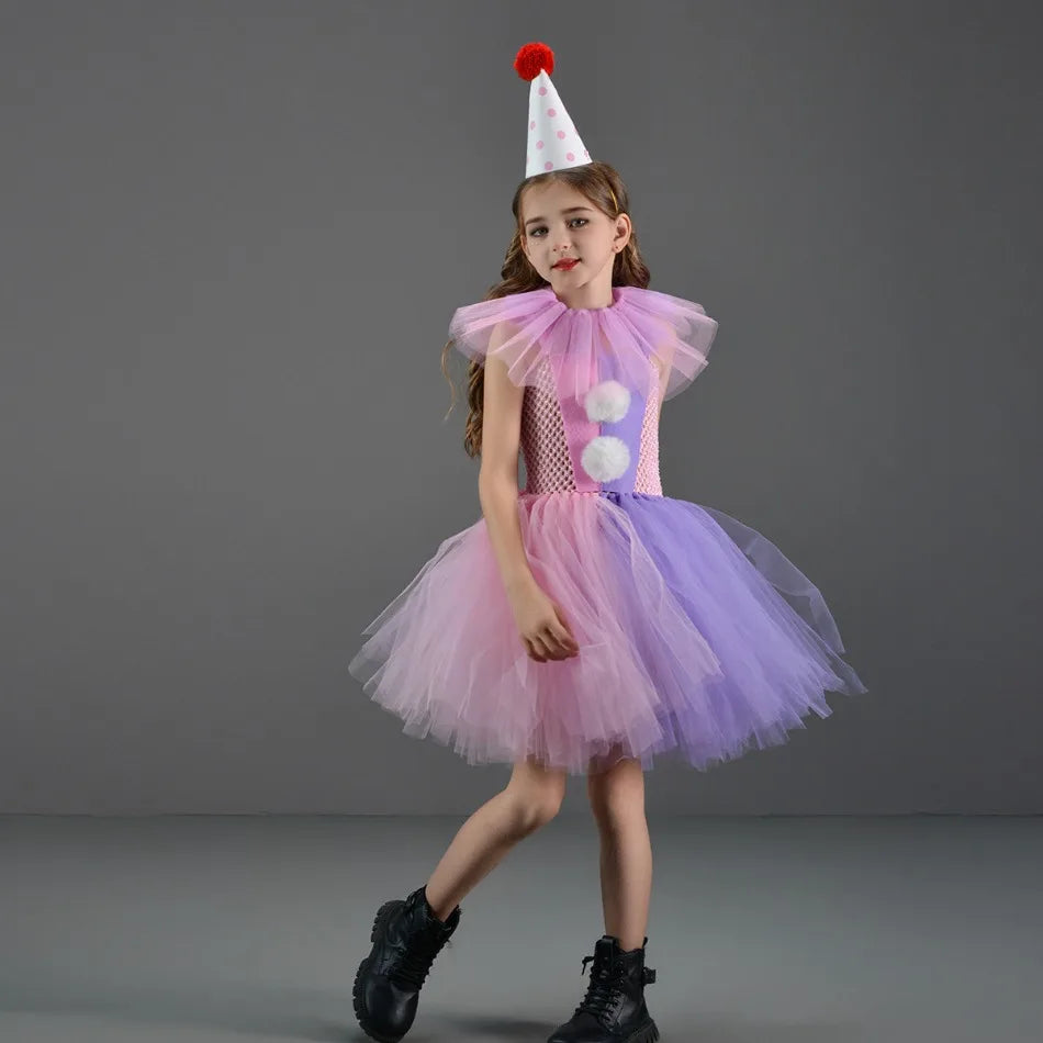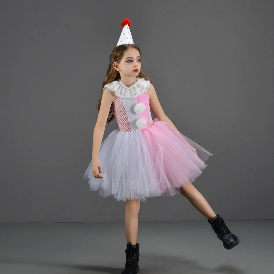 Halloween Costume For Kids Gray Girls Tutu Dress Kids Cosplay Scary Clown Costume Girl Carnival Masquerade Party Dress Up 2-12Y
